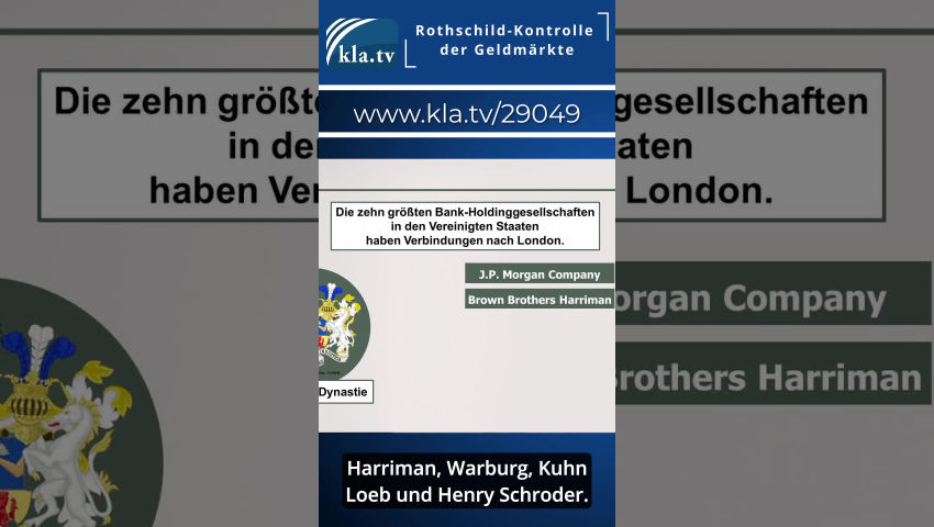 Die Rothschild-Kontrolle https://www.kla.tv/13533 Die große Enteignung: WIE sie dir ALLES nehmen wollen! (ein Film von David Webb) https://www.kla.tv/28313 Großbanken: Profiteure von Welthunger und Energiekrise https://www.kla.tv/24791 Titanic: J. P. Morgans eiskalter Versicherungsbetrug und Milliardäre-Mord https://www.kla.tv/25720 |