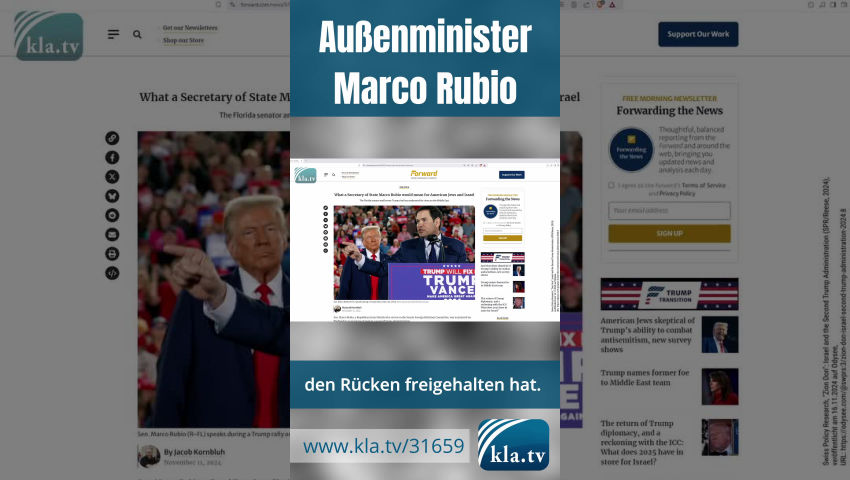 Wichtiger Hinweis: Kla.TV weist ausdrücklich darauf hin, dass mit der Erwähnung der in dieser Sendung genannten Personen, Hintergründe und Verflechtungen nicht angestrebt wird, den Zuschauer zu einem antisemitischen Urteil zu verleiten. Selbst wenn die in dieser Sendung genannten Personen und Interessengruppen unter der Flagge der israelischen Regierung agieren und sich als Juden ausgeben, sollte jeder Zuschauer im Bewusstsein behalten, dass Gewalt, egal von welcher Seite sie verübt wird, ganz grundsätzlich nicht zu rassistischen Urteilen verleiten darf. Denn oft lässt sich nach einer genaueren Untersuchung folgendes feststellen: Personen, die durch investigativen Journalismus ins Blickfeld der Öffentlichkeit geraten, lenken von ihren Gewalttaten ab, indem sie dann ihre Religionsgruppe oder Nation als Sündenbock oder Schutzschild ins Feld führen. So wird bewusst Hass und Folgegewalt unrechtmäßig auf die Religionsgemeinschaft oder Nation gelenkt. Dass man es in vielen Fällen gar nicht mit echten Juden bzw. echten Anhängern sonstiger Religionen zu tun hat, sondern mit einer luziferischen Ideologie, wird ausführlich in den Sendungen „Wider Rassismus und Verschwörung“ [www.kla.tv/23509] und „Das Geheimnis der Obelisken“ [www.kla.tv/14340] dargelegt. Diese Dokumentation belegt ebenfalls genau diesen Zusammenhang. Teaser Der US-amerikanische Wissenschaftler und Unternehmer Dr. Eli David am 13. November 2024: „Trumps Kabinett ist jetzt offiziell pro-israelischer als das israelische Kabinett.“ Die Organisation Hamikdash Betzion (Der Tempel in Zion) glaubt, dass die Erklärung von Trump am 6. Dezember vergangenen Jahres (6. Dezember 2017) – in der Jerusalem als die Hauptstadt Israels anerkannt wird – den US-Präsidenten in eine ähnliche Rolle, wie die des damaligen Königs Kyros gebracht hat. „Präsident Trumps rechtes Ohr wurde in einer symbolischen Geste nach Exodus 21, 6 gestreift und verletzt, wie es in der Tora heißt, dass ein Diener, der bei seinem Herrn bleiben will, sein rechtes Ohr durchbohren lassen muss. Trump wurde als Gottes Diener und Gesalbter bezeichnet, genau wie Kyros der Große vor fast 2.400 Jahren.“ Gemäß dem Nachrichtenportal „Israel365News“ hat Donald Trump, als nicht jüdischer Führer der USA, eine prophezeite Rolle beim Bau des Tempels zu spielen. Am 20. Januar 2025 wird Donald Trump als 47. Präsident der Vereinigten Staaten vereidigt. Die Person Donald Trump scheidet die Gemüter wie kaum eine andere. Für die Einen ist er der lang ersehnte „Retter“, der „den Sumpf trockenlegt“ und „den Tiefen Staat zerstört“. Für andere ist er ein unberechenbarer „Demokratie-Zerstörer“ und „Hass-Verbreiter“. In der Dokumentation „AKTE TRUMP – Retter oder Teil des Deep-States?“ [www.kla.tv/30489] von Oktober 2024 werden Trumps Verbindungen zum Tiefen Staat und zur luziferischen Hochgrad-Freimaurerei aufgezeigt. In dieser Sendung soll nun ein Blick in die Zukunft geworfen werden. Aufschluss darüber geben zum einen Stellungnahmen zur Wahl Trumps und zum anderen die Zusammenstellung seiner Regierungsmannschaft für seine zweite Amtszeit. Diese besteht einerseits aus dem sogenannten Kabinett der Vereinigten Staaten – welches sich aus Präsident, Vizepräsident und 14 Ministern zusammensetzt – und anderseits aus weiteren Personen, die für Schlüsselpositionen vorgesehen sind. Lässt sich aus der Zusammensetzung von Trumps Regierungsmannschaft ein möglicher außenpolitischer Fahrplan für die kommenden vier Jahr ableiten? Gibt es einen großen gemeinsamen Nenner, der die von Trump eingesetzten Personen verbindet? Und welche Schlüsse lässt solch ein gemeinsamer Nenner zu? Kla.TV hat die von Trump eingesetzten Personen untersucht und dabei einen gemeinsamen großen Nenner entdeckt. Und zwar geht es um den Israel-Gaza-Krieg, ein bewaffneter Konflikt zwischen Israel und der Hamas seit dem 7. Oktober 2023. Bei der Hamas handelt es sich um eine „Islamische Widerstandsbewegung“, welche die Regierung im Gazastreifen stellt und international von 41 Staaten als Terroristische Vereinigung eingestuft wurde. Die internationalen Reaktionen zum Israel-Gaza-Krieg fallen unterschiedlich aus. Die einen pochen seit dem Terrorangriff der Hamas vom 7. Oktober 2023 – mit 1.139 toten Israelis und der Verschleppung von 239 Geiseln – auf das Selbstverteidigungsrecht Israels. Andere stellen angesichts der über 45.000 (Stand Januar 2025) toten Palästinensern die Frage nach der Verhältnismäßigkeit der israelischen Angriffe. – Dies nach Angaben des Hohen Kommissars der Vereinten Nationen für Menschenrechte; eine knappe Mehrheit davon seien Frauen und Kinder. Der irisch-kanadische Völkerrechtler William Schabas sagte im Januar 2024, „für ihn werde immer klarer, dass Israel nicht das Ziel habe, die Hamas zu besiegen, sondern vielmehr, die Bevölkerung des Gazastreifens zu entwurzeln oder auszulöschen“. Der Dokumentarfilm von David Sorensen [www.kla.tv/27342] zeigt schwerwiegende Ungereimtheiten des vermeintlichen Überraschungsangriffs der Hamas vom 7. Oktober 2023 auf, dass er von „einer geplanten Operation an allen Fronten“ spricht. Sorensen wörtlich: „Ich habe das Gefühl, dass die Menschen in Israel und Palästina wieder einmal an die höheren Mächte verkauft worden sind.“ Sorensen zeigt auch auf, dass die Hamas gegründet wurde, um Israel einen Vorwand für die vollständige Übernahme der Kontrolle über den ganzen Gazastreifen zu geben. Im März 2019 hatte Netanjahu auf einer Sitzung seiner Mitte-Rechts-Partei Likud zu seinen Likud-Kollegen gesagt: „Wer die Gründung eines palästinensischen Staates vereiteln will, muss die Hamas unterstützen und Geld an die Hamas überweisen. (…) Das ist Teil unserer Strategie, die Palästinenser im Westjordanland zu isolieren.“ Aber nun zurück zu den von Trump eingesetzten Personen für seine Regierungsmannschaft und zu dem einen großen gemeinsamen Nenner. Si