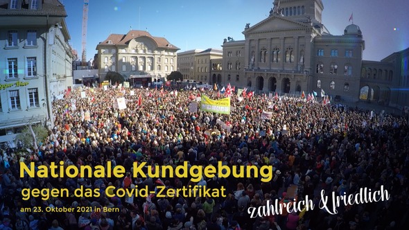 Am Samstag, dem 23. Oktober 2021 fand in Bern eine Kundgebung statt. „Gegen Covid-Zertifikat, Diskriminierung und Massenüberwachung“, hieß die Überschrift. [1]