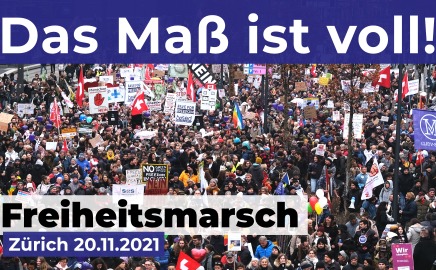 „Das Maß ist voll!“, mit diesem Aufruf lud die Organisation „MASS-VOLL“ am 20. November 2021 zu einem Friedensmarsch in Zürich ein. Der Verein MASS-VOLL ist ein politisch und konfessionell neutraler Verein, welcher insbesondere die Interessen der Jugend in der aktuellen Corona-Pandemie vertritt. Mit mehr als 40.000 Unterstützerinnen und Unterstützern ist MASS-VOLL die größte politisch engagierte Jugendorganisation der Schweiz. Ihre Forderungen, die Wiederherstellung der Schweizer Grundrechte sowie das bedingungslose Ende sämtlicher Zwangsmaßnahmen, treffen auf eine immer größere Zustimmung im Volk.