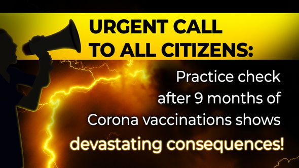 These shocking official figures document an increase of no less than 24,000% compared to the annual average of 9.8 deaths before Corona vaccinations began! Why is the Paul Ehrlich Institute still not sounding the alarm here? Third: The shocking 9-month balance of the CDC. Compared to the average annual rate of reported deaths before the start of Corona vaccinations of 235 deaths, this is an increase of 9,200%! Before our very eyes a historic, worldwide vaccination crime against the entire human race is taking place, which is still being criminally hushed up by all mainstream media. The "Corona vaccination debate" is currently experiencing a breathtaking development: - Saxony is the first German state to introduce a comprehensive “2G rule” meaning only the vaccinated or recovered allowed indoors: in restaurants and at events, thus excluding the unvaccinated from much of social life! - National soccer player Joshua Kimmich expresses concerns about the Corona vaccination and is subsequently treated "like a felon". Former soccer world champion Paul Breitner would no longer let him play. - Former German Chancellor Gerhard Schröder even demands that compulsory vaccination for all citizens should finally be discussed. On the other hand, hardly anyone in the so-called leading media is allowed to report on deaths that have occurred and serious side effects in connection with the "Corona vaccinations" administered - let alone discuss them publicly. Already in April 2021, after the first 3 months of vaccination practice, Kla.tv documented in the broadcast "Urgent wake-up call: Thousands die after Corona vaccination" a shocking Corona vaccination balance in the practice check: First, 324 seniors die in German senior centers directly after the "Corona vaccination"! Second, 3,298 senior citizens become infected with Corona in German nursing homes shortly after the "Corona vaccination"! Third, high-ranking authorities, such as the German Paul Ehrlich Institute - PEI for short -, the European Medicines Agency EMA as well as the top US health protection agency CDC have published an unprecedented number of shocking deaths and serious side effects in the history of vaccination since the start of the so-called Corona vaccinations! People have a very great interest in this public discussion about harm caused by "Corona vaccines", which has so far been categorically blocked by leading media. This is shown by the popularity of the April wake-up call: through active re-distribution, well over 2.75 million people have already seen this wake-up call. Through a single active distributing kla.tv viewer, about 400,000 people could be reached in Japan alone. This may have been one of the reasons why the Corona vaccination campaign was stopped in Japan for the time being! Today, we are conducting a new practice check based on the much more comprehensive data after 9 months of "Corona vaccinations": What do the consequences of the Corona vaccination look like currently? 1. deaths and corona infections in nursing homes for the elderly continue despite vaccination! Osthofen: Despite full vaccination: 13 residents died of Corona, more than 100 people infected! Norderstedt: Out of 76 nursing home residents, 60 were infected - only 3 were not vaccinated! 6 residents died following vaccination! Schorfheide: 44 residents infected despite high vaccination coverage! 10 women and 1 man died! Bad Doberan: Massive Corona outbreak: despite over 90% vaccination rate, 66 of 83 home residents infected, 6 residents die! Oberhausen-Holten: 3 senior citizens had to be resuscitated 3 days after the 3rd - booster - vaccination! One of them dies! Zedelgem/Belgium: Although almost 100% of the senior citizens have already received the "booster vaccination", 28 residents fall ill with corona! These few examples are at best the "tip of the iceberg" and raise the urgent question: do the 2 or 3 "vaccinations" protect against Corona at all? Even the PEI itself seems to have considerable doubts here, because it has had to change the efficacy description of the Covid-19 vaccines three times in recent weeks: August 15th, 2021: "COVID-19 vaccines protect against infection with the SARS-CoV-2 virus." September 7th, 2021: "COVID-19 vaccines protect against severe course of infection with SARS-CoV-2 virus." September 23rd, 2021: "COVID-19 vaccines are indicative for active immunisation to prevent COVID-19 disease caused by the SARS-CoV-2 virus." So all that remains of the originally promised protection against corona infection is a vague hope that the so-called "vaccines" might have a preventive effect! Even the Robert Koch Institute (RKI) now no longer dares to speak of a protective effect of the so-called "Corona vaccination", and removed the following wording from its homepage on November 2nd, 2021: "The vaccination has a high protective effect of at least 80% against severe COVID-19, regardless of the vaccine used." The assessment that "vaccinated people do not play a significant role in epidemiology" was also deleted. So exactly that which was previously the basis for the privileges of the vaccinated has now been deleted! This is a clear declaration of bankruptcy and shows that the vaccinated people were deceived. The protective effect was only feigned! Obviously, the PEI and the RKI are trying to pull their heads out of the noose with these changes, because vaccination practice with the rapidly increasing covid illnesses of those who have already been vaccinated several times makes the lack of protective effect obvious! 2. The shocking 9-month balance sheet of the Paul Ehrlich Institute: Within 21 years, from 2000 - 2020, a total of 206 deaths of adults after vaccination were reported to the PEI. This corresponds to an average of 9.8 deaths per year. In our wake-up call: "Thousands die after Corona vaccination", we have already shown that, according to the PEI, 407 died after Corona vaccinations alone in the first quarter of 2021. As of Septem