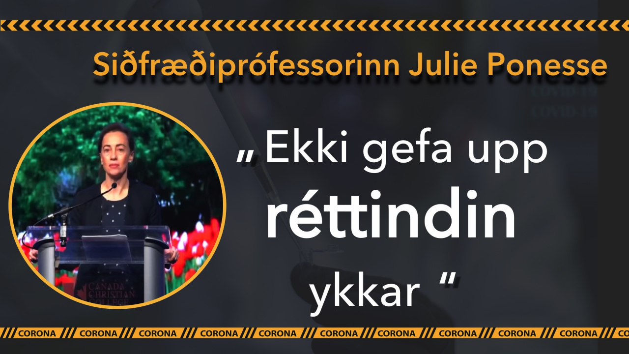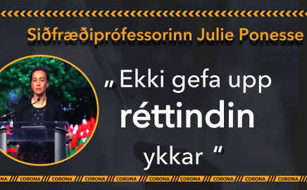 Dr. Julie Ponesse er siðfræðiprófessor og hefur kennt við Huron University College í Ontario, Kanada í 20 ár. Þar sem hún er ekki bólusett gegn Covid var hún rekin og má ekki lengur fara inn á háskólasvæðið. Þann 28. október 2021 hélt hún glæsilega ræðu fyrir kanadíska netframtakið „The Democracy Fund“.