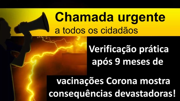 Já em abril de 2021, a kla.tv documentou um chocante registro de vacinação corona em sua verificação prática após os primeiros 3 meses de prática de vacinação em seu programa "Chamada urgente de despertar: Milhares morrem após a vacinação corona: Hoje estamos realizando uma nova verificação prática baseada nos dados muito mais abrangentes após 9 meses de "vacinações Corona": Quais são as consequências concretas atuais da vacinação Corona? 1. Mortes e infecções de corona em lares de idosos continuam apesar da vacinação! Osthofen: Apesar da vacinação completa: 13 residentes morreram de Corona, mais de 100 pessoas infectadas! Norderstedt: Dos 76 residentes, 60 foram infectados - apenas 3 não foram vacinados! Mais tarde morreram 6 residentes! Schorfheide: 44 residentes infectados apesar da alta cobertura de vacinação! 10 mulheres e 1 homem morreram! Bad Doberan: Surto maciço da Corona: apesar de mais de 90% de vacinação, 66 dos 83 residentes infectados, 6 residentes morrem! Oberhausen-Holten: 3 idosos tiveram que ser ressuscitados 3 dias após a 3ª vacinação! Uma dessas pessoas morreu! Zedelgem/Belgien: Embora quase 100% dos idosos já tenham recebido a "vacina reforçada", 28 residentes contraíram doenças de Corona! Estes poucos exemplos são na melhor das hipóteses a "ponta do iceberg" e levantam a questão urgente: as 2 ou 3 "vacinações" protegem em absoluto contra a corona? 2. O chocante balanço de 9 meses do Instituto Paul Ehrlich Entre 2000 e 2020, no período de 21 anos, um total de 206 mortes de adultos após a vacinação foram registradas no Instituto Paul Ehrlich. Isto corresponde a uma média de 9,8 mortes por ano. Em nossa chamada urgente: "Milhares morrem após a vacinação Corona" já mostramos 407 mortes após a vacinação Corona para o primeiro trimestre de 2021 de acordo com o Instituto Paul Ehrlich. Aus 30.9.2021, o Instituto Paul Ehrlich já reportou 1.802 mortes após a vacinação Corona! Extrapolado para o ano inteiro de 2021, isto corresponde a 2.402 mortes. Estes números oficiais chocantes mostram um aumento de nada menos que 24.000% em comparação com a média anual de 9,8 mortes antes do início das vacinações Corona! Por é que o Instituto Paul Ehrlich ainda não está soando o alarme aqui? 3. O chocante balanço de 9 meses do CDC Antes do início das "Vacinações Corona", o CDC relatou uma média anual de 235 mortes entre 2010 e 2020 após a administração de todos os tipos de vacinações. Em 29 de março de 2021, após apenas cerca de 3 meses de vacinações Corona, o CDC já registrou 2509 mortes. Após cerca de 9 meses, o CDC relata agora um número incrível de 17.128 mortes em 15 de outubro de 2021. Extrapolado para o ano inteiro de 2021, seriam 21.635 mortes! Em comparação com a taxa média anual de notificação antes do início das vacinações Corona de 235 mortes, este é um aumento de 9.200%! SUMÁRIO GERAL da prática de verificação após 9 meses de prática de vacinação: Os números públicos chocantes das mais altas autoridades, como o Instituto Paul Ehrlich e o CDC, explodiram mais uma vez dramaticamente em comparação com o chamado de despertar da kla.tv em abril! Assim, um crime de vacinação histórico mundial contra toda a humanidade está ocorrendo diante de nossos olhos, que ainda está sendo silenciado criminosamente por todos os meios de comunicação. Nosso chamado de despertar hoje é, portanto, ainda mais urgente do que nunca! O Chamado de Despertar Urgente para todos os Cidadãos! Caros telespectadores, Nosso chamado de despertar urgente é, portanto, dirigido a todos os cidadãos: ajudar a garantir que o crime de vacinação documentado neste vídeo seja imediatamente interrompido. Pare de permitir que as associações de mídia criminal tenham soberania sobre a informação. Em vez disso, use sua conexão pessoal com muitas pessoas valiosas que ainda são em grande parte ignorantes sobre este desastre de vacinação. Portanto, encaminhe este vídeo informativo AGORA para o maior número possível de seus amigos, colegas e parentes através do link fornecido. Use todos os canais à sua disposição, por exemplo, e-mail, WhatsApp, Twitter, Vimeo, Telegramas ou simplesmente poste o vídeo no Facebook. Ajude a divulgar esse despertar urgente para alcançar o maior número possível de cidadãos!