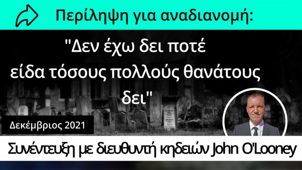 Εισηγητής: Είμαστε πολύ ευτυχείς που έχουμε τον John O'Looney εδώ μαζί μας σήμερα. Είναι υπεύθυνος κηδειών και διευθύνει την Milton Keynes Family Funeral Services στο Milton Keynes της Αγγλίας. ...