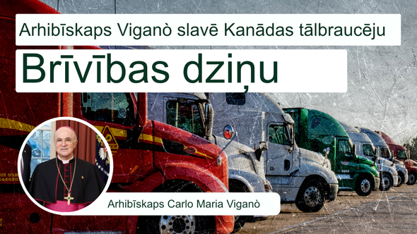 Kādā vēstījumā Kanādas tālbraucējiem pētnieciskais Virsbīskaps, ar skaidro skatu uz notiekošo, Viganò slavē viņu brīvības dziņu. Viganò : “Jūsu protests, mīļie draugi - Kanādas tālbraucēji, kā vispasaules koris vēršas pret Jaunās Pasaules Kārtības izveidošanu uz nacionālo valstu drupām, ko grib īstenot Vispasaules Ekonomikas Forums un Apvienotās Nācijas (ANO) zem nosaukuma “Agenda 2030”, kas tiecas realizēt “Great Reset” (Lielais restarts). Jūs esat instinktīvi to sapratuši un Jūsu ilgas pēc brīvības kļuva redzamas visā Jūsu harmoniskajā koordinēšanā, kad Jūs tuvojāties galvaspilsētai Otavai. Mīļie tālbraucēji, Jūs tiekat konfrontēti ar lielām grūtībām, un ne vien tādēļ, ka jums vajadzēja atstāt savu darbu, lai izbrauktu demonstrācijā, bet arī grūto laika apstākļu dēļ, auksto nakšu un jūsu izraidīšanas mēģinājumu dēļ. Bet šo grūtību dēļ Jūs arī piedzīvojāt daudzu līdzcilvēku tuvumu, kuri, tāpat kā Jūs, saprata draudus sev un gribēja atbalstīt Jūsu protestu pret režīmu. Ļaujiet arī man izteikt Jums garīgu atbalstu un garīgu saistību ar Jums, un es pieslēdzos Jūsu lūgšanai, lai jūsu demonstrācija vainagotos ar panākumiem un izplatītos arī uz citām zemēm.” Viganò uzrāda arī lielākas kopsakarības, kuras demonstrē Kanādas tālbraucēji pret verdziskajiem Corona pasākumiem: “Globālais valstu apvērsums, kuru šajos divos gados globālistu elite ir noorganizējusi kā psiho-pandēmisku farsu, kļūst skaidrāks, ja mēs skatāmies ne vien uz notikumiem atsevišķās zemēs, bet vēršam savu skatienu plašāk uz to, kas notiek visapkārt. […] Izskatās, ka Kanāda kopā ar Austrāliju, Itāliju, Austriju un Franciju ir globālistu visvairāk infiltrētās zemes. Un šajā velnišķīgajā projektā ir jāievēro ne tikai šis psiho-pandēmiskais farss, bet arī uzbrukums kristīgajām tradīcijām un kristīgajai identitātei […]. Un mēs zinām, ka daudzu valdību šefi ir piedalījušies Klausa Švāba [Klauss Schwab] rīkotajā Skolā Jaunajiem Līderiem – tā saucamajā “Global Leaders for Tomorrow” [Globālie līderi Rītdienai], sākot ar Džastinu Trudo [Justin Trudeau] un Emanuelu Makronu [Emmanuel Macron], Džasinda Ārderna [Jacinda Ardern] un Borisu Džonsonu [Boris Johnson], un pirms tiem - Angela Merkele, Nikolā Sarkozī [Nicolas Sarkozy] un Tonijs Blērs [Tony Blair]. […] Šajās dienās mēs redzam, kā visā pasaulē krīt tirānu maskas […]. Šajā nepielūdzamajā uzbrukumā tradicionālajai pasaulei ir skarts ne vien jūsu dzīvesveids un jūsu identitāte, bet arī jūsu īpašums, jūsu nodarbošanās un jūsu darbs. Tas ir šis Great Reset, tā ir nākotne, kura tiek apsolīta ar lozungu: “Build Back Better” (...). Tā ir miljardu cilvēku nākotne, kas tiks kontrolēta katrā kustībā, katrā transakcijā, katrā pirkumā, katrā birokrātiskajā darbībā un katrā aktivitātē. To īstenos roboti bez dvēseles un bez gribas, jūsu identitāte būs nolaupīta un reducēta uz universālo ienākumu, kas ļaus jums pirkt tikai to, kas citiem jau būs gatavs pārdošanai; jūs caur ģenētisku serumu būsiet pārveidoti par hroniskiem slimniekiem.” Viganò noslēdz savu vēstījumu ar iespaidīgu aicinājumu, palikt aktīviem un neatlaisties no mērķa sasniegšanas. “Šodien ir svarīgāk nekā jebkad apzināties, ka vairs nav iespējams palīdzēt pasīvi. Ir nepieciešams ieņemt savu nostāju, cīnīties par brīvību un pieprasīt dabisko brīvību ievērošanu. Bet vēl vairāk, mīļie Kanādas brāļi un māsas, ir nepieciešams saprast, ka šīs ļaunās pārmaiņas kalpo JAUNĀS PASAULES KĀRTĪBAS diktatūras izveidošanai un visu Kunga Jēzus Kristus pēdu pilnīgai izdzēšanai no sabiedrības, no vēstures un no tautu tradīcijām. Jūs esat demonstrācijā par savām tiesībām, mani Kanādas draugi, bet neaprobežojieties tikai ar tiesībām un prasībām pēc tiesībām uz brīvību, uz lielveikalu apmeklēšanu vai tiesībām nevakcinēties. Lepni un drosmīgi pieprasiet jūsu neaizskaramās tiesības - būt brīviem cilvēkiem!“
