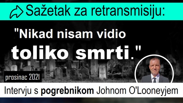 Iznova i iznova su zviždači bili ti koji su pokrenuli revolucionarne promjene. Ponašaju se samo u skladu sa svojom savješću i ne razmišljaju o mogućim osobnim opasnostima. Zato zaslužuju svaku podršku! U zapanjujućem intervjuu za kla.tv, John O'Looney dao je šokantne izjave kao pogrebnik koje su bacile potpuno novo svjetlo na aktualni program cijepljenja protiv korone. John O'Looney je izričito zatražio da se podijele njegova svjedočanstva kako bi sve više ljudi moglo razotkriti grubo krivotvoreno izvještavanje u mainstream medijima. kla.tv ispunjava želju Johna O'Looneyja emitirajući danas kratku verziju njegovog 35-minutnog intervjua. Ova kratka verzija je izričito za redistribuciju određuju naši gledatelji. Pomozite osigurati da ovaj dirljivi intervju postane poznat posvuda i da će ovo širenje zauzvrat pokrenuti revolucionarne promjene! Intervjuer: Jako nam je drago što je John O'Looney danas s nama. On je direktor pogreba i vodi Pogrebne usluge obitelji Milton Keynes u Milton Keynesu, Engleska. ... O'Looney: … Ono što vidimo je sve veći broj smrtnih slučajeva, zanimljivo uglavnom od smrti od tromboze, srčanih udara, aneurizme ili moždanog udara, i to u neviđenom broju. Nikad nisam vidio toliko mrtvih. I nisu to bili samo stariji ljudi. Pogođeni su ljudi različite dobi. Ljudi u 20-im, 30-im i 40-im godinama i ljudi koji inače ne bi umrli. To je bilo prorečeno i sada se dogodilo. ... Međutim, porast je fenomenalan. Nije dvostruko ili trostruko povećanje. To je povećanje od 500 ili 600%, tako nešto. …Michelle, medicinska sestra hitne pomoći, rekla mi je da je 9 od 10 pacijenata koji dođu u hitnu s problemima s disanjem cijepljeno. Razlog njezinog prijema je što su se razvili krvni ugrušci. ... Imam prijatelje u okolini koji rade na sudskoj medicini i imaju pune ruke posla jer stalno izlaze i onda skupljaju te ljude kod kuće jer su iznenada umrli od tromboze…. Intervjuer: Ima li mrtvozornika koji zviždaju poput vas? Obznaniti činjenice? O'LOONEY: Ne, jer bi to ugrozilo njezinu karijeru. Dapače, čak sam vršio pritisak na glavnog vještaka jer nisam želio osramotiti svog lokalnog vještaka. Jer oni naravno znaju što se ovdje događa. ... Vidite, na primjer, enormno povećanje broja smrtnih slučajeva od tromboze. Svi to vidimo. Pogledajte mlade nogometaše, nogometaše FIFA-e, koji sada umiru kao muhe. To su ljudi na vrhuncu svoje fizičke spremnosti i savršenstva. ... Mislim, zato sam progovorio, jer vidim... viška smrtnosti jednostavno nije bilo 2020. godine. Stopa smrtnosti, nije bila tako visoka kao što se tvrdilo. ... Želim pozvati sve da se nastave boriti jer je sve teže sakriti se, iako se ljudi osjećaju kao da im ponestaje vremena. Vjerujte mi, nije. Malo je vremena za ljude koji šire ovu laž jer će biti uhvaćeni. Zovu me liječnici i policajci, zovu me sestre i svi govore isto. To je totalna laž. Naši mediji kažu da su bolnice pune necijepljenih ljudi. Ovo je totalni izum. To je sušta suprotnost. Devet od deset pacijenata koji tamo leže puni krvnih ugrušaka je cijepljeno. Čuo sam to od bezbroj profesionalaca. Vjerovali ili ne, to ipak ne pogoršava situaciju. To je istina. To je stvarnost. ...Mislim da su me stvarno naljutili velikim naporom da se svi namjerno etiketiraju kao mrtvi od Covida: oboljeli od raka, žrtve srčanog udara, da, čak i čovjek koji je pregažen - svi su mrtvi od Covida. ... Počeo sam, nanjušiti fitilj, pogotovo zato što se stopa smrtnosti s njim nije povećavala. Zato što sam očekivao da će stopa smrtnosti skočiti u nebo kada počne cijepljenje. Eto, 6. siječnja počelo je cijepljenje, a smrtnost je odmah naglo porasla. To je bila razina pandemije. Nikada nisam doživio ovako nešto. No, počelo je tek u trenutku kada su im zabili igle u ruke. Dakle, je li ovo pandemija? Ili je to ekstremni broj smrtnih slučajeva za pandemiju koja se prenosi iglom? ... i vjerujem da će ljudi... polako sve izgubiti. Dakle, na kraju smo prve godine i vidimo da ljudi sada počinju oboljevati. Oni postaju bolesniji jer im je imunološki sustav sada oslabljen. I imao sam neke od ovih ljudi na telefonu. Kada je imunološki sustav oslabljen, gubite sposobnost borbe protiv čak i prehlade. ... i što više injekcija dobiju, to im je gorje. Upozorio sam sve koje sam mogao upozoriti i nastavit ću to raditi. Intervjuer: (...) Spomenuli ste da možemo očekivati tri do pet godina prije nego što dođe potpuna kontrola. Međutim, kada čujete ljude poput RFK Jr., C.J. Hopkins, Yeadon i prof. Bhakdi čini se da su sljedeći mjeseci ključni. O'LOONEY: To je to! Sljedećih nekoliko mjeseci. Reći ću vama što vidimo. Doživljavamo veliko buđenje. I sam sam to primijetio, jer sam primio doslovno tisuće i tisuće poziva i e-mailova. Pa, kad dođe veliko buđenje, moraju podići svoju igru, jer osjećaju da je vremena za vjerovanje u ovu laž kratko. Tako će ubrzati svoju igru i pokušati sve što mogu. Mi smo onih 99%, pa nas je previše. (...) Intervjuer: John O'Looney, hvala vam što ste pristali na intervju i hvala vam za sve što činite da probudite ljude.