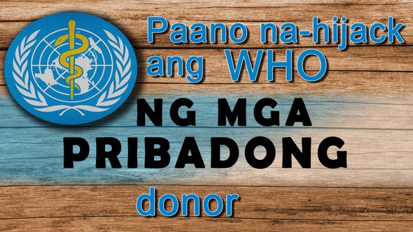 Isipin na lamang na ang mga patakaran sa kalusugan na pinangungunahan ng WHO (World Health Organisation) ay sa kasalukuyang kinokontrol ng mga may interes na korporasyon ang pandaigdigang patakaran sa kalusugan ay kinokontrol. Halimbawa, sa kasalukuyang pandaigdigang pandemya, ang isa sa mga pangunahing katawan na gumagawa ng mga desisyon ngayon ay isang entity na tinatawag na COVAX or Covid-19 Vaccines Global Access, isang inisyatiba upang matiyak ang access sa mga bakunang COVID-19 sa buong mundo.Dito ang wHO ay isang marginal partner lamang Ang aktwal na gumagawa ng desisyon ay mga katawan tulad ng Vaccine Alliance GAVI (Vaccination Alliance for Children in Developing Countries) at ang Vaccine Initiative CEPI (International Vaccine Initiative). Sa likod naman nito, ay ang Bill & Melinda Gates Foundation, na pinondohan ang bawat kasosyo nito ng malalaking "donasyon". Ang lahat na gumagawa ng desisyong ito ay kumikilos lamang para sa interes ng mga kumpanya ng parmasyutiko, hindi sila tumatanggap ng anumang pananagutan para sa pinsala sa bakuna at hindi sila ma nanagot dito . Sa likod naman nito, ay ang Bill & Melinda Gates Foundation, na nagbibigay ng malalaking Donasyon upang pondohan ang bawat kasosyo nito. ". Ang desisyong ito ay batay lamang para sa interes ng mga kumpanya ng parmasyutiko, ngunit wala silang anumang pananagutan sa anumang magiging pinsala nito
