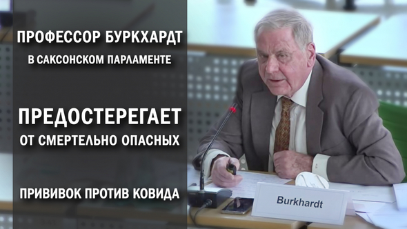 Известный немецкий патологоанатом профессор доктор Буркхардт выступил на общественных слушаниях 7 марта 2022 года в Саксонском парламенте по теме "Существует ли гораздо больше смертей от вакцинации, чем это официально известно?"
