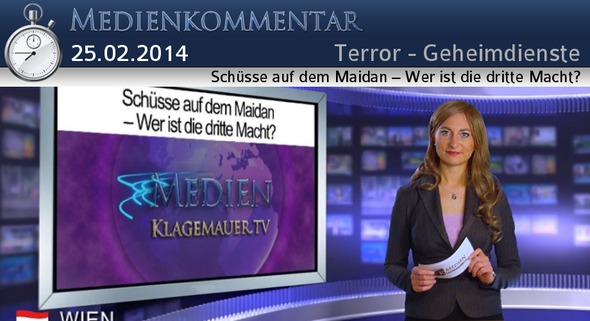 Guten Abend, verehrte Zuschauer, danke, dass Sie sich für Gegenstimmen zur Berichterstattung der gängigen Medien interessieren. Die Ukraine ist auch heute wieder unser Thema. Nach den blutigen Ereignissen vom 18.-20.02.2014 in Kiew meldete der ehemalige Hauptverwaltungsleiter des ukrainischen Nachrichtendienstes, Alexander Skipalski, dass auf dem Maidan eine „dritte Macht“ wirksam sei. Ich zitiere: „Die meisten Mitarbeiter der Sicherheitskräfte auf dem Maidan sind verwirrt und verstehen nicht ganz, was hier geschieht. Auch die Regierungsgegner begreifen offenbar nicht, dass hier eine dritte Macht am Wirken ist, die beide Seiten provoziert. Diese dritte Macht sind die Terroristen im wahrsten Sinne des Wortes [...] Das sind Banditen, die für Geld auf die Menschen schießen“. Verehrte Zuschauer! Diese Meldung blieb in den weiteren Tagen der Berichterstattung (der Hauptmedien) ohne irgendeine Resonanz. Im Hinblick auf die bürgerkriegsähnlichen Zustände auf dem Maidan und die politische Entwicklung in der Ukraine muss man sich jedoch fragen, ob die Aussage von Alexander Skipalski berechtigt ist oder nicht. Blenden wir in der Geschichte einmal etwas zurück. Als in Kiew im Januar die ersten Schüsse auf dem Maidan fielen und die ersten Todesopfer zu beklagen waren, konnte man auf der Internetseite des bekannten russischen Publizisten und Analytiker, Nikolaj Starikov, folgende Analyse dazu lesen: „Das ist eine klassische Provokation. Falls ein „blutbeflecktes Regime“ kein Blutvergießen will, so muss man ihm nachhelfen. So kommen „unbekannte Scharfschützen“ Provokateuren zu Hilfe. Sie schießen in die Menschenmassen, sodass es einen Polizeibeschuss vortäuscht. Das Drehbuch ist immer gleich: ein Beschuss von Demonstranten mit dem fortfolgenden Anheizen von Hysterie. Solche Scharfschützen hat man nicht nur einmal in Syrien, Libyen, Ägypten und Jemen gesehen“. Der Autor unterstreicht, dass eine solche Verfahrensweise eine übliche Praxis spezieller Geheimdienste, z.B. von der CIA oder der M16, in verschiedenen Ländern der Erde bisher darstellte. Die Täter solcher Verbrechen sind entweder Mitarbeiter dieser speziellen Geheimdienste selbst oder bestochene Einheimische. Offiziell aber werden für solche Massaker die jeweiligen Regierungen verantwortlich gemacht. Liebe Zuschauer, diese Bezeugungen decken sich mit verschiedensten anderen Stimmen, die auf KTV schon zu Wort kamen und in den nächsten Tagen noch zu Wort kommen werden. Um auch die grösseren Zusammenhänge all dieser Ereignisse zu verstehen, empfehlen wir Ihnen unsere Sendungen "Ordnung aus dem Chaos Teil 1 und 2" vom 22. und 23. Januar 2014 sowie das Interview mit Christoph Hörstel vom 30.1.2014 zum Thema Syrien - Ukraine. Guten Abend.