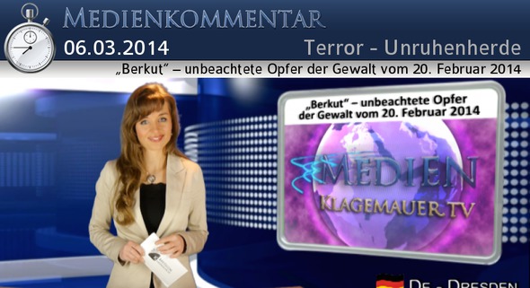 Sehr verehrte Zuschauer, vielen Dank für Ihr Interesse, auch an diesen heutigen Sendungen zu den vergangenen Ereignissen in der Ukraine, die die einseitige Medienberichterstattung der Hauptmedien einmal mehr kritisch hinterfragen. Zur Erinnerung: Am 20. Februar 2014 haben der damalige Präsident der Ukraine Viktor Janukowitsch und die Führer der Opposition Jazenjuk, Klitschko und Tjagnibok einen Waffenstillstand und den Anfang eines Gesprächsprozesses vereinbart, um das Blutvergiessen in der Ukraine zu beenden. Die Vereinbarung trat nicht in Kraft, da oppositionelle Gegner unter den Sicherheitskräften der Regierung ein Blutbad anrichteten. Die Medien beleuchteten die Ereignisse des 20. Februar als „Erschiessung“ „friedlicher“ Bürger durch rechtswahrende Organe. Wie war es aber nun wirklich? Warum berichten die Medien nicht von den Opfern der Sicherheitskräfte auf dem Maidan, die ausschließlich gegen bewaffnete Demonstranten vorging? Warum verschweigen sie die Gräueltaten, die diese gegenüber der ukrainischen Polizei-Einheit „Berkut“ begangen haben, die zum Schutz der ukrainischen Bürger pflichtgemäß ihren Dienst tat? Hören Sie nun selbst, was ein Mitarbeiter von „Berkut“ dazu zu sagen hat. Ich zitiere: „Unsere Massenmedien fabrizieren und verbreiten Lügen. In Donezk wissen die Menschen nicht einmal, was hier vorgeht. Es werden Kleinigkeiten so hingestellt, als ob wir hier einfach friedliche Bürger töten und verstümmeln. Und niemand zeigt, wie wir durch Explosionen und Feuer gepeinigt wurden. Aus Mitgliedern des Innenministeriums und „Berkut“ haben die Medien einfach „Faschisten“ gemacht. Die Presse ist bestochen. Die Unruhen fingen schon vor dem 20. Februar an, aber im Fernsehen war zwei Tage lang kein Wort davon zu hören!“ Dann wird er sehr deutlich: „Niemand hat z.B. gesehen, wie ein 18-jähriger Soldat (!) am Gitter eines Tores von einem kleinen Hof buchstäblich gekreuzigt wurde. Es wurde nicht gezeigt, dass ein Busfahrer stehen blieb, weil er nicht die Demonstranten überfahren wollte, als er blockiert wurde. Und niemand hat gesehen, dass der Bus aufgerissen wurde. Innen waren ein Dutzend „Berkut“ Mitglieder. Den jungen Männern wurden unter die Schutzwesten und Knieschützer Sprengpakete geschoben und wir konnten 20 Min. lang nicht zu ihnen durchkommen, um sie zu befreien.“ Und er klagt weiter: „Niemand hat die gebrochenen Arme und Beine und die entstellten Körper von Menschen mit Verbrennungen in den Kliniken gezeigt und niemand die Hunderte von durchgeschlagenen Helmen von unseren Leuten!“ Liebe Zuschauer! Dass dieser Augenzeugenbericht kein Einzelfall ist, beweist die KTV-Sendung „Terroristische Aktionen“ vom 01. März 2014 sowie der gleich im Anschluss ausgestrahlte Film „Wer waren die Todesschützen?“. Bitte beachten Sie für diesen Film unbedingt, dass er für Kinder nicht geeignet ist! Wir verabschieden uns heute mit folgender Bitte: Informieren doch auch Sie Ihren Bekannten- und Freundeskreis über diese Beiträge auf unserem Sender. Guten Abend!
