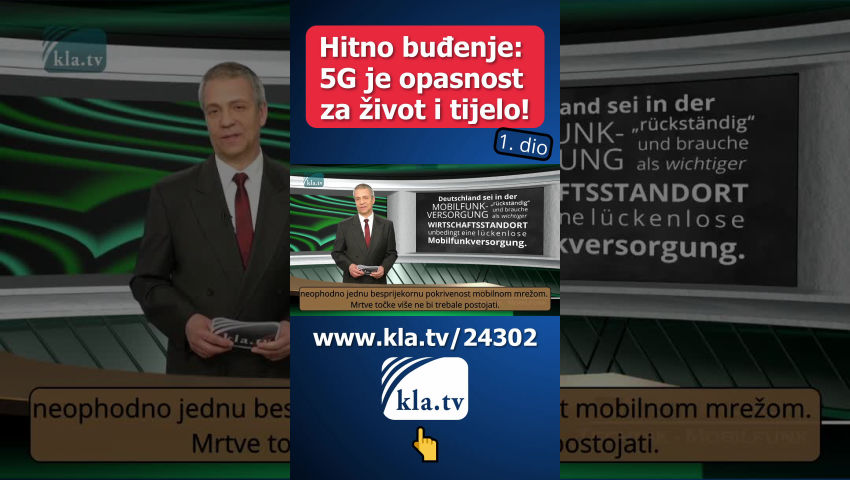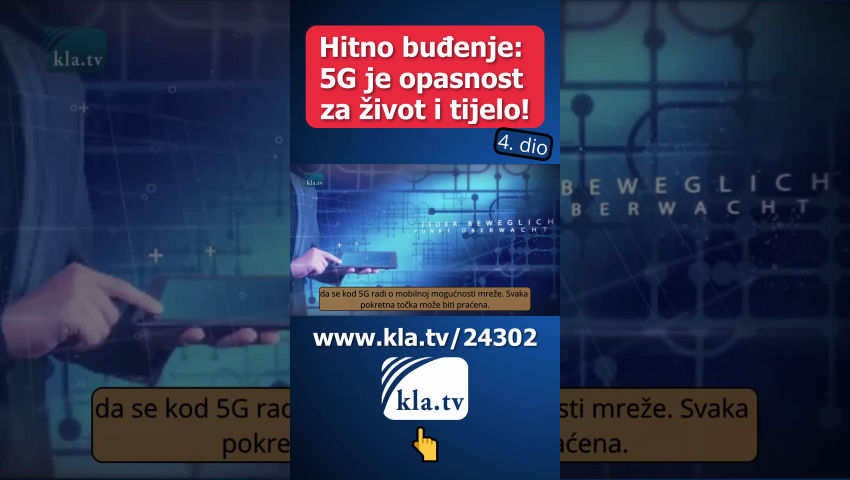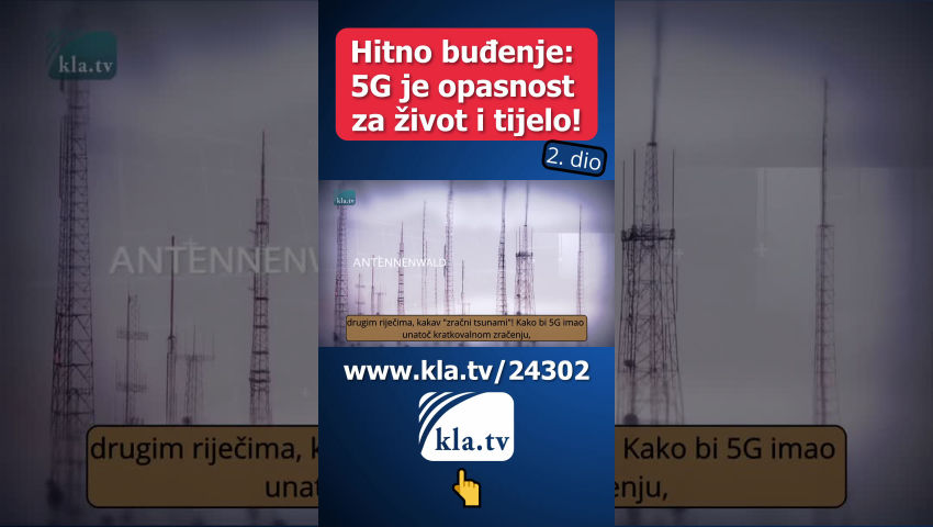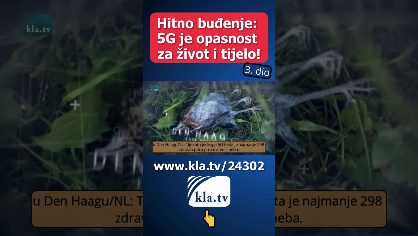 U takozvanim kvalitetnim medijima se vrlo euforično izvještava o novoj 5G generaciji mobilnih komunikacija. Njemačka je "zaostala" u pogledu pokrivenosti mobilnom mrežom i treba, kao važano poslovno mjesto, neophodno jednu besprijekornu pokrivenost mobilnom mrežom . Mrtve točke više ne bi trebale postojati. 5G sada omogućuje autonomnu vožnju, automatski javlja nam kada je boca s mlijekom prazna i egzistencijalno je neophodna za našu budućnost. Mi vam danas, u suprotnosti, donosimo potresan i neophodan poziv na buđenje. Evo glavnih opasnosti 5G: 1. 5G: Opasnost za naš fizički integritet! Svatko tko misli da je skok s 4G na 5G sljedeći korak, usporediv sa skokom s 3G na 4G, on čini ogromnu grešku. Jer 5G znači jedan golemi kvantni skok i najozbiljniji je ljudski zahvat u prirodu u cjelokupnoj povijesti čovječanstva! Kako bi se u Njemačkoj instalirao 5G u cijeloj zemlji, potrebno je oko 800.000 novih odašiljača. 5G zahtijeva tako masovno proširenje infrastrukture kakvo dosad nije viđeno. Za 5G,moraju operateri u gradskim područjima instalirati mobilnu antenu visokog zračenja otprilike svakih 100 m. Kakva šuma antena, drugim riječima, kakav "zračni tsunami"! Kako bi 5G imao unatoč kratkovalnom zračenju, dovoljnu snagu prodora, potrebno je jedno povećanje snage prijenosa i do 1000 puta. 5G stoga znači dvije stvari: 1. Sveprisutne mikrovalne antene 2.Dramatično povećanje intenziteta zračenja Ovo eksponencijalno povećanje prisilnog zračenja cijele populacije je jedan neodgovoran eksperiment na ljudskom zdravlju!! WHO je još 2011 mobilnu mrežu svrstao u kategoriju 2B kancerogenih tvari kao "moguće kancerogene". Poznati znanstvenici na temelju najnovijih znanstvenih studija, zahtijevaju da se klasifikuje na razinu 1 kao "kancerogena". Koliko 5G tehnologija može biti opasna postalo je očito krajem listopada 2018. u Den Haagu/NL: Tijekom jednoga 5G testa je najmanje 298 zdravih ptica palo mrtvo s neba. Očevici su izvijestili da su se patke također čudno ponašale i stalno pokušavale svoju glavu držati glavu pod vodom. Otprilike tjedan dana nakon smrti prvih ptica,su u Huijgensparku u Den Haagu ponovo više od stotinu čvoraka palo je mrtvo s drveća kada je obavljen još jedan test 5G. ZAKLJUČAK 1: 5G predstavlja jednu značajnu prijetnju fizičkom integritetu ljudi i životinja! 2. 5G: Opasnost po život i našu slobodu Kroz ovu globalnu šumu mikrovalnih antena i RFID mikročipova koji bi trebali biti ugrađeni u sve moguće stvari omogućit će da sve bude umreženo sa svime i da sve međusobno komunicira. Govori se o "Internetu svih stvari". Tom Wheeler, bivši predsjednik Savezne komisije za komunikacije, kratko FCC (Objašnjenje: FCC je američka agencija koja regulira puteve komunikacije, emitiranje, satelit i kabel]) to ukratko iznosi:: “Stotine milijardi mikročipova povezanih sa proizvodima od bočica tableta do prskalica za travnjak. Mi moramo odbaciti ideju da će 5G budućnost biti samo za gradska područja. 5G revolucija zahvatit će sve kutke naše zemlje! Ako se nešto može povezati, biti će povezano !” Tako treba i Računalo, mikrofon i kamera računala također biti povezani i sa time će potpuni sustav nadzora pronaći svoj put u naše domove. 5G mreža može vidjeti kroz zidove i kuće, što dovodi do digitalne kontrole svake osobe. Međutim, ovaj nadzor ne proteže se samo na vlastiti dom, nego će 5G također omogućiti jedan sveobuhvatan nadzor cijelog krajolika budući da se kod 5G radi o mobilnoj mogućnosti mreže. Svaka pokretna točka može biti praćena. Naše kuće bi trebale postati takozvane "pametne kuće" [objašnenje: inteligentni dom], a gradovi bi trebali postati "pametni gradovi". To je sve digitalno povezano preko mikrovalova i tako smo mi uhvaćeni u mikrovalnu mrežu koja nas mentalno, psihički i fizički uništava. U tom "ludilu digitalizacije" mora se digitalizirati i novac,što znači da će se sa slabašnim argumentima tražiti da uvjere stanovnike da je gotovina "zastarjela". Čim se SVE digitalizira i Internet stvari se umreži sa stvarnim svijetom, nastat će jedna potpuna kontrola nad svakim čovjekom osobno! ZAKLJUČAK 2: 5G otvara put "diktaturi nadzora" čije razmjere ni George Orwell nije mogao pretpostaviti. Poštovane gledateljke i gledaoci, budući da su masovni mediji do sada skrivali ove protivne glasove od ljudi, ova emisija nije samo poziv na buđenje, već i apel. Jer već u proljeće 2019., trebaju se frekvencije naći na dražbi Federalne agencije za mreže. Cilj je da do kraja 2022. godine 98% kućanstva bude spojeno na 5G mrežu. Stoga podržite naš potresni poziv za buđenje tako što ćete ODMAH ovu emisiju po moguđnosti proslijediti što većem broju svojih prijatelja i poznanika putem prikazanog linka! Informišite se o 5G tehnologiji u našoj 5G seriji. Na taj način vi aktivno pomažete da se vaša bliža okolina probudi i da se stvori jedan snažan zajednički protupokret.