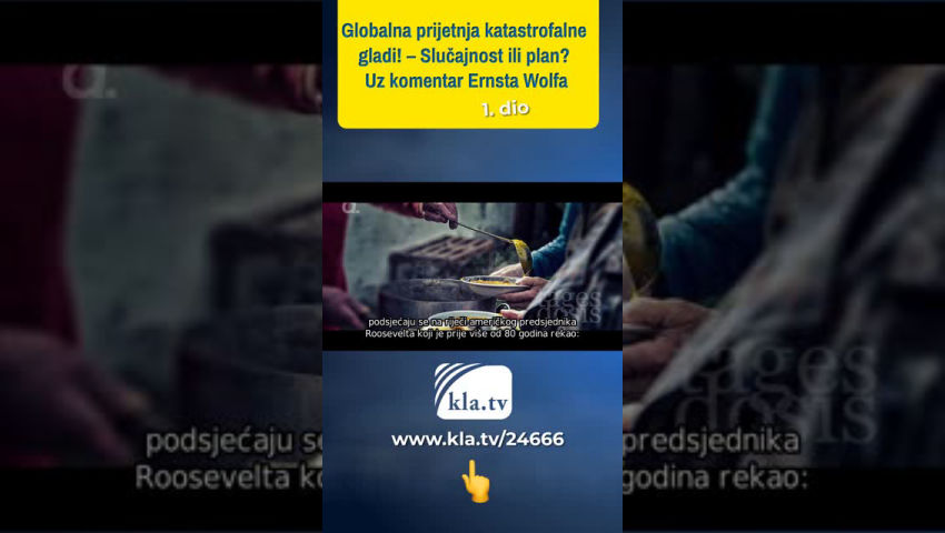 Već tjednima optužuju zapadni mediji i političari Rusiju za izazivanje jedne globalne gladi i korištenje gladi kao oružja. Takođe i Rusija vidi jednu globalnu krizu gladi koja dolazi do kraja godine - ali to pripisuje visokim cijenama žitarica i hrane, koje najsiromašnije zemlje trenutno nisu u mogućnosti platiti. Do ljeta 2020. globalna cijena pšenice bila je stabilna na oko 200 USD po toni. Trenutno je sada oko 450 dolara po toni. Kao glavni razlog ovog enormnog poskupljenja Rusija vidi nepromišljene ekonomske mjere Sjedinjenih Država i Europske Unije – promicanje zelene energije i odbijanjem Sjevernog toka 2, koje su europske cijene plina podigle u neviđene visine. Zbog toga je proizvodnja gnojiva postala nerentabilna tako da su tvornice morale zaustaviti proizvodnju. Pitanje gladi u svijetu iznenada postaje najvažnije i alarmantna tema na globalnom dnevnom redu. Ali tko je sada zapravo odgovoran za to? Ili postoje sasvim drugačije pozadine? Poslušajte analizu njemačkog autora i financijskog stručnjaka Ernsta Wolffa. Komentar Ernsta Wolffa Svijet trenutno ide golemih razmjera prema katastrofalnoj gladi. Svi koji misle da je to zbog nesposobnosti ili neplaniranosti političara, podsjećaju se na riječi američkog predsjednika Roosevelta koji je prije više od 80 godina rekao: „U politici se ništa ne događa slučajno, ako se nešto dogodi možete se kladiti da je tako bilo planirano." Jedna potvrda za Rooseveltovu izjavu pruža vam Takozvani Lockstep dokument Zaklade Rockefeller iz 2010. godine, u kojoj je predvidio globalnu zdravstvenu krizu koja traje već 2,5 godine. Bilo da se radi o zaključavanju, cijepljenju ili uvođenju ograničenja digitalnog pristupa, sve su te mjere u njemu opisane više od deset godina prije nego što su uvedene. Osim toga, u listopadu 2019. održan je Event 201, jedna od Sveučilišta Johns Hopkins, zajedno sa Svjetskim ekonomskim forumom i Zakladom Bill & Melinda Gates, provedena planska vježba u kojoj je simulirana pandemija i mjere koje je potrebno poduzeti od strane odgovornih bili su odigrani. Ništa drugačije se ne razlikuje očigledno sa trenutačnim približavanjem globalne katarstrofe gladi. I za nju je također provedena planska vježba ,i to prije 6,5 godina. Od 9. do 10. studenoga 2015., prisustvovalo je 65 međunarodnih čelnika iz vlade i gospodarstva u prostorijama Washingtonskog sjedišta Svjetske zaklade za prirodu, WWF,na kojemu je održan Event Food Chain Reaction, u prevodu reakcija prehrambenog lanca, koji simulira krizu u globalnom prehrambenom sustavu. Scenarij je osmislila skupina stručnjaka iz američkog Ministarstva vanjskih poslova, Svjetske banke i poljoprivredne tvrtke Cargill. Sproveden je bio Event od jednog nižeg odjela CMA Corporacije, koji radi u ime američkog Ministarstva domovinske sigurnosti i Nacionalnog koordinacijskog ureda za pomoć u katastrofama. Za financiranje se pobrinuo koncern Cargill, koji kontrolira četvrtinu američkog izvoza žitarica, i proizvođač slatkih stvari Mars. Cijelu stvar producirao je Svjetski fond za prirodu, zajedno s Centrom za američki napredak, think tankom koji je 2003. godine osnovao politički savjetnik Billa Clintona John Podesta. On je predvođen od lobiste Tom Dashley, jednoga od vodećih političara Demokratske stranke koji je bio predviđen za ministra zdravstva za vrijeme Baracka Obame, ali nije mogao preuzeti dužnost zbog razotkrivanja u vezi nečistih financijskih poslovanja. Dva su dana sudionici sastanka vježbali scenarij koji simulira kako odgovoriti na globalnu prehrambenu krizu u godinama od 2020 do 2030. Pokreneta je kroz: "Nestabilne cijene hrane, nestabilna opskrba hranom usred uvijek jačeg ubrzanog rasta stanovništva,jedne brze urbanizacije, teških vremenskih prilika i društvenih nemira". Tijek krize podijeljen je u četiri vremenska razdoblja. Prvi krug obuhvaća razdoblje od 2020. do 2021. Ovdje dolazi do velikih suša u Sjevernoj Americi, socijalnim nemirima u jugoistočnoj Aziji i Africi te porastom cijena hrane na 262% dugoročnih prosjeka vrijednosti. U drugom krugu, od 2022. do 2024., doći će do dugotrajnih perioda suša u najvažnijim područjima uzgoja i jedan dramatičan porast cijena nafte. Nemiri i migracije su u porastu, kao i panična kupnja usred sve veće nesigurnosti. Cijene hrane rastu sa 262% na 395% dugoročnih prosjeka vrijednosti. U trećem krugu, od 2024. do 2027., doći će do oporavka u proizvodnji usjeva u većem dijelu svijeta, koji će smanjiti pritisak na tržišta. Kako pojedine suše uzrokuju nemire u središtnjoj Africi, globalne cijene hrane padaju s 395% na 145% dugoročnih prosjeka vrijednosti. U četvrtoj rundi dolazi do suša u Brazilu, Kini i Sjedinjenim Državama, do socijalnih nemira u Indiji i prosvjeda u zapadnoafričkim gradovima, kao i o jednom ponovnom povećanju cijena hrane sa 141% na 387% dugoročnih prosjeka vrijednosti. Bizaran se čini završetak planske vježbe u kojoj se, osim uvođenja poreza na CO2,dolazi do neočekivano velikih donacija iz cijelog svijeta koji se slijevaju u prehrambeni program Ujedinjenih naroda. Kao rezultat toga, "Svijet je dobro opremljen za suočavanje s katastrofama u područjima do kojih humanitarne agencije mogu doći." Koliko god zvučalo apsurdno, u ovom trenutku vam nebi trebalo biti do smijeha. Iza pojma humanitarne organizacije skrivaju se brojne nevladine organizacije i zaklade poput Zaklade Otvoreno društvo Georgea Sorosa, Zaklade Billa i Melinde Gates, Svjetskog ekonomskog foruma ili Kruha za svijet Katoličke crkve. Upravo su te organizacije koje u naše vrijeme iz dana u dan postaju sve moćnije i utjecajnije, utječu na to da se krize sustavno pripremaju i iskorištavaju za osiguranje i učvršćivanje vladavine globalne elite, planirajući njihov smjer s vojnom preciznošću i prema potrebi pogoršavaju,bez obzira da li će veliki dijelovi čovječanstva sa time biti otjerani u propast. Usput, web stranica događaja Food Chain Reaction.