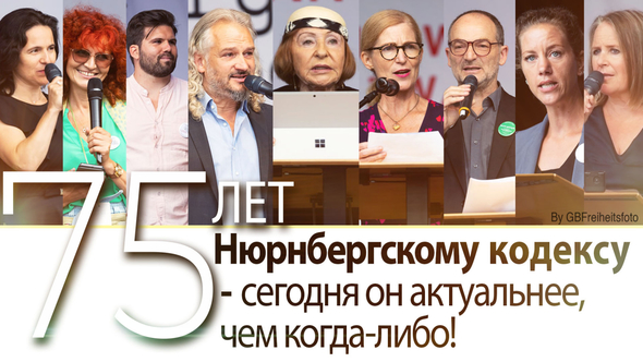Доктор Вальтер Вебер, «Врачи за просвещение»: "Вместе с вами мы хотели бы сказать всем: 75 лет Нюрнбергскому кодексу - Никогда больше принудительной медицины!" Доктор Сабина Хельмбольд, журналист и врач: "Сегодня важно быть бдительными и мужественными и постоянно напоминать: Нюрнбергский кодекс действовал как тогда, так и сегодня! Мы не должны прекращать требовать от каждого врача, чтобы он придерживался его безоговорочно". Вера Шарав (пережившая Холокост): Нюрнбергский кодекс установил основные, универсальные моральные и правовые нормы, утверждающие фундаментальные права человека. Права человека распространяются на каждого человека, независимо от расы и цвета кожи. Это не имеет никакого значения. Мы - одна человеческая семья! Пандемию ковида используют как возможность перевернуть моральные и правовые параметры, установленные Нюрнбергским кодексом. Нюрнбергский кодекс - это наша защита от неправомерных экспериментов". Ясмин Шульц («Акушерки поднимаются»): "Выкидыши в течение трех месяцев после вакцинации, и причём в очень явном взаимоотношении. Вы не должны забывать: это каждый раз ребенок, потерянный тогда, когда родители с нетерпением ждали его". Рольф Крон «Врачи поднимаются»: Нюрнбергский кодекс наставляет нас: "Никогда, никогда, никогда больше врачи с холодным взглядом не должны унижать человека до простого объекта этически-сомнительного познания, до объекта интереса власти или прибыли". В субботу 20 августа 2022 года исполнилось 75 лет с того дня, когда был сформулирован Нюрнбергский кодекс. Эти медицинские правила, которые с тех пор имеют универсальную силу во всем мире, были обнародованы в 1947 году по окончании Нюрнбергского медицинского процесса. В то время на скамье подсудимых находились, в частности, 20 врачей концлагерей. С тех пор этика Нюрнбергского кодекса кричит всему миру: "Никогда больше!". Никогда больше не будет принудительной медицины! Никогда больше не проводите медицинские эксперименты на людях, которые недостаточно информированы обо всех последствиях! Никогда больше не применять давление, насилие, мошенничество, обман, притворство или уговоры в любой форме при медицинских вмешательствах. Однако к проведению памятного мероприятия в этот исторический день призвал не город Нюрнберг и даже не федеральное правительство, а немецкое гражданское общество, в данном случае активисты альянса «75 лет Нюрнбергского кодекса», во главе с "Фондом врачей за просвещение" и организацией "Врачи поднимаются". В преддверии мероприятия газеты обвинили организаторов в насмешке над жертвами преступных нацистских экспериментов над людьми, ведь - цитирую - "организаторы митинга 20 августа 2022 года, ссылаясь на Нюрнбергский кодекс, пытаются приравнять меры по защите от коронавируса к принудительной медицине". После этой памятной даты было выдвинуто не только обвинение, но даже уголовное дело против Веры Шарав, которая едва избежала холокоста. В возрасте трех с половиной лет её семья была депортирована в концентрационный лагерь, где ей едва удалось избежать голодной смерти. Вера Шарав была почетным гостем и основным докладчиком на этом мероприятии. Также она является основателем и президентом Альянса по защите исследований человека. После пережитого в своё время г-жа Шарав выразила серьёзные опасения относительно методов, п