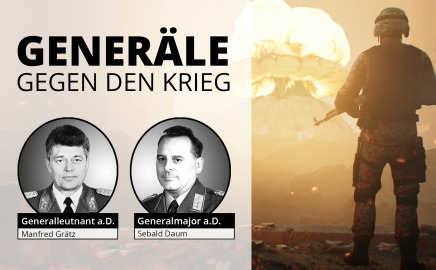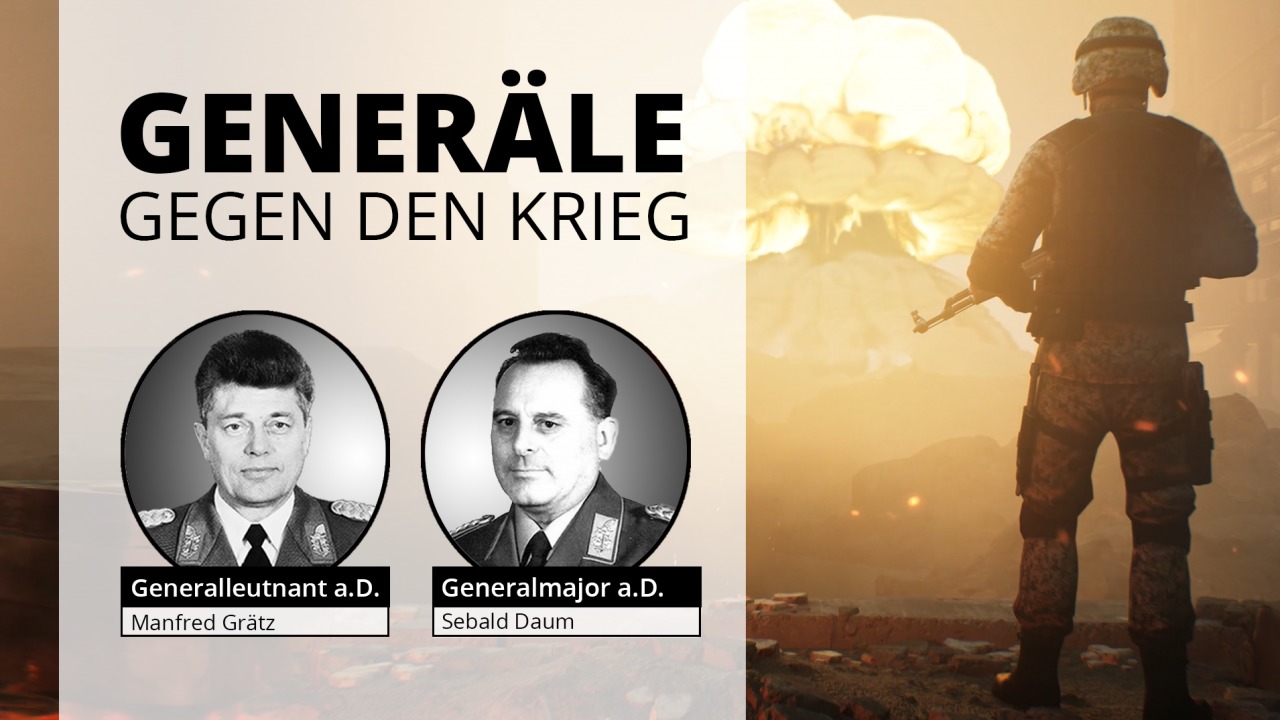 „…mit deutscher Vasallentreue folgen wir getreu der auf die Weltherrschaft ausgerichteten Kriegspolitik der USA...“ So beschreibt Manfred Grätz, Generalleutnant a.D. die tragische Vorgehensweise der Bundesregierung, die geschichtsvergessen und arrogant Deutschland in den Krieg mit Russland führt. Hören Sie im Einzelnen die Analysen und Warnungen dieses erfahrenen Militärs wie auch die seines Kollegen, Generalmajor Sebald Daum. Ihre eindringlichen Worte schlagen nicht nur in Militärkreisen hohe Wellen. [weiterlesen]
