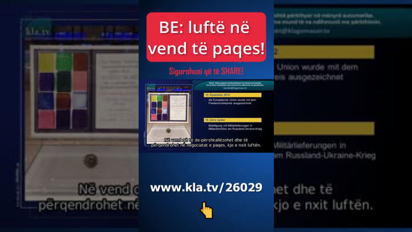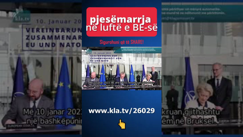 Projekti i paqes i BE-së është në luftë! Kjo del nga deklaratat e bëra nga shefi i politikës së jashtme të BE-së Josep Borrell në Konferencën e Sigurisë në Mynih 2023. Ai argumenton se Ukraina nuk mund ta fitojë luftën pa municion. Borrell tha: "Ne jemi në gjendje lufte". Tashmë është çështja për të reaguar shpejt. Bashkimi Evropian është në luftë Më 10 dhjetor 2012, Bashkimi Evropian u nderua me Çmimin Nobel për Paqen. 10 vjet më vonë, BE-ja merr pjesë në luftën Rusi-Ukrainë me furnizime ushtarake me vlerë miliarda dollarë Në vend që të de-përshkallëzohet dhe të përqendrohet në negociatat e paqes, kjo e nxit luftën. Deri më tani, BE-ja ka siguruar 4.5 miliardë euro për ndërhyrje ushtarake me armë dhe pajisje në luftën Rusi-Ukrainë. Politika aktuale e luftës e Bashkimit Evropian është maskuar me mjeshtëri si politikë paqeje. Peace Facility – kështu quhet instrumenti financiar luftarak i BE-së, nga i cili vijnë fondet për pjesëmarrje në luftë. Më 10 janar 2023, BE dhe NATO nënshkruan gjithashtu një bashkëpunim strategjik të ardhshëm në Bruksel. Meqenëse BE-ja po ndërhyn ushtarakisht në luftën Rusi-Ukrainë, e gjithë BE-ja është përfshirë tashmë në një luftë nga një vend jo anëtar i BE-së. Kjo rrezikon dhe provokon rrezikun e një lufte të tretë botërore dhe përhapjen e luftës në tokën evropiane Anëtarësimi në BE çon në dorëzimin e sovranitetit kombëtar Në disa traktate reformuese, më së fundi në Traktatin e Lisbonës në vitin 2009, përgjegjësitë mbikombëtare të BE-së u zgjeruan hap pas hapi. Kjo ka çuar në faktin se sot rreth 90% e legjislacionit në vendet anëtare të BE-së ka të bëjë me zbatimin e ligjeve të BE-së. Ky përfaqëson një kufizim të madh të sovranitetit të një shteti anëtar të BE-së dhe tregon ndikimin e madh që ai ka në legjislacion. Nuk duhet të jetë rastësi që sovraniteti i të gjitha shteteve kombe po i dorëzohet gjithnjë e më shumë një autoriteti më të lartë – në këtë rast BE-së. Një deklaratë e Georges Berthoin, i cili ishte shef i stafit nën Jean Monnet, një nga baballarët themelues të BE-së, jep një ide se çfarë fshihet pas saj: Berthoin tha në një intervistë në 2010: “Ajo që është arritur në Evropë do të jetë një ditë e zbatueshme në nivelin e qeverisë botërore. Kjo është pikërisht sfida e madhe e shekullit të 21-të. Një shembull i mrekullueshëm i kësaj është një fjalim i mbajtur nga Xhorxh Bush i madhi në Asamblenë e Përgjithshme të Kombeve të Bashkuara në vitin 1990 si President në detyrë i Shteteve të Bashkuara të Amerikës. Në të ai deklaroi se shpresonte për krijimin e një rendi të ri botëror.” Presidentët e Komisionit të BE-së nga viti 1999 1. Romano Prodi [President i Komisionit Evropian 1999 – 2004] Romano Prodi ishte anëtar i Këshillit Evropian për Marrëdhëniet me Jashtë deri në vitin 2019. - pra në Këshillin Evropian për Marrëdhëniet me Jashtë. Ky u themelua dhe u financua kryesisht nga George Soros në 2007 si një degë evropiane e Këshillit për Marrëdhëniet me Jashtë. Ish-këshilltarja politike e Prodit, Alba Lamberti, tani është zëvendësdrejtoreshë e Këshillit Evropian për Marrëdhëniet me Jashtë. Prodi ishte pjesëmarrës në mbledhjet e Bilderberg nga viti 1980 dhe më vonë madje punoi në komitetin ekzekutiv të Grupit Bilderberg. 2. Jose Manuel Barroso [President i Komisionit Evropian 2004 – 2014] Barroso ka qenë pjesë e Grupit Bilderberg që nga viti 1994 dhe tani është anëtar i Komitetit Ekzekutiv të Bilderberg. 3. Jean-Claude Juncker [President i Komisionit Evropian 2014 – 2019] Në vitin 2019, gazeta e përditshme hungareze "Magyar Idök" raportoi gjerësisht për kontaktet e vazhdueshme dhe intensive midis George Soros dhe përfaqësuesve të organizatave të tij dhe politikanëve kryesorë të BE-së. Soros është takuar zyrtarisht me Junckerin ose anëtarët e komisionit të tij më shumë se 20 herë që nga fillimi i mandatit të Jean-Claude Juncker. Deklarata e Junckerit e vitit 1999 e bën të qartë qasjen ndaj një rendi të ri botëror: “Ne marrim një vendim, e bëjmë publike dhe presim pak dhe të shohim se çfarë do të ndodhë Nëse nuk ka britma të mëdha dhe nuk ka trazira, sepse shumica e njerëzve nuk e kuptojnë se çfarë është vendosur, atëherë ne do të vazhdojmë - hap pas hapi derisa të mos ketë më kthim prapa”. 4. Ursula von der Leyen [Presidente e Komisionit Evropian që nga viti 2019] Përpara se von der Leyen të bëhej Komisionere e BE-së, ajo mori pjesë zyrtarisht në katër konferenca të Bilderberg. Konsiderohet si pika e parë e kontaktit për David M. Rubenstein në Evropë. Rubenstein kryeson CFR-në dhe është anëtar i Komisionit Trilateral të themeluar nga David Rockefeller dhe Henry Kissinger. Edhe këtu, është qartë e qartë se si janë vendosur liderët aktualë të BE-së nga Bilderbergerët, CFR ose dega e saj evropiane (Këshilli Evropian për Marrëdhëniet me Jashtë). Pasoja logjike e kësaj është se ata gjithashtu kontrollohen nga këto organe dhe zbatojnë qëllimet e tyre në politikat e tyre, në veçanti krijimin e një qeverie botërore - dhe kjo kryesisht kalon pa u vënë re nga popullata. James Warburg, anëtar i CFR më 17 shkurt 1950: "Ne do të kemi një qeveri botërore, nëse ju pëlqen apo jo, qoftë me nënshtrim apo me marrëveshje." David Rockefeller, themeluesi i Konferencës Bilderberg tha në 1991: “Ne i jemi mirënjohës Washington Post, New York Times, Time Magazine dhe botime të tjera të mëdha, kryeredaktorët e të cilëve kanë marrë pjesë në takimet tona në të kaluarën dhe kanë respektuar premtimin e konfidencialitetit për gati 40 vjet. [...] Nuk do të kishim qenë kurrë e mundur që ne të zhvillonim një plan për botën nëse do të kishim qenë në sy të publikut gjatë atyre v