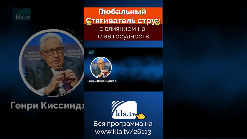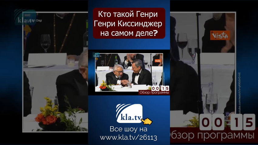 Дамы и господа, информация о жизни Генри Киссинджера находится в открытом доступе по всему миру. И тем не менее, он до сих пор остается "лауреатом Нобелевской премии мира" и никогда не был привлечен к ответственности за свои действия! Напротив, видно, что он десятилетиями управлял мировой политикой с помощью Совета по международным отношениям, Бильдербергских встреч, ВЭФ и Мюнхенской конференции по безопасности в сотрудничестве с другими глобальными стратегами. Эти глобальные стратеги десятилетиями сидели у рычагов власти и никогда не избирались народом. Настало время, чтобы их тайные и бесчеловечные махинации стали достоянием гласности и были остановлены. Распространите информацию об этой программе и помогите донести ее до широкой общественности.
