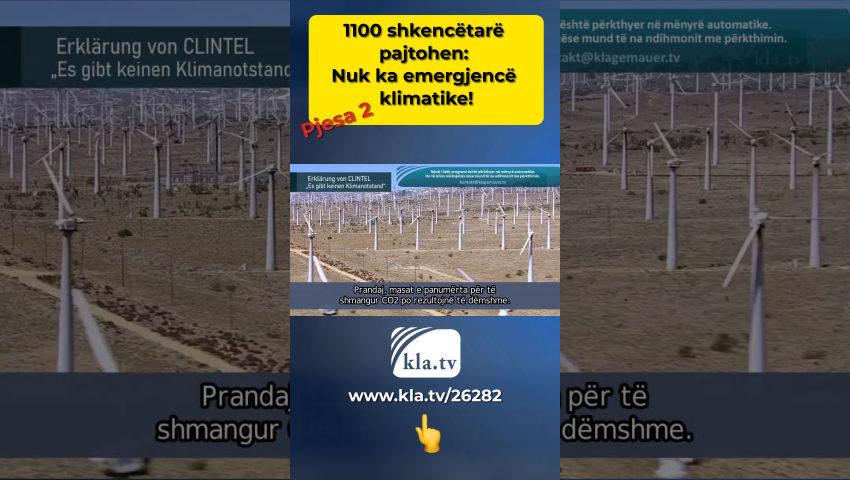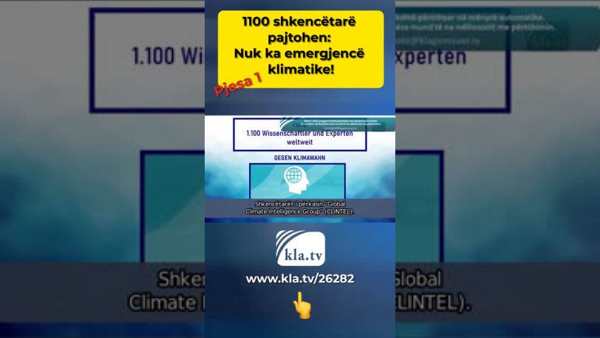 A po ndryshon klima në tokë? Natyrisht. I pandërprerë. Për miliarda vjet. A ka njeriu ndikim në të? Ndoshta po. Por atëherë padyshim jo në masën që ndjekësit e fesë së re të klimës do të donin që ne të besojmë. Ky është mendimi i rreth 1100 shkencëtarëve dhe ekspertëve nga e gjithë bota që kundërshtojnë çmendurinë klimatike të mbështetur ndër të tjera nga Forumi Ekonomik Botëror. Shkencëtarët i përkasin "Global Climate Intelligence Group" (CLINTEL). Deklarata e lëshuar e grupit me titull "Nuk ka asnjë emergjencë klimatike" -- e udhëhequr nga fizikani norvegjez-amerikan dhe laureati i çmimit Nobel, Profesor Ivar Giaever – thoshte: Sipas arkivit gjeologjik, klima e tokës ka ndryshuar që nga ekzistenca e planetit dhe ka periudha natyrore të ftohta dhe të ngrohta. Si rezultat, ne kemi qenë në një fazë ngrohjeje që nga fundi i Epokës së Vogël të Akullnajave në 1850. Ekspertët e shohin efektin e CO2 si të fryrë nga politika klimatike, ndërkohë që është injoruar plotësisht, se pasurimi i atmosferës me CO2 është i dobishëm: për rritjen e bimëve, për bujqësinë dhe thjesht si bazë për të gjithë jetën në tokë. Prandaj, masat e panumërta për të shmangur CO2 po rezultojnë të dëmshme. Përveç kësaj, ato shkaktojnë kosto të mëdha. Sipas deklaratës, nuk ka absolutisht asnjë provë statistikore se ngrohja globale ndikon në shpeshtësinë dhe ashpërsinë e uraganeve, përmbytjeve, thatësirave dhe fatkeqësive të ngjashme natyrore. Grupi Global i Inteligjencës Klimatike e gjen politikën e karbonit neto zero Qëllimi i politikave neto zero është të largojë sa më shumë dioksid karboni nga atmosfera që prodhohet si joreale dhe në fund të si të prodhuara vetë shkatërruese për jetën.Kjo tregon se nuk ka vërtet asnjë arsye për alarm dhe panik kur bëhet fjalë për klimën globale. Të dashur shikues, këta zëra të rëndësishëm nga radhët e shkencës ju ftojnë të merreni objektivisht me këtë temë. Frika e nxitur nga politikanët dhe mediat dhe disponimi i përhapur i alarmit janë këshilltarë të këqij, siç njerëzit e kanë njohur gjithmonë. Sepse vetëm kur nuk ka frikë njeriu mund të mendojë lirshëm dhe racional dhe të krijojë një mendim të pavarur, të bazuar. Dhe nga kjo, një pozicion i qartë mund të rritet.