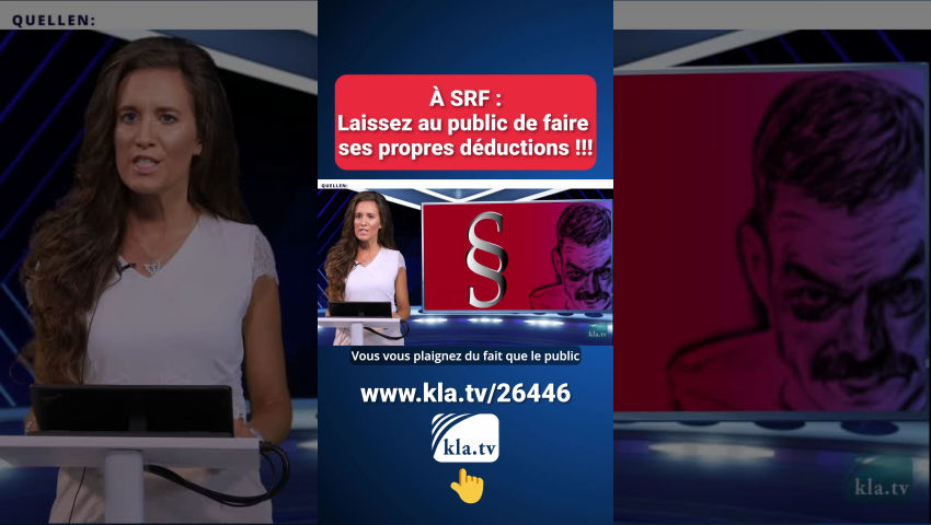 Le public doit savoir comment Kla.TV est menacé par SRF suite à cette émission de révélation. C'est pourquoi nous publions également la lettre de menace du service juridique de SRF et les réponses de l'auteure de Kla.TV, Loïs Sasek, à la suite de l'émission. Soyez témoin des accusations infondées de SRF et écoutez comment Kla.TV les réfute et donne ainsi beaucoup plus de poids au documentaire.