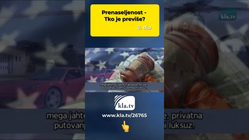 Desetljećima su nas mainstream mediji upozoravali hitno protiv prenaseljenosti diljem svijeta. Istovremeno se raspiruje ogroman strah da će svijet uskoro postati jedno imat će ograničenje populacije koje zemlja više ne može podnijeti. Za ovu nesretnu situaciju krive su zemlje Trećeg svijeta i njihov visok natalitet Mjesto. Ubliminalno, rečeno nam je da je to dobra stvar obuzdajte rast stanovništva i poduzmite mjere. UN i Svjetska banka slažu se: Prenapučenost je kriva za glad i siromaštvo u svijetu. Iza ovih izjava nalazi se prije svega jedna stvar: mizantropska slika. Ali što se točno krije iza tvrdnje da je svijet prenaseljen? U vezi s prenaseljenošću, često se suočavamo sa slikama golemih Prikazane su gomile ljudi u velikim gradovima ili ogromnim slamovima. Ali zašto ljudi žive nagurani jedni u drugima u slamovima? Razlog nije u tome što je svijet prenaseljen i ovi ljudi nemaju drugo mjesto na zemlji.Zemlje bi bilo dovoljno, ali oni nemaju novca da kupe komad zemlje. Čak i da imaju dovoljno novca, to ne bi funkcioniralo jer neki vrlo bogati ljudi poput Billa Gatesa, Teda Turnera itd. posjeduju ogromne zemlje i bogatstvo nezamislivih razmjera koji više nisu dostupni široj javnosti. Zbog toga nema dovoljno životnog prostora, jer zemljina površina ne pripada svim ljudima jednako, već relativno veliki dio životnog prostora zauzima vrlo malo "vlasnika" i koristi se za iskorištavanje. Na primjer, ako date zemlju za 7 milijardi ljudi u Austriji svaka bi osoba dobila 11 m². To je više prostora nego što jedan zatvorenik ima pravo, a ostatak svijeta bi bio bez ljudi. Dakle, nema previše siromašnih ljudi na svijetu, već previše superbogatih koji rade samo za vlastitu dobrobit. Uzmimo jednu od najbogatijih obitelji svijeta, Rothschilde. Rothschildi posjeduju najmanje 164 banke diljem svijeta. Neto vrijednost se procjenjuje na 500 trilijuna dolara. Nitko ne može racionalno shvatiti brojku od 500 bilijuna. Za usporedbu: sve zemlje svijeta zajedno imaju “samo” 71,6 bilijuna duga. Ovdje postaje jasno kome država ili narod zapravo duguje, naime superbogatašima. Oni su ti koji su odgovorni za siromaštvo na zemlji. Samo Sudan - zemlja u sjeveroistočnoj Africi - sa svojom primitivnom poljoprivrednom tehnologijom, koja se može usporediti s onom u Njemačkoj 1950-ih i 60-ih, mogao bi prehraniti milijardu ljudi. Također, glavni mediji nam mantraju da prenaseljenost uništava okoliš. Istina je da jedan posto čovječanstva - odnosno najbogatijih - degradira okoliš dvostruko više nego milijarde ljudi u siromašnijih 50% svijeta. Masovno štete okolišu ulažući u industrije i korporacije štetne za okoliš, mega jahte, privatne zrakoplove, privatna putovanja u svemir i pompozni luksuz. Ne bi li se stoga trebalo zahtijevati da ti vrlo bogati ljudi, poput Rothschilda, Rockefellera, Warburga, Morgana, Billa Gatesa, itd., koji grabe zajednička dobra i time guraju milijarde ljudi u glad i siromaštvo, vratiti njihovo ukradeno bogatstvo? Ako je skupina ljudi prevelika i štetna za Zemlju, onda ne siromašni, nego očito super bogati. Kao što je Mahatma Gandhi jednom prikladno rekao? "Svijet ima dovoljno za svačije potrebe, ali ne za svačiju pohlepu."