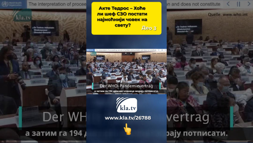 Данас Kla.tv ”под лупом”посматра човека чија овлашћења треба да буду енормно проширена и који онда врло лако може да прогласи нове пандемије широм света.