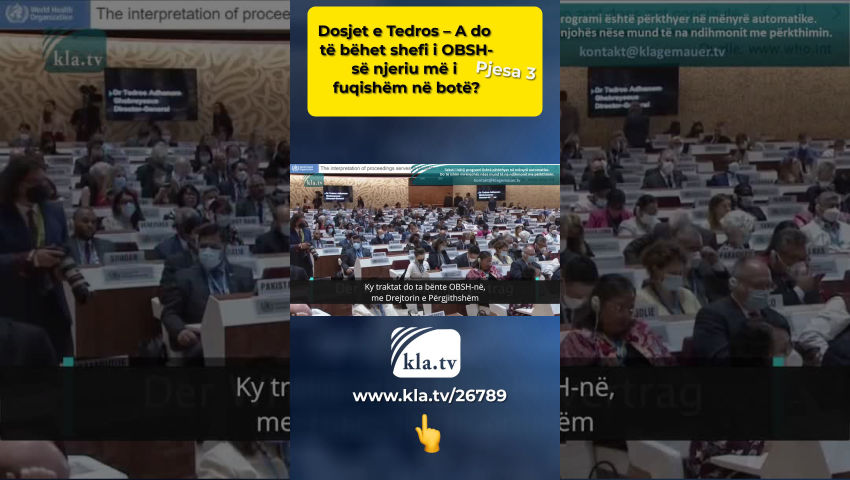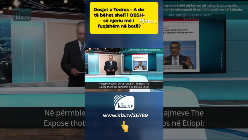 Kla.tv hedh një vështrim nga afër të njeriut, fuqia e të cilit është planifikuar të zgjerohet jashtëzakonisht dhe që më pas shumë lehtë mund të shpallë pandemi të reja në mbarë botën. Është Tedros Adhanom Ghebreyesus, Sekretari aktual i Përgjithshëm i Organizatës Botërore të Shëndetësisë. Dosja 1: Ngritja në krye të OBSH-së Sipas Wikipedia, Tedros iu bashkua Frontit Çlirimtar Popullor komunist Tigrayan - shkurt TPLF - në 1991. Më pas, TPLF sundoi deri në vitin 2018. Si anëtar i partisë TPLF, Tedros u ngrit hap pas hapi. 2005 – 2012: Ministri i Shëndetësisë i Etiopisë 2012 – 2016: Ministër i Punëve të Jashtme të Etiopisë Ajo që është shpërthyese është se TPLF është një organizatë e dhunshme me një axhendë komuniste. TPLF është renditur si një organizatë terroriste në bazën e të dhënave të terrorizmit global që nga viti 1976, sepse shpesh ishte përfshirë në rrëmbime dhe arrestime. Gjatë sundimit të saj gati 30- vjeçar, TPLF kreu shkeljet më të rënda të të drejtave të njeriut. Si një anëtar i lartë i Byrosë Politike dhe një ministër për një kohë të gjatë i TPLF, Tedros duhet të mbahet pjesërisht përgjegjës për këto krime! PËRMBLEDHJE: Grupi i dhunshëm terrorist TPLF u bë mbajtësi i shtyllës për Tedros! Kjo hedh një hije të errët në ngritjen e tij! Dosja 2: Krime të rënda kundër të drejtave të njeriut! Fragmentet e mëposhtme nga raportet zyrtare vjetore nga organizatat e të drejtave të njeriut Amnesty International dhe Human Rights Watch (HRW) nga 2005-2016 dokumentojnë mizori të paimagjinueshme nga qeveria etiopiane nën Tedros: 2007: Trupat qeveritare djegin fshatra të tëra, kryejnë ekzekutime publike, përdhunojnë gra dhe vajza. 2010: Gazetat mbyllen, redaktorët po ikin nga frika! 2015: Amnesty raporton forma të rënda torture, duke përfshirë djegiet dhe goditjet elektrike, në stacionet e policisë lokale dhe burgjet rajonale. Sipas një raporti të portalit britanik të lajmeve "The Expose", TPLF, e cila sundoi nga viti 1991 deri në vitin 2018, ishte "një nga regjimet më të korruptuara, brutale dhe gjenocidale që ka shkelur në këtë planet në 30 vitet e fundit". Si një anëtar drejtues i këtij regjimi, Tedros ishte një bashkëpunëtor! Në përmbledhje, portali britanik i lajmeve The Expose thotë për sundimin e Tedros në Etiopi: “Qeveria e TPLF ka […] kryer masakra të panumërta. dr Tedros ishte një pjesë integrale e TPLF, e cila ruante fuqinë e saj duke vrarë këdo që guxonte të sfidonte taktikat e saj shtypëse. PËRMBLEDHJE: Krimet më brutale ndaj popullatës civile gjatë kohës së tij si ministër përgjegjës nxjerrin në pah paskrupulltizmin e tij dhe e bëjnë të patolerueshëm! Dosja 3: Krimet si ministre e Shëndetësisë Gjatë mandatit të tij si ministër i shëndetësisë i Etiopisë, thuhet se ai ka injoruar shpërthimet e kolerës në disa raste në 2006, 2009 dhe 2011. Thuhet se Tedros u ka bërë presion punonjësve shëndetësorë vendas që t'i referohen kolerës që ata kishin zbuluar tashmë si "diarre ujore". Sipas portalit britanik të lajmeve The Expose, Tedros jo vetëm që mbuloi epidemitë e kolerës, por si ministër përgjegjës i shëndetësisë ai ishte edhe bashkëpunëtor në vitet e bllokadave gjenocidale të ushqimit dhe ilaçeve për popullsinë somaleze në Ogaden. Ai ndihmoi në dëbimin e Kryqit të Kuq dhe Mjekët pa Kufij nga Ogaden gjatë një sërë shpërthimesh kolere, duke shkaktuar vdekjen e njerëzve të panumërt gjatë një sërë urie dhe epidemish historike. PËRMBLEDHJE: Epidemitë e shumta të fshehta të kolerës dhe bllokimi i dërgesave të ndihmave për fise të caktuara etnike e skualifikojnë Tedrosin si Ministër të Shëndetësisë! Dosja 4: Lidhjet e Tedrosit Prandaj, shumë gazetarë të pavarur vijnë në përfundimin e mëposhtëm: Tedros Adhanom Ghebreyesus nuk duhet të ishte zgjedhur kurrë Drejtor i Përgjithshëm i OBSH-së! Ai duhej të ishte akuzuar për krime kundër popullit etiopian! Doli të ishte terrorist dhe kriminel i rëndë! Por si ishte e mundur që ai u zgjodh megjithatë shef i OBSH-së? Gjithashtu vlen të përmendet se Wikipedia raporton se gjatë kohës së tij si Ministër i Shëndetësisë së Etiopisë, Tedros ishte shumë i zënë me ndërtimin e marrëdhënieve me figura ndërkombëtare. Ketu jane disa shembuj: Ish-presidentit të SHBA Bill Clinton Ai u takua shpejt me Clinton personalisht, si në fillim të mandatit të tij si ministër dhe si Sekretar i Përgjithshëm i OBSH-së. Tedros, nga ana tjetër, ndihmoi Fondacionin Klinton të merrte një donacion prej 100 milionë dollarësh nga një kompani minerare shumë e dyshimtë suedeze-kanadeze, e cila gjithashtu bëri biznes me diktatorët afrikanë dhe rebelët marksistë dhe minoi burime minerale në shkelje të të drejtave të njeriut. Bill Gates Përsëri dhe përsëri, Tedros bëri postime publike nga takimet personale me Gates. Tedros mori përsipër Gates ishte mentori i tij i madh dhe ishte shumë mbështetës i kandidaturës së Tedros për shefin e OBSH-së. Kjo ngre pyetjen se sa i pavarur është në të vërtetë Tedros nga donatori i dytë më i madh i OBSH-së. Klaus Schwab Një postim në Twitter nga Tedros e tregon atë me themeluesin e WEF Klaus Schwab, në të cilin ai e siguron atë për një bashkëpunim më të ngushtë me WEF. Kjo lidhje është padyshim e rrezikshme sepse Klaus Schwab është truri kryesor i Rivendosjes së Madhe dhe qëllimi i tij është që askush të mos ketë më asgjë në pronësi. A nuk e shpjegojnë ngatërresat e mësipërme në mënyrë përfundimtare pyetjen se si ishte e mundur që Tedros të zgjidhej Drejtor i Përgjithshëm i OBSH-së pavarësisht nga e kaluara e tij dukshëm jashtëzakonisht e diskutueshme? A e mbështetën kandidaturën e tij strategët e fuqishëm globalë të përmendur pikërisht për këtë arsye? Për sh