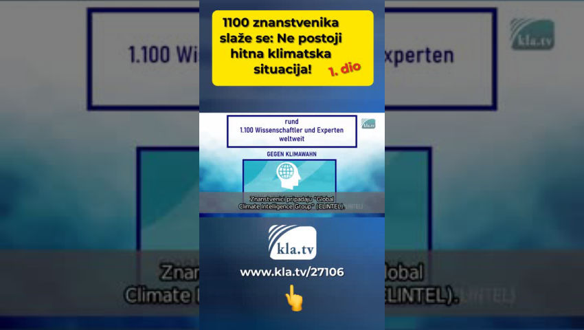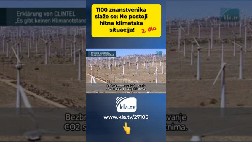 Mijenja li se klima na zemlji? Prirodno. Neprekidan. Milijardama godina. Ima li čovjek utjecaja na to? Moguće da. Ali onda očito ne u onoj mjeri u kojoj bi sljedbenici nove klimatske religije željeli da vjerujemo. Tako smatra oko 1100 znanstvenika i stručnjaka iz cijeloga svijeta koji se protive klimatskom ludilu koje među ostalima podržava i Svjetski ekonomski forum. Znanstvenici pripadaju “Global Climate Intelligence Group” (CLINTEL). U objavljenoj izjavi grupe, pod naslovom "Nema klimatskog izvanrednog stanja." (na engleskom: “Ne postoji klimatska hitna situacija”) – pod vodstvom norveško-američkog fizičara i dobitnika Nobelove nagrade profesora Ivara Giaevera – navodi: Prema geološkom arhivu, klima na zemlji je varirala od postojanja planeta i ima prirodna hladna i topla razdoblja. Kao rezultat toga, nalazimo se u fazi zagrijavanja od kraja malog ledenog doba 1850. godine. Stručnjaci smatraju da je učinak CO2 prenapuhan klimatskom politikom. Potpuno zanemarujući dobrobiti dodavanja CO2 u atmosferu: za rast biljaka, za poljoprivredu i jednostavno kao osnovu za sav život na zemlji. Bezbrojne mjere za izbjegavanje CO2 stoga se pokazuju štetnima. Osim toga, uzrokuju enormne troškove. Kako stoji u priopćenju, nema apsolutno nikakvih statističkih dokaza da globalno zatopljenje utječe na učestalost i žestinu uragana, poplava, suša i sličnih prirodnih katastrofa. Global Climate Intelligence Group pronalazi politiku neto-nula ugljika [Cilj politika neto-nula je ukloniti onoliko ugljičnog dioksida iz atmosfere koliko se proizvede]. Kao nerealno i u konačnici životno uništavajuće. To pokazuje da doista nema razloga za uzbunu i paniku kada je u pitanju globalna klima. Poštovani gledatelji, ovi važni glasovi iz redova znanosti pozivaju vas da se ovom temom pozabavite objektivno i razborito. Strah koji potiču političari i mediji te rašireno raspoloženje za uzbunu loši su savjetnici, što ljudi oduvijek znaju. Jer samo kada straha nema, čovjek može slobodno i racionalno razmišljati i formirati samostalno, utemeljeno mišljenje. I iz toga može izrasti jasna pozicija.