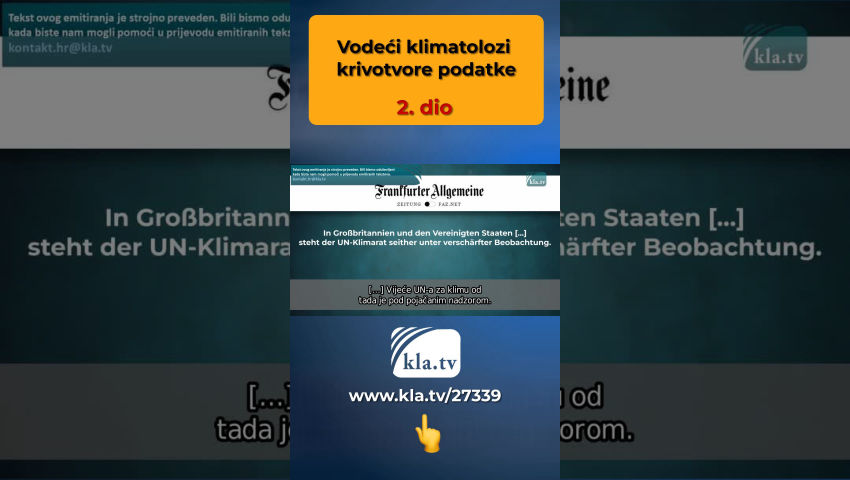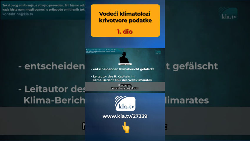 Dana 14. i 23. srpnja SRF je izvijestio: "Istraživači klime pokazali su utjecaj ljudi na klimatski sustav." Dr. Za Benjamina Santera, jednog od najuglednijih znanstvenika na svijetu, sada se kaže da je pomoću NASA-inih satelitskih mjerenja pokazao da se gornja atmosfera hladi i da do ovog fenomena može doći samo ljudskim utjecajem. Osim što je riječ o pukoj teoriji o kojoj se raspravlja od 1960. godine, SRF ovim izvješćivanjem zataškava važne informacije. Benjamin Santer sve je samo ne vrijedan povjerenja. U prošlosti je krivotvorio ključno izvješće o klimi. Dr. Benjamin Santer, koji je vrlo cijenjen diljem svijeta u političkim i medijskim krugovima, bio je glavni autor poglavlja 8 u Izvješću o klimi iz 1995. Međuvladinog panela o klimatskim promjenama 1990-ih. Santer je promijenio neke dijelove izvješća. Britanski političar Lord Monckton svjedočio je ovoj krivotvorini. U intervjuu, Monckton je svjedočio: “Uključeni znanstvenici napisali su svoj konačni nacrt. Ovaj nacrt navodi da nije bilo vidljivih učinaka globalnog zatopljenja izazvanog čovjekom na 5 različitih lokacija. Znanstvenici su istu činjenicu izrazili pet puta različitim riječima. Santer je uklonio te izjave i zamijenio ih novim zaključkom, a to je i dan danas službeni zaključak.“ Tek 14 godina kasnije Santer je u intervjuu priznao promjene. No, ovo je priznanje dao samo na temelju izjava lorda Moncktona, koji je cijeli ovaj skandal iznio u javnost. Ovom krivotvorinom Santer je započeo prvi provjerljivi primjer manipulacije znanosti u vezi s klimatskim promjenama izazvanim čovjekom. Iskoristio je svoj položaj da progura naslov, da su ljudi jedan od uzročnika globalnog zatopljenja. U tom kontekstu vrlo je zanimljivo da je dr. Ben Santer je nekoć diplomirao na Jedinici za klimatska istraživanja na Sveučilištu East Anglia. Ovo sveučilište financira Zaklada RockefellerSada je očito da su znanost i sveučilišta podložni volji superbogatih poput Rockefellera, jer svi ovise o njihovom novcu. Sveučilište o kojem je riječ bilo je i meta hakerskih napada 2009. godine, tzv. “Climategate skandala”. Hakeri su došli do skandaloznih mailova svjetski poznatih klimatologa. Čak je i mainstream morao izvještavati o tome u to vrijeme: Evo što je FAZ pisao 2013. godine: “Nove nedosljednosti neprestano izlaze na vidjelo u izvješćima istraživača klime. Navodno je došlo do male manipulacije da se spasi svijet. Promet e-pošte koji su kradljivci podataka objavili otkrio je ne samo opušteno rukovanje podacima mjerenja, već i nastojanje da se klimatska događanja na planetu prikažu što dramatičnije. U Velikoj Britaniji i Sjedinjenim Državama […] Vijeće UN-a za klimu od tada je pod pojačanim nadzorom. Nove nedosljednosti u izvješćima istraživača sada se tamo osuđuju gotovo svaki tjedan [...]. Focus je napisao: “E-poruka ni manje ni više nego direktora instituta, Phila Jonesa, učinila ju je nažalost poznatom. Ondje piše kolegi: [...] "Upravo sam završio Mikeov prirodni trik dodavanja stvarnih temperatura svakoj seriji (podataka) za posljednjih 20 godina... kako bih sakrio pad (temperature)" . […] Velik dio e-poruka bavi se nestankom podataka. U to je vrijeme žestoko kritiziran i Međuvladin panel za klimatske promjene (IPCC). Zeit-online je napisao: “Niz skandala uzdrmava vjerodostojnost i autoritet IPCC-a; Neki od scenarija katastrofe koje slika na zidu pokazuju se kao izjave koje se ne mogu znanstveno dokazati.” No umjesto da nastave s otkrivanjem sve dok počinitelji ne odgovaraju, greške se ne isprave i znanstvena istina ne vrati, mediji i dalje pokušavaju zataškati većinu ovih skandala. Ali kako to da istraživači klime poput dr. Ben Santer manipulira klimatskim izvješćima? Istraživačica klime gđa. Curry ovdje daje jasan odgovor. U prezentaciji pred istražnim odborom, ona detaljno pokazuje: "Postoji ogroman pritisak na klimatske znanstvenike da se pridruže takozvanom konsenzusu. Taj pritisak ne dolazi samo od političara, već i od državnih financijskih institucija, sveučilišta i stručnih društava [...]." Unatoč ovim očiglednim skandalima, Jedinica za klimatska istraživanja na Sveučilištu East Anglia i Međuvladin panel za klimatske promjene i njihovi klimatolozi nastavljaju oblikovati globalno mišljenje kada je riječ o klimatskim promjenama. Gotovo sve nacije svoje postupke temelje na svojim klimatskim izvješćima i izračunima. Moramo kolektivno zahtijevati da se ovi skandali otkriju, do dna. Ne smije biti slučaj da klimatolozi, sveučilišta i Međuvladin panel za klimatske promjene, jednom razotkriveni kroz laži i manipulacije, i dalje ostaju na svom položaju kao da se ništa nije dogodilo i nastavljaju utjecati na sva zbivanja u svijetu preko svojih krivotvorenih klimatskih podataka.