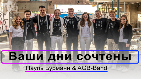 Гнев Божий над вами восстает Вы считаете себя в безопасности, благодаря своей силе. А мы, слабые, приведем вас к падению. Сила знания, откровения и просвещения синергирует с божественной силой Ваши дни сочтены! Дни сочтены На ринге ведется отсчет На ринге ведется отсчет История написана В горы, в расщелины бежать вам надо Потому что мы стоим в синергии. Белые всадники, белые кони с энергией Лук, натянутый божественными стрелами безошибочно они догонят вас! Ложь, раскрытая без пробелов Миллиарды людей пробуждаются Так солнце поднимается, озаряя ночь Разбиты все демонические силы В тихой комнатке Вместе или в одиночку мы повелеваем божественной армией Пока не будет больше сынов погибели Ваши дни сочтены! Дни сочтены На ринге ведется отсчет На ринге ведется отсчет История написана В горы, в расщелины бежать вам надо Потому что мы стоим в синергии. Белые всадники, белые кони с энергией Лук, натянутый божественными стрелами безошибочно они догонят вас! Ваши дни сочтены! На ринге ведется отсчет История написана В горы, в расщелины бежать вам надо Потому что мы стоим в синергии. Белые всадники, белые кони с энергией Лук, натянутый божественными стрелами безошибочно они догонят вас!