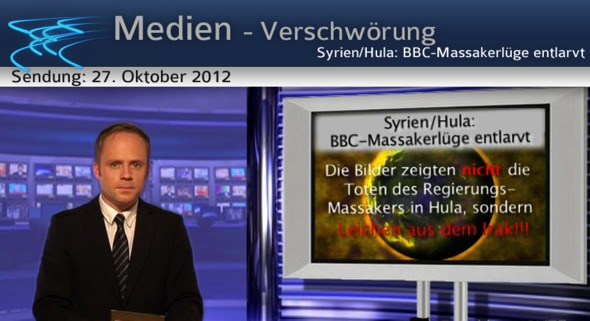 Am 25. Mai 2012 sollen syrische Truppen und Milizen bei dem syrischen Dorf Hula 108 Menschen niedergemetzelt haben, berichteten unsere Medien. Die BBC veröffentlichte auch gleich ein eindrucksvolles Foto davon: Hunderte von Leichen in Leinensäcken, die in einer großen Halle liegen. Ein Kind hüpft über alle Leichen. Die Botschaft der Bilder: „Schreckliche Wirklichkeit der Gewaltherrschaft des syrischen Despoten Baschar al- Assad.“ Doch so reißerisch das BBC- Foto auf ihrer Titelseite zu dem Massaker auch sein mochte: Das Problem: Das Bild zeigte gar nicht die Toten des angeblichen Regierungs-Massakers in Hula, sondern Leichen aus dem Irak. Dieses Bild ist nachweislich neun Jahre alt! Das enthüllte kurz nach der Veröffentlichung der Fotograf des Bildes, Marco di Lauro, auf seiner Facebook-Seite: „Jemand benutzt illegal eines meiner Bilder für anti-syrische Propaganda auf der Titelseite der BBC-Webseite.“ Dies regte Lauro entsetzlich auf.