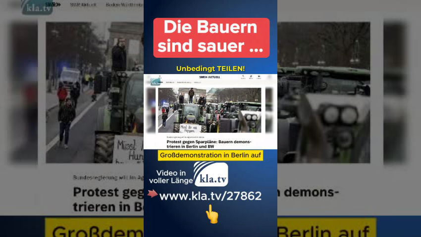 Im Haushalt der deutschen Bundesregierung klafft grade ein großes Loch. Milliardensummen müssen eingespart und die grüne Agenda soll gleichzeitig weitergeführt werden. Bei den Bauern geht es konkret um die Einsparung von etwa 1 Milliarde Euro durch die Streichung der Subventionen für Agrardiesel und der bisherigen Befreiung von der Kraftfahrzeugsteuer für Landwirtschaftsfahrzeuge. Dagegen wehrten sich die Bauern schon im Dezember und riefen zu einer Großdemonstration in Berlin auf. Mit 1.500 Traktoren blockierten sie komplett die Straße zum Brandenburger Tor. Zu Jahresbeginn 2024 bahnt sich nun eine enorme Ausweitung dieser Protestaktionen an. Ein erster Höhepunkt ist der 8. Januar 2024, der eine Protest-Woche mit anschließender Großdemonstration am 15. Januar 2024 in Berlin einläutet. Alfons Wolff: Bundessprecher der Bundesvertretung der FREIEN BAUERN „Der Protest geht weiter. Die Steuerpläne der Bundesregierung müssen weg und zwar ersatzlos. Lass uns dafür im neuen Jahr auf die Straße gehen mit allen gemeinsam, egal, welcher Verband und mit all den Bürgern, die sich bereits uns angeschlossen haben. Das Scheitern der Ampelkoalition hilft uns alleine nicht weiter. Wir brauchen Perspektiven. Und selbst AfD und CDU haben dem Gesetzvorschlag zugestimmt, was kaum zu glauben ist. Nicht nur die ungerechtfertigten Steuern sind heute unser Problem. Die Freien Bauern fordern ein grundsätzliches Umsteuern in der Agrarpolitik. Weg mit „Green Deal“ und „Farm to Fork“. Weg mit den überzogenen Auflagen und der wahnsinnigen Bürokratie. Weg mit dem Preisdruck durch Importe, die nicht nach unseren Standards produziert wurden. Weg mit dem Preisdruck durch Monopole in vor- und nachgelagertem Bereich. Weg mit Gentechnik, Laborfleisch und Insektenfraß. Und vor allen Dingen auch weg mit den Wölfen aus unserer Kulturlandschaft. Wir fordern eine Neuausrichtung der Agrarpolitik.“ Den Bauernprotesten schließen sich immer mehr andere Berufsgruppen, wie Spediteure, Lokführer, Gastronomen und Handwerker an. Auch sie leiden unter den Maßnahmen der Ampelregierung und fürchten um ihre Existenz. Aus aktuellem Anlass strahlen wir deshalb im Anschluss noch einmal die Doku „Bauernopfer“ aus. Sie beleuchtet Hintergründe und Strategien dieser verfehlten Agrarpolitik, mit der nicht nur die Existenz der Bauern, sondern [die] der gesamten Gesellschaft gefährdet wird.