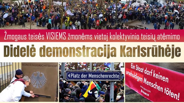 Šiandien, sekmadienį, 2023 m. gruodžio 10 d., 75-osios Visuotinės žmogaus teisių deklaracijos metinės, čia, Karlsrūhėje, vyksta precedento neturintis ir labai ypatingas istorinis įvykis. Per plataus masto demonstraciją su mitingais ir eitynėmis Federalinei Karlsrūhės prokuratūrai buvo pateikti 599 skundai. Tai nukreipta prieš asmenis, atsakingus už teisinį sveikatos priežiūros specialistų ir Vokietijos ginkluotųjų pajėgų narių privalomų skiepų įvedimą. Nes leidimas pakenkti vakcinomis ir mirti nuo vakcinos yra Visuotinės žmogaus teisių deklaracijos ir Tarptautinio baudžiamojo kodekso 7 straipsnio pažeidimas. Pasak organizatoriaus, susitaikymo nebus tol, kol neteisėtų kovos su koronavirusu priemonių vykdytojai liks nenubausti. Į mitingus buvo pakviesti aukšto rango kompetentingi pranešėjai, siekiant pabrėžti nusikaltimų mastą ir būtinybę imtis veiksmų.