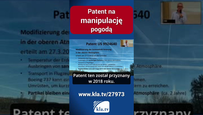 Co Wy, drodzy widzowie, wiecie na temat manipulacji pogodą? Czy ten temat jest również kontrowersyjny w waszym środowisku i często odrzucany jako teoria spiskowa? Poniższa prezentacja doktora naukowca podczas Letniego WEFF 2022 w Davos jest bardzo pouczająca w tym względzie. Philipp Zeller studiował fizykę na ETH w Zurichu i posiada tytuł doktora nauk przyrodniczych. Jako pilot rekreacyjny, Zeller szczegółowo bada pogodę od ponad trzech dekad. Z biegiem czasu coraz częściej zauważał "anomalie na niebie". Zaczął prowadzić własne dochodzenia i badania. W szczególności na tematy SRM (Solar Radiation Management), SAI (Stratospheric Aerosol Injection) i HAARP (High Frequency Active Auroral Research Project). Były wykładowca uniwersytecki Zeller przez długi czas pracował w dziedzinie patentowania. Jest więc bardzo dobrze zaznajomiony z tą dziedziną. Dzięki swoim badaniom znalazł około 1000 patentów na technologie manipulacji pogodą - sięgających 1892 roku. Poniższa prezentacja nie ma na celu wzbudzania strachu. Manipulowanie pogodą odbywa się za naszą wiedzą lub bez niej. Zorientowane na fakty odkrywanie faktów ma raczej na celu przeciwdziałanie zaprzeczaniu tym procesom i dostarczanie argumentów opartych na faktach. Dlatego prosimy o rozpowszechnianie tego filmu wśród nieświadomych, ale poszukujących prawdy ludzi. Prezentacja Philippa Zellera: Letni WEFF22 Geoinżynieria:Co to ma wspólnego z geoinżynierią i zdrowiem? Jak już wspomniałem, chciałbym przedstawić niewyczerpujący przegląd kilku rządowych dokumentów i przepisów dotyczących patentów. Nie składa się wniosków patentowych dla zabawy, kosztują one dużo pieniędzy. Trzeba również udowodnić, że działają, w przeciwnym razie nie zostaną przyznane i opublikowane prace badawcze, nie przeze mnie, ponieważ, jak powiedziałem, powinny one również pokazywać skupienie się na zdrowiu. Jak powiedziałem, to tylko przegląd, prowadzę badania niemal bez przerwy. Nie twierdzę, że wygłaszam tutaj wykład naukowy, w sensie konferencji naukowej, pod względem struktury i tak dalej, ale jak powiedziałem, jest to przegląd. I oczywiście mogę się mylić, mogę popełniać błędy lub mogę cytować coś, co być może jest na chwiejnym gruncie, po prostu chcę to powiedzieć z góry. Czym w ogóle jest geoinżynieria? Pani Weichelt wspomniała wcześniej o chemtrails. Staram się nie wspominać o tym terminie, ponieważ termin chemtrail zawsze natychmiast stawia cię w kącie teoretyków spiskowych, mimo że sam termin został ukuty przez Siły Powietrzne Stanów Zjednoczonych w latach siedemdziesiątych XX wieku. To zabawna rzecz. Geoinżynieria jest z pewnością bardziej neutralnym terminem, a geoinżynieria obejmuje głównie manipulację pogodą, która jest w rzeczywistości najważniejsza, poprzez uwalnianie cząstek do atmosfery, ale także poprzez emitowanie fal elektromagnetycznych do atmosfery z dużą mocą. Następnie, oczywiście, sondowanie ziemi, które polega na zmianie, inżynierii ziemi, geo, ziemi. Innymi słowy, sondowanie w poszukiwaniu pustych przestrzeni, złóż ropy, gazu i tak dalej. I faktycznie, na początku prawie nie chciałem w to uwierzyć, można sztucznie wywoływać trzęsienia ziemi za pomocą tych działań. Wreszcie, pole magnetyczne Ziemi również może być manipulowane, zwłaszcza za pomocą wspomnianych promieni elektromagnetycznych. Dlaczego w ogóle przeprowadza się geoinżynierię? W rzeczywistości sięga to czasów zimnej wojny, która rozpoczęła się bezpośrednio po II wojnie światowej. Geoinżynieria na wielką skalę rozpoczęła się po II wojnie światowej. Chciałbym tutaj zacytować byłego prezydenta USA Lyndona B. Johnsona. Powiedział on na konferencji w 1962 roku dosłownie: "Ktokolwiek kontroluje pogodę, kontroluje świat". I to są wysiłki tych supermocarstw, przede wszystkim USA. Nawiasem mówiąc, to przemówienie jest dostępne na YouTube, można je znaleźć, można go posłuchać w oryginalnym brzmieniu. W przeszłości - zabawne jest to, że zawsze zaprzecza się, że geoinżynieria jest w ogóle wykonywana - ale w przeszłości było wiele takich projektów. Chciałbym wspomnieć o kilku bardzo znaczących, które są dziś publicznie uznawane. Projekt Cumulus, który doprowadził do poważnej katastrofy powodziowej w Wielkiej Brytanii w 1952 r., kiedy to zaszczepiono chmury w celu ich sztucznego wytworzenia i wywołania deszczu. Była to bardzo dramatyczna powódź, w której zginęły 34 osoby, a wiele domów zostało zmiecionych z powierzchni ziemi. Oczywiście istnieją jeszcze gorsze katastrofy, ale związek był bardzo oczywisty. Oczywiście przez wiele lat było to wyciszane, aż w końcu wyszło na jaw. Następnie był projekt Stormfury, który trwał od 1962 do 1971 roku, w ramach którego próbowano wpływać na huragany za pomocą tak zwanego zasiewu, tj. poprzez rozprzestrzenianie cząstek. Dziś robi się to znacznie bardziej profesjonalnie niż wtedy. Wtedy był to tylko projekt badawczy. Prawdopodobnie większość ludzi zdaje sobie sprawę z Projektu Popeye, w ramach którego podczas wojny w Wietnamie celowo wywoływano duże opady deszczu, aby zamulić i uniemożliwić Wietkongowi szlaki zaopatrzeniowe. Na koniec chciałbym również przypomnieć, że przeprowadzono ponad 2000 testów bomb atomowych. Dlaczego więc trzeba tak często testować tak niszczycielską i zanieczyszczającą bombę? Chodzi mi o to, że jeśli chce się ją zbudować, i tak już stawiam za tym znak zapytania, to wystarczą dwa lub trzy testy, wtedy wiesz, co ona robi. I nadal można to wykryć dzisiaj, w wodzie, w glebie i w atmosferze, całą tę radioaktywność. Istnieją dziesiątki, jeśli nie setki, oficjalnych dokumentów, z których niektóre zawsze były publicznie dostępne, a niektóre zostały później odtajnione, zwłaszcza w USA, więc naprawdę można spędzić godziny na ich badaniu i po