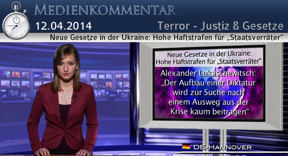 Guten Abend, sehr verehrte Zuschauerinnen und Zuschauer, der Oberste Rat der zurzeit amtierenden Übergangsregierung der Ukraine unter dem Vorsitz von Präsident Alexander Turtschinow hat auf die anhaltenden Unruhen in der Ostukraine am 8. April eine Verschärfung des Strafrechts für „Separatismus und andere Verbrechen gegen den Staat“ vorgenommen. Inhaltlich gehe es dabei um ein Verbot von Tätigkeiten politischer Parteien und öffentlichen Organisationen, die die Position des Separatismus vertreten und für ein Aggressor-Land arbeiten, erklärte Turtschinow sinngemäß. Zur Erklärung: Separatistische Strömungen in der Ost-Ukraine fordern - ähnlich wie die Bewohner der Krim - Volksabstimmungen über eine Abspaltung von der Ukraine. Die neu erlassenen Gesetze der nicht legitimierten Übergangsregierung in Kiew sehen für folgende Vergehen Freiheitsstrafen von 12 bis 15 Jahren vor: • Verletzung der Souveränität und territorialen Einheit der Ukraine, • Staatsverrat, • Überlaufen zu einem feindlichen Staat, während sich das eigene Land im Kriegszustand befindet, • Untergrundaktivitäten, die der Unterstützung eines anderen Landes dienen, Bei Fällen, die als schwerwiegender angesehen werden, kann mit lebenslangen Haftstrafen gerechnet werden. Doch wann, sehr verehrte Damen und Herren, ist jemand ein „Staatsverräter“? Was wird von den Machthabern als „Untergrundaktivität“ definiert? Womit verletzt man in ihren Augen die „Souveränität“ der Ukraine? All dies lässt einen großen Interpretations-Spielraum und Andersdenkende in der Ukraine müssen nun mit dem Schlimmsten rechnen. Eines jedoch ist klar: Als „Aggressoren-Land“ versteht die derzeitige Regierung der Ukraine eindeutig Russland. Wichtig jedoch, ist zu bedenken, dass gerade der gesetzeswidrige Umsturz der Regierung Janukowitsch unter massiver Einflussnahme der USA und EU die Ursache der Unruhen zunächst auf der Krim und nun im Süd-Osten der Ukraine darstellt. Liegt die Schuld für den Bruch der territorialen Einheit der Ukraine nicht gerade auf den „Aggressoren USA und EU“, die den Putsch organisiert haben, und ihren Helfern aus der ukrainischen Politik, wie z.B. Alexander Turtschinow und Arsenij Jazenjuk? Mit einer Verschärfung der Strafmaßnahmen für sogenannte „Verbrechen gegen die nationale Sicherheit“ hat die Ukraine nun eine immense Drohkulisse aufgebaut und Repressalien-Maschine in Gang gesetzt. Das erklärte auch der amtliche Sprecher des russischen Außenministeriums, Alexander Lukaschewitsch, am Donnerstag in Moskau: „Ohne auf das eigene Volk hören zu wollen, ohne sein Sinnen und Trachten mit zu berücksichtigen und ohne zu versuchen, die wahren Ursachen für Konflikte in östlichen Regionen des Landes zu analysieren, hatten die ukrainischen Parlamentarier nichts Besseres ausgedacht, als die eigene Bevölkerung mit dem Schwungrad der Repressionen gegen alle Andersdenkenden einzuschüchtern.“ Moskau rechne damit, dass sich Kiew dessen bewusst werde, dass Repressionen und polizeiliche Methoden nicht für die Lösung der Probleme geeignet seien, mit denen das Land konfrontiert sei. „Der Aufbau einer Diktatur wird zur Suche nach einem Ausweg aus der Krise kaum beitragen“, betonte der russische Diplomat. Verehrte Zuschauerinnen und Zuschauer. Helfen Sie, diese wichtigen Informationen schnell zu verbreiten. Einen guten Abend Ihnen.
