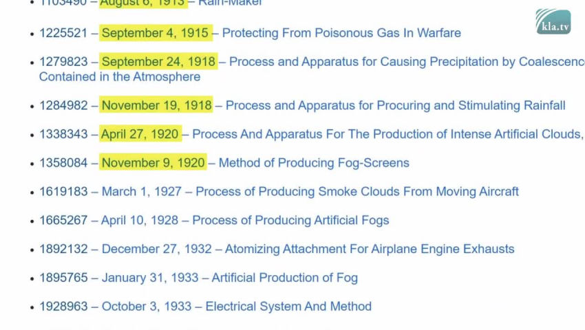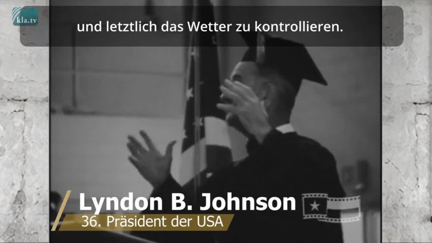Today I have a very important warning for all free educators, and it concerns man-made climate change. Until recently, I could not understand how half the world could fall for the climate slogans of Greta Thunberg, while it was written right on the face of this then 15-year-old child that this new mandatory climate religion couldn’t possibly have sprung from her own head or mind. Everyone under the sun would have to realize immediately that up to now this is just a poor sick little person being instrumentalized by a powerful elite and misused for their purposes. But what I could understand even less was that so many perfectly healthy children, teens and adults have – together with this abused little Greta – allowed themselves to be instrumentalized. I thought that, at least, these normal and reasoning people should be able to see through the fact that they were just being instrumentalized by the big con artists. No sensible person should have missed the fact that it is always the same abusers of power who constantly plague our beautiful world with their strategically fomented financial crises, wars and all kinds of plandemics and self-made crises, tyrannizing, plundering and gradually forcing us all into enslavement. But it was only after we had made many documentaries with Kla.TV against this new, sectarian, climate religion that it finally dawned on me. Highly significant documents that were leaked to us convinced me that we, here at Kla.TV had even allowed ourselves to be exploited – by the same crisis makers we are talking about here. I suddenly realized that it is neither stupidity nor ignorance that is driving the masses of people into this climate delusion. Rather, it is the diabolical cunning of these climate whisperers, who know exactly how to either keep us all in ignorance or then cleverly maneuver us into sideshows where we can bash each other's heads in with the truest arguments and counter-arguments. Now I’ll explain to you how we, at Kla.TV, also allowed ourselves to be instrumentalized by these climate criminals – and what we’ve learned from this. Because we, too, have fallen for their conjuring tricks. And how? Quite simply, by contradicting with the highest-ranking climatologists and scientists the constant claim that climate change was caused by us humans. They have used the very best and most convincing examples to demonstrate that climate change has been occurring naturally for thousands of years, with a constant up and down and back and forth of temperatures, winds and weather conditions, etc., and that is and remains correct. However, the more convincingly we have been able to prove that climate change cannot possibly be man-made, the more we played directly into the hands of these climate crisis makers! Now, of course, you’re wondering, why is that? What could be more useful than the insight that we, humans, can at best have a 0.000-something impact on the climate? This would clearly prove that little Greta is just spreading nonsense ... And you see, this constant back and forth, this wrangling at this far too low level as to whether climate change is man-made or not man-made, is the absolute deliberate side stage that these clever climate foxes have maneuvered us onto. What has become clear to me just recently though, through the insight into high-ranking weather manipulation patents, is the fact that many current changes in our weather and “climate” are man-made after all! But not from clueless people like you and me, that is, folks at the lowest level, but by unscrupulous misanthropes at the highest level! Neither through our heating systems nor through our car exhaust fumes or industries! And certainly not through any cow farts, which are even blamed for the ozone holes. No, you can read with your own eyes in countless patents that have been around for many decades that geoengineering, i.e. various weather manipulation techniques, cause ozone holes, among other things. The patents for these weather weapons also show that they can also actually cause earthquakes, flood disasters, droughts, snowstorms, lightning with and without thunder, heat waves, cold, heavy gales and even tornadoes. It even lists tsunamis, which nobody knew about at the time, and all the other horrible things we have had to experience in recent decades! The official US patent 4686605 – linked at the end of my talk – describes exactly how you can even generate heat or forest fires via the use of highly dangerous electromagnetic HAARP weapons! You will find numerous other numbered US patents in the text appendix below this broadcast – I can’t even read them all here due to the volume, let alone even begin to cover them. And while looking through various similar patents, I was also informed that such patents cost a huge amount of money and are granted only if the technologies applied do work. On top of this I discovered that the vast majority of weather manipulation patents are of military origin. That was also the reason why, back in the 1960s, many bills were drafted to ensure that these weather weapons could not be used for military purposes. Between 1947 and 1978 alone, 110 weather manipulation programs were already approved by the US Congress. In 1962, LYNDON B. JOHNSON (original quote available) said: “That will permit man to determine the world’s cloud layer and ultimately to control the weather; and he who controls the weather will control the world.” But then I saw all these numbers, how many millions of tons of nanoparticulate matter, even soot particles, for example, are regularly pumped into our skies. In the seventies, the US Air Force created the term chemtrails for this. When the first independent investigators heard of this secret crime against humanity, the CIA immediately began to discredit these people as conspiracy theorists. As a result, all those who had reported these highly toxic, nature-destroying stripes and fogging of the sky were hum