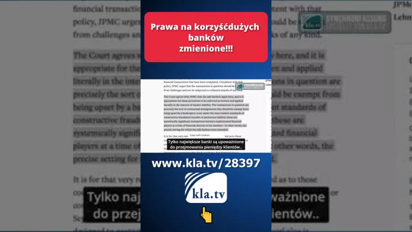 Istnieje niebezpieczeństwo, że podczas kolejnego krachu finansowego wszystkie prywatne aktywa staną się własnością kilku dużych prywatnych banków. W odpowiedzi na całkowite wywłaszczenie , prawo zostało zmienione na poziomie krajowym i międzynarodowym za plecami opinii publicznej W swojej niedawno opublikowanej książce "The Great Taking" David Webb, wysokiej rangi analityk finansowy, wyjaśnia i dokumentuje, jak mogło do tego dojść. [Dostępna bezpłatnie w kilku językach na stronie: TheGreatTaking.com]. Co więcej, najbardziej niszczycielski krach finansowy wszechczasów jest tuż za rogiem. Mówiąc wprost: KAŻDY może bardzo szybko stracić WSZYSTKO. Ale David Webb również widzi szansę i zapewnia realne wyjście. Obejrzyj jego komentarze poniżej. Fragmenty książki "The Great Taking" autorstwa Davida. Nazywam się David Webb. Mieszkam w Sztokholmie, w Szwecji. Zarządzałem akcjami publicznymi i ostatecznie funduszami hedgingowymi [fundusz hedgingowy = fundusz inwestycyjny dla alternatywnych inwestycji finansowych, które wiążą się ze zwiększonym ryzykiem] w następstwie azjatyckiego kryzysu finansowego oraz w okresie poprzedzającym bańkę dotcomów [bańka dotcomów = bańka spekulacyjna stworzona przez szum internetowy, która pękła w marcu 2000 r.] i jej pęknięcie. Jako chłopiec byłem świadkiem początku przemysłowego upadku Clevelanda i dorastałem z potrzebą zrozumienia tego, co nas zniszczyło. Ponieważ moja rodzina, która wcześniej była bardzo szczęśliwa, życzliwa rodzina, została przez to głęboko dotknięta i dosłownie zniszczyła miejsce, w którym dorastałem. Postanowiłem więc studiować ekonomię i finanse. Myślę, że różnię się od innych ludzi w tym finansowym świecie, ponieważ tak naprawdę nie troszczę się o pieniądze. Zawsze interesowało mnie rozumienie rzeczy i to dało mi przewagę. Rozumiałem rzeczy, których inni nie rozumieli. W 2008 r. byłem świadkiem pierwszego bankructwa Brokera-Dealera [osoby lub firmy, która handluje dla klientów na giełdach papierów wartościowych, stanowiąc centralny element obrotu papierami wartościowymi i instrumentami pochodnymi]. To, co mnie zszokowało, to fakt, że rachunki klientów tego Brokera-Dealera zostały obciążone masą upadłościową brokera, co nigdy wcześniej nie byłoby możliwe. W całej historii papiery wartościowe były własnością osobistą. Zacząłem więc sprawdzać, co mogło się zmienić. Odkryłem, że było to spowodowane zmianami w Jednolitym Kodeksie Handlowym w Stanach Zjednoczonych. Zostało to zmienione we wszystkich 50 stanach. Oznaczało to, że można je było przeprowadzać po cichu przez długi czas i nie trzeba było tego robić na szczeblu federalnym, aby uniknąć przyciągania uwagi. Stworzyło to nową konstrukcję prawną roszczenia o zabezpieczenie. Następnie w 2005 r. nastąpiła zmiana w prawie upadłościowym w Stanach Zjednoczonych, która stworzyła coś, co nazywa się bezpieczną przystanią. To również brzmi dobrze. Bezpieczna przystań oznacza jednak, że zabezpieczeni wierzyciele mają bezpieczną przystań, aby przejąć aktywa klientów i że mogą być absolutnie pewni, że otrzymają aktywa klientów nawet w przypadku oszustwa. Tylko największe banki są upoważnione do przejmowania pieniędzy klientów.. Nie chcieli więc, by ktokolwiek się wtrącał i cokolwiek zabierał. Tylko oni je wezmą. System został zmieniony w taki sposób, że własność jest przenoszona na wyższy poziom i przechowywana w formie pakietów, zwłaszcza w czasie kryzysu, w celu zaspokojenia roszczeń zabezpieczonego systemu wierzycieli. A kiedy to się stanie, ludzie, którzy myśleli, że są chronieni, w tym przez najbardziej odpowiedzialne instytucje i fundusze emerytalne, nie będą już mieli żadnej ochrony. Zabezpieczeni wierzyciele przejmą wszystkie akcje i obligacje, dając im kontrolę nad wszystkimi spółkami publicznymi. Skonstruowali to tak, aby mogli wziąć rzeczy dla siebie. Mogą wziąć wszystkie papiery wartościowe jako zabezpieczenie od osób i firm, które nie mają żadnych pożyczek, ale są właścicielami wszystkiego w sposób jasny i jednoznaczny. Podam przykład jako analogię, aby zilustrować grozę tego procesu: Kupiłeś samochód i zapłaciłeś gotówką. Myślisz, że jesteś bardzo konserwatywny. Nie masz długów za samochód. Ale bez twojej wiedzy, handlowiec nadal sprawdza twój samochód jako zabezpieczenie. Nie zostaniesz o tym poinformowany. Handlowiec wykorzystuje Twój samochód i wszystkie inne samochody, które sprzedaje, jako zabezpieczenie swoich pożyczek i swojej działalności. Teraz sprzedawca bankrutuje. I tylko niektórzy zabezpieczeni wierzyciele są upoważnieni do natychmiastowego odebrania samochodu i wszystkich samochodów kiedykolwiek sprzedanych przez handlowca bez jakiejkolwiek kontroli sądowej. Kiedy opisuję to ludziom, martwią się o swoje samochody. Tu nie chodzi o samochód. Jest to analogia do tego, co się stało. To znacznie gorsze niż gdyby chodziło tylko o samochód, ponieważ chodzi dosłownie o cały kompleks papierów wartościowych na całym świecie. W związku z tym to nie Twoja niezdolność do zapłaty powoduje utratę aktywów. Jest to niewypłacalność osób, które potajemnie wykorzystały Twoje zabezpieczenie jako swoją własność, nie informując Cię o tym ani nie ujawniając go. To skomplikowana historia. Więc tak, zmienili prawo. Zmienili jednolity kodeks handlowy. Miało to miejsce począwszy od 1994 roku. Tak więc istniał plan, który był realizowany przez dziesięciolecia, aby to osiągnąć. Następnie rozpoczęto proces harmonizacji, aby wprowadzić ten model do prawa na całym świecie. I zrobili to za pośrednictwem UE. Pierwsza dyskusja na ten temat w dokumentach UE pochodzi z 2002 roku. W tamtym czasie proces ten rozpoczął się w następstwie bankructwa dotcomów. UE stworzyła coś, co nazywa "Grupą Pewno