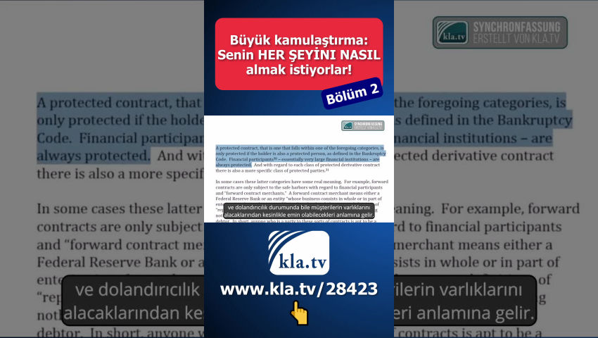 Tüm özel varlıklar, bir sonraki finansal çöküşte birkaç büyük özel bankanın mülkiyetine geçme tehlikesiyle karşı karşıyadır. Ölü yeteneğin bu şekilde kamulaştırılmasına tepki olarak, yasalar ulusal ve uluslararası düzeyde halkın arkasından değiştirildi. Yakın zamanda yayınlanan "The Great Taking" adlı kitabında, finans dünyasının üst düzey isimlerinden David Webb bunun nasıl gerçekleşmiş olabileceğini açıklamakta ve belgelemektedir. [TheGreatTaking.com adresinden çeşitli dillerde ücretsiz olarak temin edilebilir] Dahası, tüm zamanların en yıkıcı finansal çöküşü eli kulağında. Basit bir dille: HERKES HER ŞEYİNİ çok hızlı bir şekilde kaybedebilir. Ancak David Webb de bir fırsat görüyor ve uygulanabilir bir çıkış yolu sunuyor. Aşağıdaki yorumlarına bir göz atın. David'in „The Great Taking“ [Büyük Alım] adlı kitabından alıntılar [Webb:] Adım David Webb. İsveç, Stockholm'de yaşıyorum. Asya finansal krizi sonrasında ve dotcom balonu [dotcom balonu = Mart 2000'de patlayan internet yutturmacasının yarattığı spekülatif balon] ve onun patlaması sırasında kamu hisse senetlerini ve nihayetinde hedge fonları [hedge fon = yüksek risk taşıyan alternatif finansal yatırımlar için yatırım fonu] yönettim. Çocukken Cleveland'ın endüstriyel çöküşünün başlangıcına tanık oldum ve bizi neyin yok ettiğini anlama ihtiyacıyla büyüdüm. Çünkü daha önce çok mutlu olan, mutlu, yardımsever bir aile olan ailem bundan derinden etkilendi ve büyüdüğüm yeri tam anlamıyla yok etti. Ben de ekonomi ve finans okumaya karar verdim. Sanırım bu finans dünyasındaki diğer insanlardan farklıyım çünkü parayı gerçekten önemsemiyorum. Her zaman bir şeyleri anlamaya ilgi duydum ve bu aslında bana bir avantaj sağladı. Diğer insanların anlamadığı şeyleri anladım. 2008 yılında bir broker-dealer'ın [menkul kıymet ve türev ticaretinin merkezi olan borsalarda müşteriler için işlem yapan kişi veya şirket] ilk iflasına tanık oldum. Beni şok eden şey, bu broker-bayinin müşteri hesaplarının brokerin iflas masasından tahsil edilmesiydi ki bu daha önce asla mümkün olmazdı. Menkul kıymetlerin tarihi boyunca, bunlar kişisel mülkiyet olmuştur. Ben de neyin değişmiş olabileceğini araştırmaya başladım. Bunun ABD'deki Uniform Commercial Code [Tek Tip Ticaret Kanunu] yapılan değişikliklerden kaynaklandığını keşfettim. Bu 50 eyaletin tamamında değiştirilmiştir. Bu, uzun bir süre boyunca sessizce yürütülebileceği ve dikkat çekmemek için federal düzeyde yapılması gerekmediği anlamına geliyordu. Bu durum, teminat talebi için yeni bir yasal yapı oluşturmuştur. Daha sonra 2005 yılında Amerika Birleşik Devletleri'ndeki iflas yasalarında bir değişiklik oldu ve güvenli liman adı verilen bir şey yaratıldı. Bu da kulağa hoş geliyor. AncakSafe Harbor [güvenli liman], teminatlı alacaklıların müşterilerin varlıklarını almak için güvenli bir sığınağa sahip oldukları ve dolandırıcılık durumunda bile müşterilerin varlıklarını alacaklarından kesinlikle emin olabilecekleri anlamına gelir. Sadece çok büyük bankalar müşteri fonlarını almaya yetkilidir. Yani kimsenin müdahale etmesini ve bir şey almasını istemiyorlar. Sadece onlar alacak. Sistem, özellikle kriz dönemlerinde, teminatlı alacaklı sisteminin taleplerini yerine getirmek amacıyla mülkiyetin daha üst bir seviyeye aktarılması ve paket halinde tutulması şeklinde değiştirilmiştir. Ve bu gerçekleştiğinde, en sofistike kurumlar ve emeklilik fonları da dahil olmak üzere korunduklarını düşünen insanlar artık hiçbir korumaya sahip olmayacaklar. Teminatlı alacaklılar, tüm kamu şirketlerinin kontrolünü kendilerine vererek, dayanak hisselere ve tahvillere el koyacaklardır. Bunu kendileri için bir şeyler alabilmek üzere inşa etmişlerdir. Kendilerine karşı hiçbir borcu olmayan, ancak her şeye açık ve net bir şekilde sahip olan kişi ve şirketlerden tüm menkul kıymetleri teminat olarak alabilirsiniz. Bu sürecin korkunçluğunu anlatmak için size bir örnek vereyim: Yani bir araba aldınız ve nakit ödediniz. Çok muhafazakâr olduğunuzu düşünüyorsunuz. Araba için borcunuz yok. Ancak sizin haberiniz olmadan, bayi hala aracınızı güvenlik olarak kontrol ediyor. Size böyle bir şey söylenmeyecek. Bayi, sizin arabanızı ve sattığı diğer tüm arabaları kredileri ve işleri için teminat olarak kullanır. Şimdi perakendeci iflas ediyor. Ve sadece belirli teminatlı alacaklılar, arabanızı ve bayi tarafından satılan tüm arabaları herhangi bir yargı incelemesi olmaksızın derhal tahsil etme yetkisine sahiptir. Bunu insanlara anlattığımda arabaları için endişeleniyorlar. Bu senin arabanla ilgili değil. Bu, yaşananlar için bir benzetmedir. Bu sadece arabanızla ilgili olmasından çok daha kötü, çünkü kelimenin tam anlamıyla dünyadaki tüm menkul kıymetler kompleksiyle ilgili. Dolayısıyla, malvarlığınızın kaybına neden olan şey sizin ödeme gücünüzün yetersizliği değildir. Bu, teminatınızı size söylemeden veya ifşa etmeden gizlice kendi mülkleri olarak kullanan kişilerin iflasıdır. Bu sofistike bir hikaye. Yani evet, yasayı değiştirdiler. Tek Tip Ticaret Kanunu'nu değiştirdiler. Bu, 1994 yılından itibaren gerçekleşmiştir. Yani bunu başarmak için on yıllar boyunca uygulanan bir plan vardı. Daha sonra bu modelin dünya çapında yasalarda yer alması için bir uyumlaştırma süreci başlatıldı. Ve bunu AB aracılığıyla yaptılar. AB belgelerinde bu konuya ilişkin ilk tartışma 2002 yılına dayanmaktadır. O dönemde süreç dotcom iflasının ardından başlamıştı. AB de "Yasal Kesinlik Grubu" adını verdiği bir yapı oluşturdu. Bu da kulağa iyi bir şeymiş gibi geliyor. Ancak burada kastedilen, teminatlı alacak