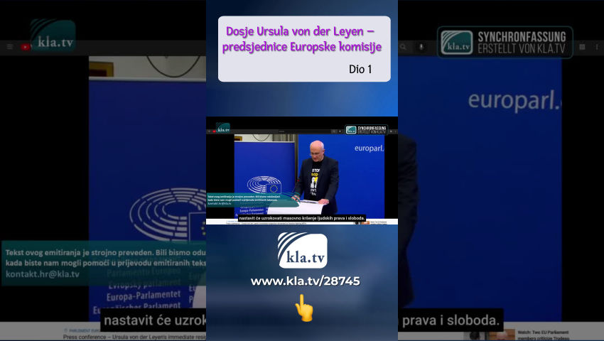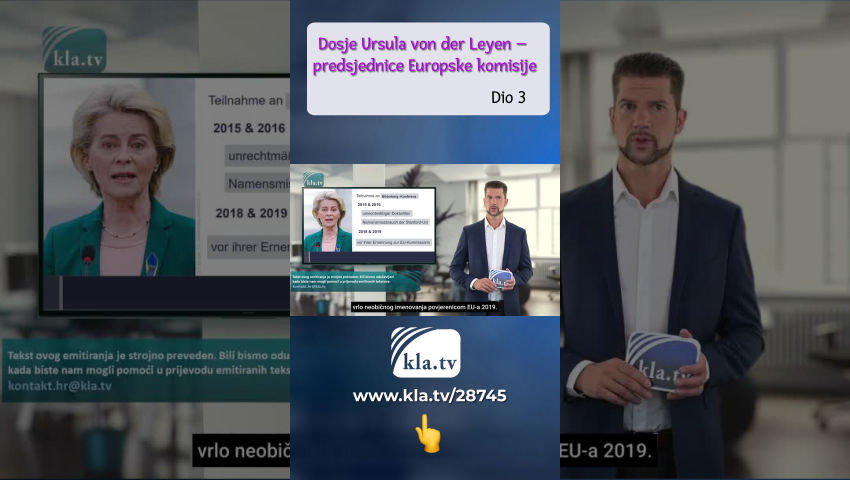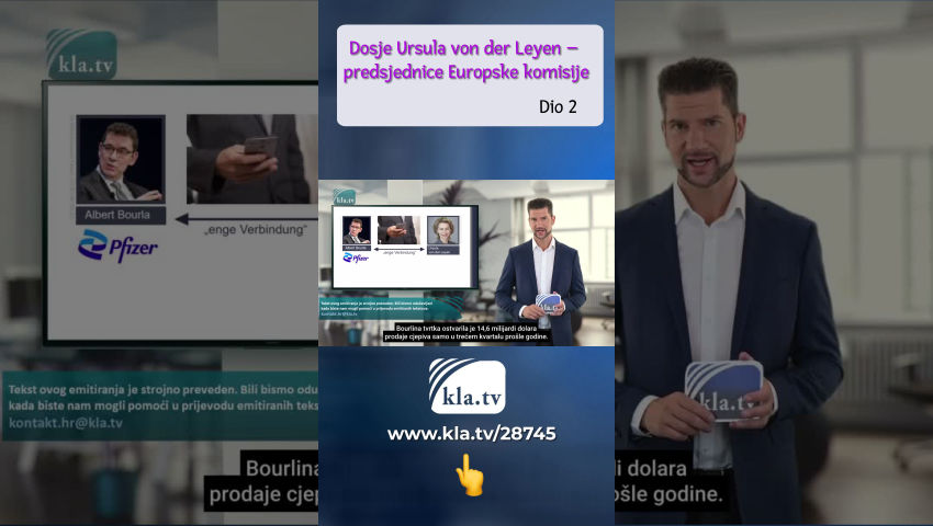 Dosje Ursula von der Leyen Ursula von der Leyen, majka sedmero djece, imala je savršenu karijeru. Najprije ministrica obitelji, potom ministrica obrane, a 2019. promaknuta je u povjerenicu EU-a. Cjelokupna politička karijera bila je jednako iznenađujuća koliko su njeni česti skandali ostali bez učinka. Skupina zastupnika u Europskom parlamentu predvođena rumunjskim zastupnikom Cristianom Terheșom pozvala je na hitnu ostavku predsjednice Europske komisije Ursula von der Leyen na tiskovnoj konferenciji u veljači ove godine. Razlog: “Ursula von der Leyen dio je ogromne znanstvene prijevare i propagandne kampanje vezane uz Covid-19 koja je uzrokovala i nastavit će uzrokovati masovno kršenje ljudskih prava i sloboda. Ovo je prijetnja demokraciji u Europi. Zbog svojih aktivnosti i velikih sukoba interesa trebala bi podnijeti ostavku na mjesto predsjednice Povjerenstva.” Covid prijevara? Kršenje ljudskih prava i slobode? Prijetnja demokraciji? sukobi interesa? Optužbe su ozbiljne. Kla.TV provjerava u kojoj mjeri ih treba shvatiti ozbiljno. 1. Netransparentni sporazumi Ursula von der Leyen žestoka je zagovornica cjepiva i ima dobre veze u industriji cjepiva. Ursula von der Leyen održava vrlo povjerljiv odnos s čelnikom američkog farmaceutskog diva Pfizera – Albert Bourla. Za New York Times je govorio o "bliskoj vezi" s njom kao predsjednicom Komisije, koja je uspostavljena putem telefonskih poziva i SMS poruka. Bourlina tvrtka ostvarila je 14,6 milijardi dolara prodaje cjepiva samo u trećem kvartalu prošle godine. Ova vrsta osobne diplomacije Ursula von der Leyen kulminirala je potpisivanjem najvećeg farmaceutskog ugovora u povijesti EU-a u travnju 2021.: EU zajednica naručila je 1,8 milijardi doza cjepiva od Pfizera. Procijenjeni iznos ugovora: 35 milijardi eura, financiran novcem poreznih obveznika – sve bez konzultacija u parlamentu – putem mobitela. Austrijski novinar Alexander Fanta s portala netzpolitik.org htio bi detaljnije proučiti megaposao. Zahtijeva uvid u pisane poruke. Fanta doslovno: “Ono što Ursula von der Leyen tipka na svom telefonu, iskreno, nije privatna stvar. Trebamo javnu kontrolu tekstualnih poruka EU-a ako se koriste za sklapanje poslova s cjepivima vrijednih milijarde dolara.” Europska komisija to umanjuje: Podaci o pametnim telefonima ne bi potpadali pod pravila EU-a o transparentnosti. Ovo nije prvi skandal s neprozirnim poslovima. Već 2019., dok je bila ministrica obrane, njezino je ministarstvo već potrošilo stotine milijuna eura na vanjske konzultante, navodi Tagesspiegel. I vanjske tvrtke dobivale su milijunske ugovore Bundeswehra izravno, dakle bez natječaja. Očito kršenje zakona. I ovdje su se poslovi sklapali putem mobitela. Istražno povjerenstvo proglasilo je SMS-ove dokazima. Nedugo zatim potpuno su izbrisani. Ursula von der Leyen ne zna ništa. Posljedice u oba dogovora? Nijedan do sada. Nije to ništa novo u njezinoj biografiji. I drugi skandali su se nekim čudom smirili nakon kratke medijske bure. 2. Abnormalnosti u njezinoj biografiji 1987 Ursula von der Leyen položila je državni ispit za liječnicu, nakon čega je četiri godine kasnije doktorirala. No nije prošao test lovca na plagijate Martina Heidingsfeldera iz Vroniplaga. Optužba: 27 stranica njezine disertacije od 62 stranice sadržavalo je namjerno kopiran sadržaj. Heidingsfelder doslovno: "Bila je izuzetno lijena i nemilosrdno je kopirala. Stoga bi joj medicinski fakultet morao oduzeti titulu. Znanost sama sebi čini medvjeđu uslugu kada štiti priznate političare." Rezultat? Godine 2016. 7 od 9 članova Senata Medicinskog fakulteta u Hannoveru glasalo je protiv oduzimanja titule. Druga optužba je da je von der Leyen uljepšala svoj životopis. Prema vlastitim izjavama, od 1993. bila je gostujući student na renomiranom Sveučilištu Stanford, a čak je 1995. provela analizu tržišta za Stanford Health Services Hospital Administration. Važan plus ako želite igrati u prvoj ligi. Sveučilište Stanford nije znalo ništa o tome i protestiralo je protiv zlouporabe imena. Nema djela gospođe von der Leyen. Niti je bila upisana na ovo sveučilište niti joj je sveučilište izdavalo potvrde za seminare. Nešto kasnije, 2015., sveučilište je iznenada povuklo svoju optužbu protiv von der Leyen. Jesu li u pozadini postojali pokrovitelji koji su izabrali von der Leyen za veće stvari? Na to upućuje još jedna činjenica. 3. Bilderberger rekord i skok u karijeri Prije nego što je von der Leyen postala povjerenica EU, službeno je sudjelovala na četiri konferencije Bilderberga – što je apsolutni rekord. Konferencija Bilderberg ekskluzivno je okupljanje svjetskih vođa. Od 1954. održava se iza zatvorenih vrata jednom godišnje kako bi se konferencije održavale bez ikakvog pristupa javnosti - potpuno netransparentno. Sudionici koji su prije bili malo poznati često se mogu naći na visokim položajima nedugo nakon njihova posjeta Bilderbergerima. Ursula von der Leyen prvi je put sudjelovala na sastanku Bilderberga 2015., a zatim ponovno sljedeće godine 2016. To se dogodilo u trenutku kada su optužbe o nezakonitom doktoratu i zlouporabi imena s doktoratom na Sveučilištu Stanford iznenada odbačene i nisu se dalje raspravljale u medijima. Von der Leyen je prisustvovala još dva sastanka 2018. i 2019., neposredno prije njezina vrlo neobičnog imenovanja povjerenicom EU-a 2019. U medijima se nakratko diglo negodovanje zbog pravog skandala: ZEIT je 16. srpnja 2019. napisao: “Svatko tko je glasao na europskim izborima mislio je na vrhunske kandidate [...], a nikako na ženu koja je u to vrijeme bila ministrica obrane u Njemačkoj. Skandal je kako je Ursula von der Leyen od čelnice njemačkog ministarstva obrane u nekoliko dana postala najmoćniji ured u EU.” EU je prevarila svoje građane. Dojam je da nevidljivi krugovi postavljaju Ursula von der Leyen iz pozadine točno tamo gdje je žele. Skandali se stišaju, a optužitelji utihnu... Ostaj