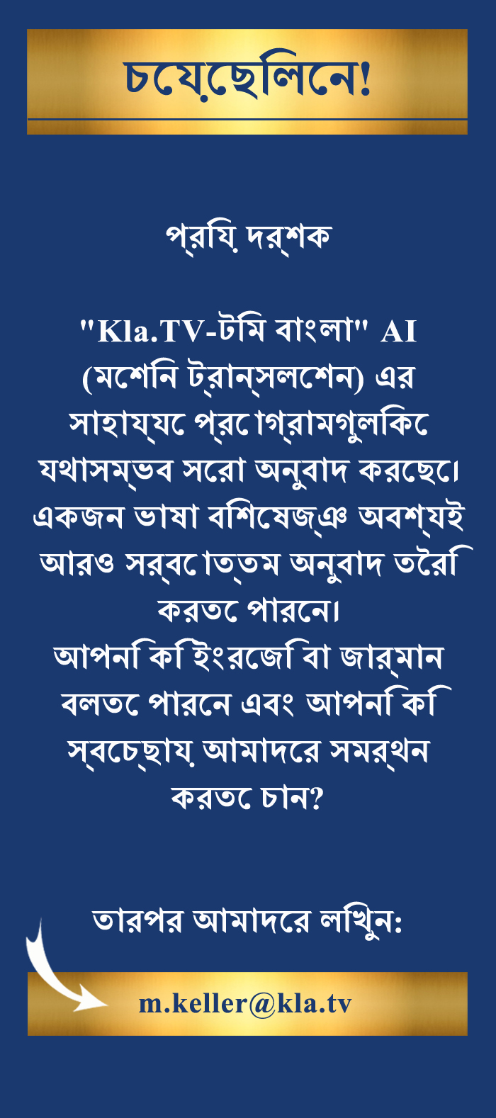 এখন দেখানো লিঙ্কটি ব্যবহার করে যতটা সম্ভব আপনার বন্ধু এবং পরিচিতদের কাছে এই সম্প্রচারটি ফরওয়ার্ড করে আমাদের আলোড়ন সৃষ্টিকারী ওয়েক-আপ কলকে সমর্থন করুন! এছাড়াও আপনি আমাদের সামাজিক চ্যানেলে বিতরণের জন্য এই জাগরণমূলক তথ্যচিত্রটি খুঁজে পেতে পারেন। এইভাবে আপনি সক্রিয়ভাবে গুরুত্বপূর্ণ তথ্যের কোনো দমন বন্ধ করতে সাহায্য করতে পারেন। আপনি এই জন্য WhatsApp ব্যবহার করতে পারেন! Facebook বা TikTok-এর মতো সোশ্যাল প্ল্যাটফর্মে আমাদের ওয়েক-আপ কল পোস্ট করুন। এই 194টি জাতির সমস্ত মানুষ একটি বিশাল মানব পরিবার গঠন করে। স্বাধীনতার জন্য এই জনগণের সাধারণ ইচ্ছা নিপীড়নের যেকোনো প্রচেষ্টার বিরুদ্ধে জয়ী হবে। আপনার অবদানের জন্য আপনাকে অনেক ধন্যবাদ.