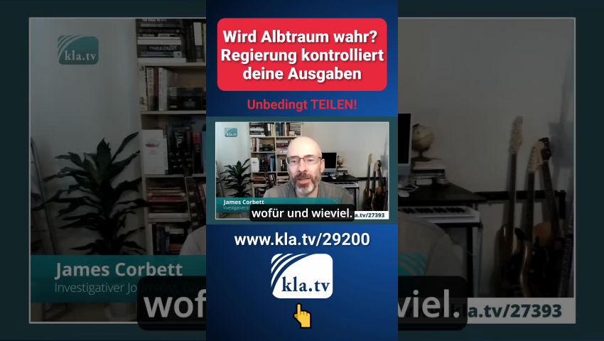 Sehr geehrte Damen und Herren, die Kontrollmöglichkeiten über die Bevölkerung durch die kommenden CBDCs und die damit verbundenen Gefahren sind von größter Bedeutung. Auch der bekannte Journalist James Corbett nahm zu den Missbrauchsmöglichkeiten der kommenden digitalen Zentralbankwährungen in einem Interview mit Kla.TV Stellung:
