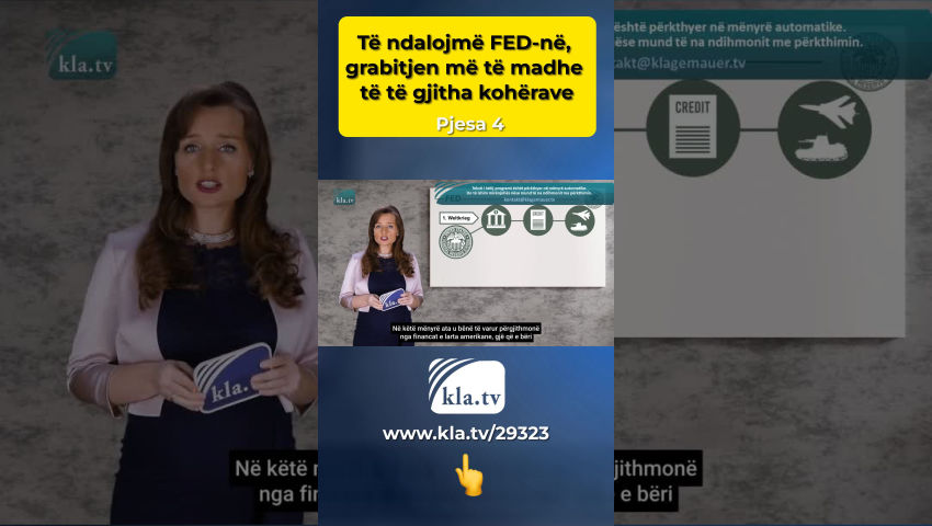 Krizat ekzistenciale po e mbajnë popullsinë botërore në grepa. Përplasja e afërt financiare është gjithashtu në buzët e pothuajse të gjithëve. Shumë prej tyre tashmë janë në shok, sepse bota tashmë është tronditur nga përplasje të shumta financiare, si e Black Friday në 1929 ose përplasja e vitit 2008. Njerëzit humbnin paratë dhe mallrat e tyre çdo herë. Dhe tani ajo që është padyshim përplasja financiare më e madhe dhe më serioze është afër. Mali i madh i borxhit mbi të cilin janë ulur pothuajse të gjitha vendet në botë nuk premton mirë. Por pse ndodhin edhe përplasjet financiare globale? Dhe pse përplasja financiare e ardhshme duhet të jetë më e madhja dhe më e rënda? Cilat janë konkretisht pasojat? Cilat janë shkaqet? Kush preket më shumë? Kush përfiton? A ka lidhje kjo me këtë Great Reset ? Çfarë përbën e gjithë kjo? A mund të ndalet ende kjo? Ne i shqyrtojmë këto pyetje në këtë emision. Një flluskë gjigante borxhi shpërthen - pjesë e Great Reset Themelimi i Sistemit të Federal Reserve FED në SHBA në vitin 1913 si një sistem bankar privat çoi në krijimin e një karteli bankar që funksiononte globalisht. Sipas ligjit, monopoli i krijimit të parave erdhi në duart e disa bankierëve kryesorë të Wall Street. Instalimi i BIZ (1930), si dhe i IWF-së dhe Bankës Botërore (1944), që të dyja ishin organizata speciale të UNO-së, siguruan një zgjerim të mëtejshëm të pushtetit. Ata japin kredi gjigante nga ajri si Fiat Money dhe shtyjnë popuj të tërë në rrënim me kërkesat e tyre për shlyerje. Me ndihmën e Agjendës së UN-së 2030, ky zhvillim përfundimisht do të shtyhet përpara. Kjo axhendë kërkon që shtetet e saj anëtare të shpenzojnë miliarda për t'u marrë me krizat e inskenuara globalisht. Sipas ekspertit ekonomik Ernst Wolff, kjo flluskë borxhi gjigante, e fryrë artificialisht është shumë më e madhe se shuma e të gjitha burimeve globale, infrastrukturës, burimeve minerale, etj. Prandaj, këto borxhe nuk mund të shlyhen kurrë. Shpërthimi i përgatitur prej kohësh dhe i orkestruar qëllimisht i kësaj flluskë borxhi synon të sjellë një riorganizim të plotë global, Great Reset: Kjo parashikon shpronësimin dhe paaftësinë e plotë, madje edhe skllavërimin e qytetarëve nën oligarkët financiarë. The Great Reset Axhenda 2030 Great Reset he është emri i axhendës së WEF dhe organizatave joqeveritare të lidhura, të ashtuquajturat NGO`s, për të marrë përsipër pushtetin botëror. NGO`s-të kontrollohen nga oligarkët financiarë. Këto kontrollohen nga bankat qendrore, të cilat kanë dominuar sistemin monetar për mbi 100 vjet. Nëpërmjet menaxherëve të tyre të aseteve si Black Rock dhe Vanguard, ata grumbullojnë pa mundim pasuri gjigante, si dhe ar, grupe industriale, gaz, naftë, lëndë të para, toka dhe infrastrukturë publike. Ata korruptojnë vendimmarrësit kryesorë politikë, industrialë, ushtarakë dhe gjyqësorë në botë dhe i lidhin me zinxhirë në qeverinë e tyre në hije, si Grupi Bilderberg, Council on Foreign Relations, takimet e WEF në Davos dhe të tjerë. Ky rreth u lejon politikanëve në përputhje të zbatojnë Axhendën 2030 të WEF dhe UNO-së përmes ligjeve që përcaktojnë fatin. Këto nga ana e tyre çojnë në shpronësimin e popujve përmes taksave shkatërruese dhe kërkesave për ndarjen e barrës, si dhe në skllavërimin e plotë të të gjithë popujve përmes parave dixhitale të programueshme, kontrollit mbi ushqimin, energjinë dhe shëndetin, si dhe nëpërmjet teknologjive të mbikëqyrjes. Kush do të prekej nga plasja e flluskës së borxhit – kush do të përfitonte prej saj? Në vitin 2005 pati një ndryshim në ligjin e falimentimit në Shtetet e Bashkuara. Që atëherë, asetet nuk mund të kërkohen më nga klientët, madje as në rast mashtrimi bankar. Të gjitha pasuritë transferohen në pasurinë e falimentimit. Por ky ndryshim në ligj nuk prek të gjithë kreditorët, përkatësisht jo ata pak kreditorë të privilegjuar, pra të mbrojtur. Këto janë bankat themeluese të FED dhe degët e tyre, duke përfshirë J.P. Morgan Bank. Për shembull, kur Lehman Brothers u rrëzua në 2008, vetëm aktivet e J.P.Morgan Bank u kthyen, pavarësisht transaksioneve financiare mashtruese. Gjykatësi i çështjes në atë kohë tha shprehimisht se J.P. Morgan i përket klasës së mbrojtur. Kjo e bën të qartë se legjislacioni është ndryshuar pas shpinës së popullatës në atë mënyrë që klani rreth FED i mbijeton çdo përplasjeje bankare, ndërsa të gjithë të tjerët humbasin të gjitha asetet e tyre. Fiat Money – si erdhi flluska e borxhit Më 23 dhjetor 1913, sistemi privat i bankës qendrore private FED u prezantua në SHBA me Federal Reserve Act. Ajo u bë një model për themelimin e mëtejshëm të bankave qendrore dhe qendrore në mbarë botën. FED është një kartel bankash të mëdha që ka monopolin e krijimit të parave. Nëpërmjet proceseve të thjeshta të kontabilitetit, paratë krijohen nga ajri i hollë në formën e kredive. Ky parim i Fiat Money, pra duke krijuar para nga asgjëja, bankat e lidhura mund të shumëfishojnë paratë e krijuara rishtazi në të njëjtën mënyrë. - Interesi dhe interesi i përbërë gjithashtu do të ngarkohen derisa kredia të jetë shlyer plotësisht. Për shkak të monopolit të krijimit të parave, burimet financiare për këtë duhen siguruar edhe nga FED dhe degët e saj në formën e kredive gjithnjë e më të reja. Ky huadhënie parash duke përdorur interesin dhe interesin e përbërë krijon një flluskë gjigande borxhi. Pasoja: Ndërsa oferta e mallrave në botë është katërfishuar vetëm në 30 vitet e fundit, oferta e parasë është rritur dyzetfish. FED – sistemi financiar tepër i pacipëe Që nga prezantimi i Rezervës Federale në vitin 1913, bankierët privatë kanë qenë në gjendje me ligj të japin kredi 