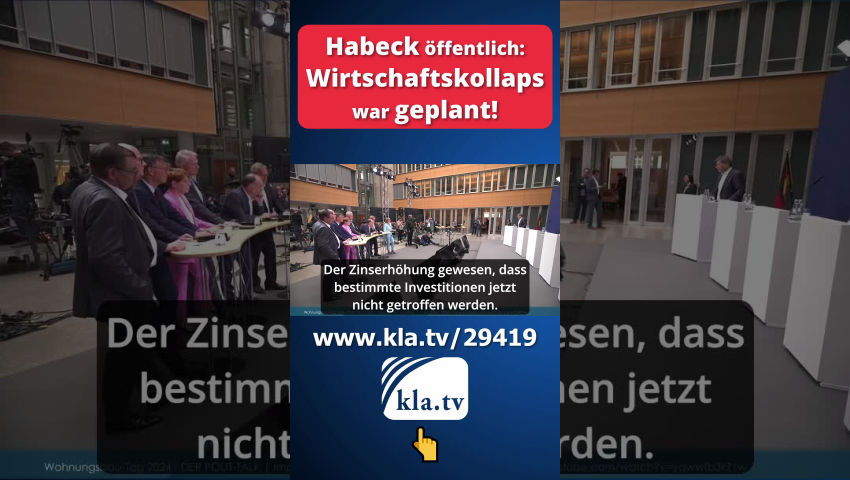 Die deutsche Wirtschaft geht den Bach runter. Ob schon die tiefste Stelle der Talsohle erreicht ist, bleibt abzuwarten. Aber laut den Wirtschaftsnachrichten der Tagesschau bildet Deutschland schon jetzt das Schlusslicht der Industrieländer. Vor dieser Kulisse hat der deutsche Wirtschaftsminister Robert Habeck einen interessanten Auftritt vor Vertretern der Bauwirtschaft am „Wohnungsbau-Tag 2024“ hingelegt. Er sagte am 11. April 2024 wörtlich: „23 war für die Bau- und Wohnungswirtschaft ein annus horribilis. Man kann es nicht anders benennen: ein ganz, ganz schlechtes Jahr. Die politische Hintergrundmusik ist natürlich, und das soll überhaupt nicht zynisch klingen, dass das im Grunde so geplant war. Wenn ich es aussprechen darf: Die hohe Inflation, ausgelöst, und das ist noch einmal, das darf man nicht vergessen, die Ursache ganz vieler der drängenden, akuten wirtschaftlichen Probleme der letzten anderthalb Jahre, ausgelöst durch Putins Angriffskrieg.“ Die Zinserhöhungen der Europäischen Zentralbank in den letzten 2 Jahren wären eine Reaktion auf die hohe Inflation und damit eine Folge dieses Krieges, führt Habeck weiter aus. Habeck lässt daraufhin noch einmal tief blicken: „Und man muss ja sagen, das ist der Sinn, im gewissen Sinne, und es klingt sehr zynisch oder grausam, ich will es gleich auflösen, aber das ist ja nicht aus Versehen passiert, sondern das war der Sinn der Zinserhöhung gewesen, dass bestimmte Investitionen jetzt nicht getroffen werden. So hat die Europäische Zentralbank es aufgesetzt: Das ist der Sinn von höheren Zinsen, dass die Wirtschaft sich abkühlt.“ Habeck spricht öffentlich von einem geplanten Zusammenbruch der deutschen Wirtschaft. Und die private Europäische Zentralbank bewirkt mit ihrer Zinspolitik absichtlich eine „Abkühlung“ der Wirtschaft. Was geht hier eigentlich vor? Wer soll hier was und warum geplant haben? Gehen wir dem auf den Grund! Im September 2022 wurde ein vertrauliches Dokument der US-amerikanischen Denkfabrik RAND-Corporation unter dem Namen „Schwächung Deutschlands, Stärkung der USA“ durch Thomas Röper von Anti-Spiegel bekannt. Dieses Dokument offenbart den Plan der Konsolidierung des schwächelnden US-amerikanischen Wirtschafts- und Finanzmarktes auf Kosten der EU, insbesondere Deutschlands. Kla.TV berichtete darüber in der Sendung „Vertraulich: Plan zur Zerstörung der deutschen Wirtschaft“. Zwei Jahre nach Veröffentlichung stellt sich nun die Frage: Ist der Plan der USA aufgegangen? Um diese Frage zu beantworten, werden im Folgenden Aussagen des RAND-Papiers den Vorkommnissen der letzten zwei Jahre und ihren Auswirkungen auf Deutschland gegenüber gestellt. Dank unserer präzisen Aktionen war es möglich, die Inbetriebnahme der Pipeline Nord Stream 2 trotz des Widerstands der Lobbyisten aus der Stahl- und Chemieindustrie zu verhindern. Die zwei Gas-Pipelines von Nord Stream 2 wurden tatsächlich nie in Betrieb genommen. Am 26. September 2022 wurden beide Pipelines von Nord Stream 1 und eine Pipeline von Nord Stream 2 bei einem Anschlag zerstört. Die Sabotage wurde bisher von den Deutschen Behörden nicht aufgeklärt. Der US-Präsident Joe Biden persönlich hatte den Anschlag zuvor offen angedroht. Der einzig gangbare Weg, Deutschlands Ablehnung russischer Energielieferungen zu garantieren, ist die Einbindung beider Seiten in den militärischen Konflikt in der Ukraine. Unser weiteres Vorgehen in diesem Land wird unweigerlich zu einer militärischen Antwort Russlands führen. (…) Das würde es ermöglichen, Russland zum Aggressor zu erklären und das gesamte Paket der zuvor vorbereiteten Sanktionen gegen das Land anzuwenden. Am 24. Februar 2022 startete der Russland-Ukraine-Krieg, wie im RAND-Papier vorkalkuliert. Deutschland wurde in den Konflikt mit eingebunden durch: 1. gemeinsam mit der EU verhängte Sanktionen, die Deutschland Milliardenverluste bescheren. 2. Lieferungen von Munition und Kriegsgerät in die Ukraine- die als direkte Unterstützung der ukrainischen Kriegshandlungen gegen Russland gewertet werden können. 3. Aufnahme und Versorgung von ca. 1,2 Mio. ukrainischen Flüchtlingen. 4. durch milliardenschwere Zuschüsse an die Ukraine. Die Voraussetzung dafür, dass Deutschland in diese Falle tappen kann, ist die führende Rolle der grünen Parteien und Ideologie in Europa. Die deutschen Grünen sind eine stark dogmatische, wenn nicht gar eifrige Bewegung, was es recht einfach macht, sie dazu zu bringen, wirtschaftliche Argumente zu ignorieren. In dieser Hinsicht übertreffen die deutschen Grünen ihre Pendants im übrigen Europa. Persönliche Eigenschaften und die mangelnde Professionalität ihrer Führer – allen voran Annalena Baerbock und Robert Habeck – lassen vermuten, dass es für sie nahezu unmöglich ist, eigene Fehler rechtzeitig zuzugeben. So wird es ausreichen, das mediale Bild von Putins aggressivem Krieg schnell zu formen, um die Grünen zu glühenden und hartgesottenen Befürwortern von Sanktionen zu machen, zu einer „Partei des Krieges“. Auf diese Weise kann das Sanktionsregime ohne Hindernisse eingeführt werden. Die mangelnde Professionalität der derzeitigen Führer wird auch in Zukunft keinen Rückschlag zulassen, selbst wenn die negativen Auswirkungen der gewählten Politik deutlich genug werden. Die Partner in der deutschen Regierungskoalition werden ihren Verbündeten einfach folgen müssen – zumindest so lange, bis die Last der wirtschaftlichen Probleme größer ist als die Angst, eine Regierungskrise zu provozieren. (…) Die Beteiligung Deutschlands an umfangreichen Waffen- und Rüstungslieferungen an die ukrainische Armee wird unweigerlich ein starkes Misstrauen in Russland hervorrufen, was den Verhandlungsprozess ziemlich langwierig machen wird. Die beiden Grünen-Politiker Annalena Baerbock und Robert Habeck wurden mit Regierungsgeschäften durch die Wahl im Dezember 2021 betraut. Die deutsche Bundesaußenministerin Baerbock treibt seitdem b