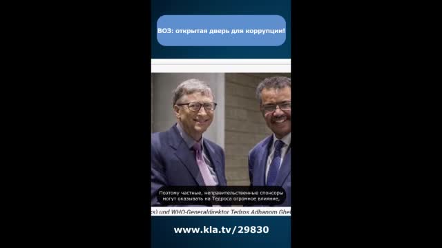ВОЗ на 85 % финансируется преимущественно за счет целевых «пожертвований», значительная часть которых поступает от вакцинальной и фармацевтической промышленности. Поэтому очевидно, что ВОЗ в основном управляется внешними спонсорами. Роковым в этом контексте является то, что ВОЗ не имеет независимого контроля. Поэтому частные, неправительственные спонсоры могут оказывать на Тедроса огромное влияние, чтобы он действовал не в интересах здоровья населения планеты, а в соответствии с их интересами!