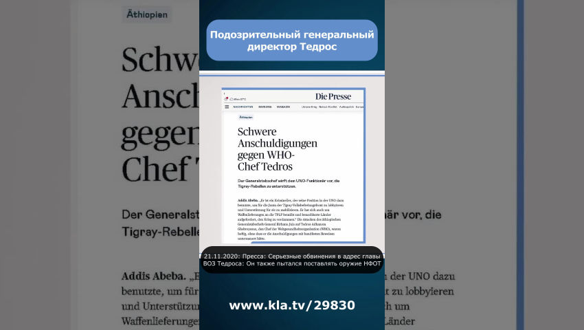 21.11.2020: Пресса: Серьезные обвинения в адрес главы ВОЗ Тедроса: Он также пытался поставлять оружие НФОТ.
