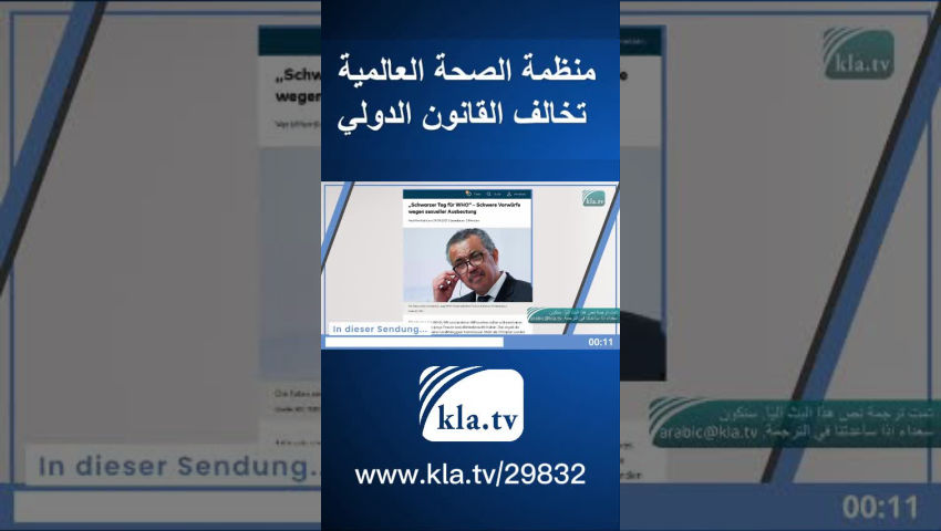 من الواضح أن تصويت الجمعية العامة لمنظمة الصحة العالمية على اللوائح الصحية الدولية لا يؤدي إلى أي شيء صحيح. تبدو عملية التصويت أيضًا غريبة. شخصياً، ليس من الضروري أن تدفع أموالاً أكثر من الآخرين.وبالتالي، يمكن للرعاة من القطاع الخاص أن يكون لهم تأثير هائل على Tetros. وبهذه الطريقة، تضمن منظمة الصحة العالمية احتكار الحقيقة في القضايا الصحية. 29 سبتمبر 2021، Welt.de: يوم أسود لمنظمة الصحة العالمية. ادعاءات خطيرة بالاستغلال الجنسي. لقد دهست منظمة الصحة العالمية الديمقراطية. هذا هو البحث الذي أجراه kla.tv. المذيع المستقل رقم 1 لديك. www.kla.tv. شارك هذا الفيديو على نطاق واسع. المعرفة قوة. في نداء الاستيقاظ الدولي الخاص بنا: إن منظمة الصحة العالمية تخطط لانقلاب خبيث في 194 دولة، والذي وصل إلى أكثر من 2.2 مليون شخص، وقد حذرنا في أبريل 2024 من المخاطر الهائلة التي تشكلها معاهدتان مزمعتان لمنظمة الصحة العالمية. ونظرًا للمقاومة الكبيرة في الدول الأعضاء، لم يكن هناك اتفاق على مسودة نص لمعاهدة بشأن الجائحة في الفترة التي سبقت انعقاد جمعية الصحة العالمية السابعة والسبعين في الفترة من 27 مايو إلى 1 يونيو 2024. ومع ذلك، فإن المعاهدة الثانية، وهي التغييرات بعيدة المدى للغاية في اللوائح الصحية الدولية (IHR)، تم اعتمادها بطريقة مشكوك فيها في اللحظة الأخيرة في "عملية العباءة والخنجر" في الأول من يونيو/حزيران 2024 في جنيف. وهذا الرحيل المزعوم فضيحة! وما يسمى بوسائل الإعلام الرئيسية تتجاهل هذا إلى حد كبير. ولهذا السبب تم كشف هذه الفضيحة بلا رحمة في هذا الفيلم الوثائقي!