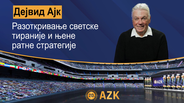 Када 90-их није било ниједног приватног, бесплатног образовног емитера, он је већ био на лопти, наш следећи говорник. Стога би га неко могао описати као ветерана или праоца модерне просветитељске сцене. Некада стидљив, постао је неустрашиви џин истине. А његова способност да прикаже целину у неколико тачака, једноставно одузима дах. Желели бисмо да искористимо ову прилику да му се захвалимо на привилегији да нам, за одговоре на актуелна питања, стави на располагање сопствени телевизијски студио у Енглеској . И кажем ти хвала, Дејвид Ајк! Потребан си нам! Дејвид Фон Ајк, рођен 29. априла 1952. у Лестеру, Енглеска, отац је четворо деце. Био је професионални фудбалер до своје 21. године. Потом је постао спортски репортер за разне станице и водитељ BBC-емисије ”Newsnight” и спортског програма ”Grandstand”. Након дубоког духовног искуства 1990. године, почео је да објављује и изражава ставове и перспективе ван мејнстрима. Написао је преко 20 књига и бестселера, укључујући наслове попут ”Све што би требало да знате, али вам нико никада није рекао”. Последњих неколико деценија, Дејвид Ајк је радио као истраживачки новинар и основао је сопствену веб страницу davidicke.com, сопствену платформу за стриминг iKONIC и сопствену друштвену мрежу. Држи предавања и прави информативне емисије у којима анализира контекст актуелних светских догађаја и сила које стоје иза њих. Још 1998. Дејвид Ајк је упозорио на увођење искључиво електронске светске валуте и светске војске која ће се ширити све даље на исток. Такође је предвидео план да се становништво чипује и контролише. Године 2020. блокирани су његови канали на јутјубу, фејсбуку и твитеру јер је делио информације и ставове који су одступали од званичног наратива корона-политике. Његови видео снимци су тада имали преко 30 милиона прегледа. У новембру 2022, Дејвиду Ајку је на неколико година забрањен улазак у свих 29 шенгенских земаља како би га спречили да говори на мировном скупу у Амстердаму. Данас, након 34 године, Дејвид Ајк наставља да користи своју медијску платформу за откривање завера у медијима, политици и другим областима моћи. Објавио је преко 20 књига и говорио у преко 25 земаља. Његови друштвени канали имају преко 900.000 претплатника. Данас нам Дејвид Ајк даје своју актуелну процену: Повезаност светске тираније и њене лукаве, ратне стратегије! Ух! Захваљујем вам! Сјајно. Да ли нас сви чују? Дивно! Фантастично! Хвала, Дејвид Ајк, што сте нас позвали на 20-ту АЗК у Ваш студио. Дејвид Ајк: Да, нема проблема. Заиста је лепо што сте овде. Водич разговора: То је дивно. Једна од многих серија које радите је серија „Dot-Connector“. О чему се ту ради? Која је Ваша намера? Дејвид Ајк: „Dot Connector“ [= „повезати тачке“ неко ко повезује догађаје] Ако посматрате свет као низ случајних догађаја, случајних дешавања, то нема смисла. Зашто то раде? Зашто то раде на овај начин? Зашто то не ураде овако? Било би много боље да су то тако урадили. И тако даље и тако даље. Зашто се ово дешава? Али када повежете тачке, ове догађаје, схватите да су заправо сви повезани. И, знате, људи понекад кажу за мене: „У свему видиш заверу. Не, то није тако. Видим једну заверу да се свет претвори у глобалну дистопију. А ова једна завера има бескрајне аспекте и облике. Али то јесте стварно једна завера. То је огромна мрежа. И ово се буквално односи на оно што ја називам глобалном сектом. То је глобал