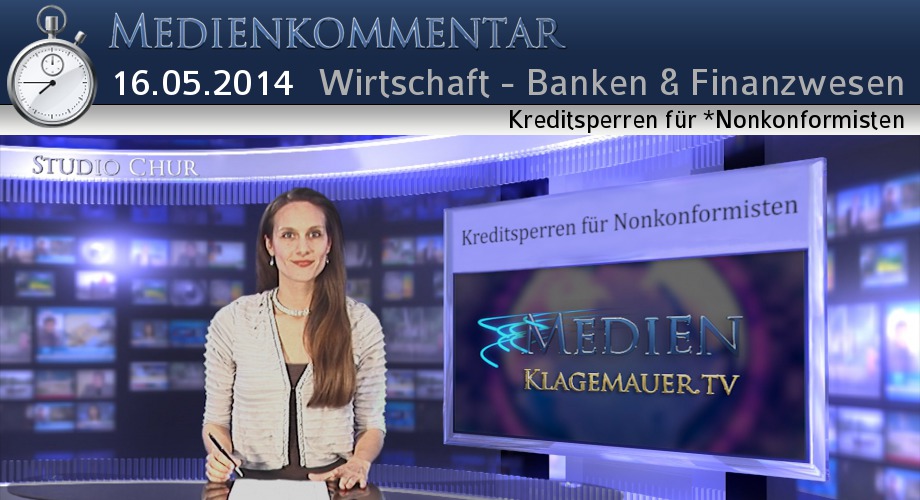Haben Sie gewusst, verehrte Zuschauer, dass europäischen Banken allerorts massive Kreditsperren für Nonkonformisten verhängen? Bevor wir Ihnen einen interessanten Test vorlegen, klären wir aber noch kurz, was unter einem Nonkonformisten überhaupt zu verstehen ist: Ein Nonkonformist ist jemand, der sich in seiner politischen, weltanschaulichen, religiösen u. sozialen Einstellung nicht nach der herrschenden Meinung richtet. In unserem vorliegenden Fall richtet sich also jemand nicht nach den herrschenden Meinungen der Banken und wird dafür mit Kreditverweigerung bestraft. Wer nun denkt, es ginge im Weiteren nur um in Misskredit geratene Staatsoberhäupter der irrt. Wir sprechen hier gerade von Menschen wie Ihnen und uns. Falls Sie das nicht glauben können, machen Sie am besten einmal die Probe aufs Exempel. Rufen Sie irgendeine Bank an und fragen Sie, ob Sie unter folgenden Bedingungen einen Kredit bekommen: Sie würden 80 % des Eigenkapitals mitbringen und für die benötigte Kreditsumme von nur 20 % könnten sie jederzeit das Zehnfache an finanziellen Sicherheiten mittels Steuerbelegen und Urkunden nachweisen. Betonen Sie ihren einwandfreien Leumund und dass Ihre Einnahmen schon über viele Jahre absolut stabil sind. Wenn der Banker dann betont, dass in diesem Fall eine Kreditvergabe überhaupt kein Problem sein sollte, versichern sie ihm noch am Rande, dass Ihr Wohltätigkeitswerk seit vielen Jahren auch von wirklich sehr treuen Spendern getragen wird. Wenn der Banker dann nicht sogleich in sie hineinbohrt, ihren politischen ideologischen oder religiösen Hintergrund ausspioniert und den Kredit innert kürzester Zeit verweigert, dann melden Sie dies der Klagemauer Redaktion! Wir könnten dann darüber berichten, dass es auch noch Ausnahmen gibt. Die Herren des Geldes dulden nämlich keine*Nonkonformisten mehr. Und dies haben sie weltweit in ihren Statuten bereits fest verankert. Für unsere Zukunft kündet sich hier nichts Gutes an. Sind wir erst einmal vollständig von elektronischem Geld abhängig, muss jeder x-beliebige Mensch mit solchen Kreditstrafen und noch vielem anderen rechnen. Diese werden ihn zunehmend treffen, sobald seine politische, ideologische, religiöse oder soziale Einstellung nicht mit den Dogmen der Geldherren übereinstimmt. Wer solches nicht will, leiste jetzt und heute schon gebührenden Widerstand. Dies tun sie, indem sie diese Nachrichten verbreiten, Kla-TV weiter empfehlen, Protestbriefe schreiben usw. Viel Kraft und Entschlossenheit dabei.