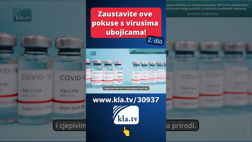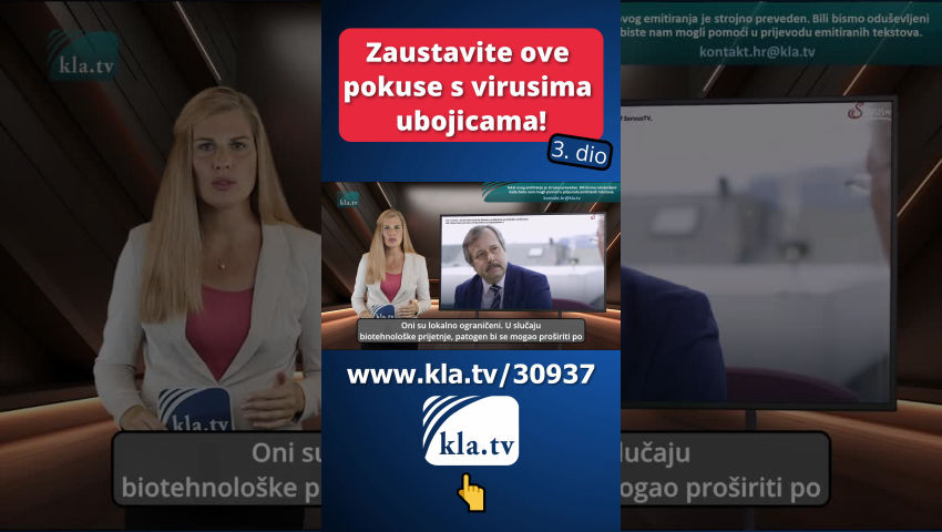 [Trailer:] Peter McCullough i dvojica kolega analizirali su trenutnu epidemiju ptičje gripe. Rezultat je objavljen kao studija prije pinta. […] Iz trenutnih podataka o širenju virusa u istočnim američkim državama zaključuju da bi trenutna epidemija mogla biti povezana s biolaboratorijem u Ateni, Georgia. Prema profesoru doktoru Wiesendangeru, postoji dovoljno dokaza da su slinavka i šap u Engleskoj 2007., svinjska gripa 2009. i ebola u zapadnoj Africi 2014. bile laboratorijske epidemije. Nakon godina poricanja, službeno je potvrđeno: SARS-CoV-2 je biološko oružje. Američka vlada financirala je istraživanje Gain-of-Functionna Institutu za virusologiju Wuhan. Tijekom saslušanja u Kongresu SAD-a, zamjenik ravnatelja NIH-a [=National Health Institut] , dr. Lawrence Tabak, to je priznao. Ovu činjenicu uglavnom su prikrivali bivši šef NIH-a Anthony Fauci, kao i drugi vodeći znanstvenici poput Petera Daszaka, Ralpha Barica i Christiana Drostena. Dokazi su uništeni, a definicija povećanja funkcije na web stranici NIH-a je promijenjena. Peter Daszak čak je uvjerio 26 drugih znanstvenika da teoriju laboratorija nazovu "lažnim informacijama" ili "dezinformacijama". Ovi znanstvenici objasnili su u vodećem svjetskom znanstvenom časopisu "The Lancet" 19. veljače 2020. da virus može biti samo prirodnog podrijetla i da bi sve drugo izazvalo "strah, glasine i predrasude". U međuvremenu, e-mail prepiska između Faucija, Drostena i drugih znanstvenika također je "oslobođena kroz tužbu". Oni pokazuju da je Christian Drosten dao lažnu izjavu u izjavi pod zakletvom o mogućem laboratorijskom podrijetlu SARS-CoV-2. Ali gdje je medijski bijes? Kla.TV je već dokazala ovo laboratorijsko podrijetlo sredinom 2020. godine. [CoV-2 iz laboratorija? Što otkriva znanstvena literatura www.kla.tv/16961] Gdje su apsolutno potrebne pravne posljedice, kažnjavanje zataškavanja i zabrana takvih opasnih eksperimenata? Što je Gain-of-function i zašto se koristi? Općenito, Gain-of-Function-istraživanje funkcije naziva se umjetno mijenjanje sekvenci gena virusa koji se prirodno javljaju. Virusi bi trebali biti modificirani tako da se mogu prenijeti na ljude ili da imaju veći patogeni potencijal. Uzgajaju se virusi koji su opasniji za ljude - pod izlikom da se žele pripremiti lijekovima i cjepivima ako se ti virusi pojave u prirodi. U takozvanoj "Hamburškoj deklaraciji", pozivu "na globalni kraj visokorizičnog istraživanja Gain-of-function na patogenima s globalnim pandemijskim potencijalom", profesor doktor Wiesendanger i brojni znanstvenici naglašavaju opasnost potencijal ovog istraživanja Gain of function: Nijedan biotehnološki laboratorij na svijetu nije dovoljno siguran da jamči da nijedan patogen neće pobjeći. Predstavlja katastrofalne rizike za svjetsku populaciju. Prof.dr. Wiesendanger je nanoznanstvenik i profesor fizike na Sveučilištu u Hamburgu, poznat u cijelom svijetu s mrežom od više od 600 znanstvenih publikacija u različitim znanstvenim područjima. Tko financira istraživanje Gain-of-Functionna? Unatoč zabrani biološkog oružja 1972. godine, još uvijek se provode istraživanja raznih vrlo opasnih patogena. Velik dio ovog rada obavljen je u sklopu istraživačkih projekata koje je financirala vlada. Ali vojska i privatni donatori kao što je Zaklada Gates također financiraju istraživanja kako bi se u laboratorijima stvorili visoko zarazni i prenosivi patogeni. Je li u prošlosti bilo izbijanja bolesti iz laboratorija? Prema profesoru dr. Wiesendanger, postoje brojni dokumentirani dokazi da su slinavka i šap u Engleskoj 2007., svinjska gripa 2009. i ebola u zapadnoj Africi 2014. bile laboratorijske epidemije. “Daily Mail” od 17. ožujka 2024. također je izvijestio službene podatke da se samo u SAD-u svake godine registrira niz laboratorijskih curenja. Što je s ptičjom gripom koja trenutno kruži medijima? Dr. Peter McCullough i dvojica kolega analizirali su trenutnu epidemiju ptičje gripe koja trenutačno pogađa razne životinjske vrste u SAD-u, a također uzrokuje izolirane infekcije kod ljudi. Rezultat je objavljen kao studija prije pinta. […] Iz trenutnih podataka o širenju virusa u istočnim američkim državama zaključuju da bi trenutna epidemija mogla biti povezana s biolaboratorijem u Ateni, Georgia. Također Dr. Robert Redfield, bivši direktor CDC [=Centers for Disease Control and Prevention], upozorava da znanstvenici rade na tome da virus ptičje gripe učine zaraznijim. Prirodna ptičja gripa je bezopasna za ljude. U intervjuu američkoj televizijskoj kući NewsNation, objasnio je da postoji “prilično visoka barijera vrste” za virus. Mora snažno mutirati kako bi postao zarazan za ljude. Međutim, ova se prepreka može lako ukloniti ljudskom intervencijom. Dodao je: "U laboratoriju bih virus mogao učiniti visoko zaraznim za ljude u roku od nekoliko mjeseci." Pozvao je da se takav rad zaustavi. Tko stoji iza istraživanja ptičje gripe? Kada tražite ljude koji stoje iza toga, naiđete na poznata imena. Kao što je "The Defender“ izvijestio 20. svibnja 2024.: CDC [=Centers for Disease Control and Prevention], BARDA [=Biomedical Advanced Research and Development Authority], USDA [=Ministarstvo poljoprivrede SAD-a] i Zaklada Gates financiraju istraživanje ptica gripa. Cilj je učiniti te viruse patogenijima i/ili prijenosnijima na sisavce. U tvitu na X, Dr. Peter McCullough istaknuo je profesora Yoshihiro Kawaoku i profesora Rona Fouchiera. Ova dva znanstvenika i njihovi timovi već nekoliko godina rade na modifikaciji virusa H5N1 koja bi trebala omogućiti prijenos s čovjeka na čovjeka. Kawaoka ima veze sa WHO-om i suosnivač je tvrtke za cjepiva FluGen. Kakav utjecaj može imati istraživanje Gain-of-Function? U nedavnom intervjuu od 21. lipnja 2024. je upozorio prof. Wiesendanger, da biotehnološka prijetnja dobivanjem Gain-of-Function puno veću prijetnju od prijetnje nuklearnim i pomorskim oružjem. Oni su lokalno og