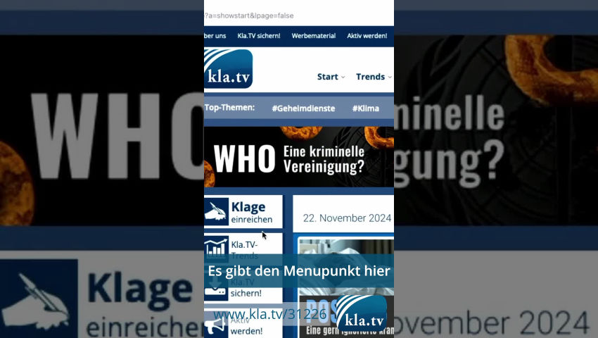 Sichere auch Du das Kla.TV-Archiv und gewinne zwei Weitere, die das ebenfalls tun. So erreichen wir in wenigen Schritten die ganze Welt und sichern diese Gerichtsakten für die größte Aufarbeitung aller Zeiten. Dieser Workshop gibt dir die nötige Anleitung!