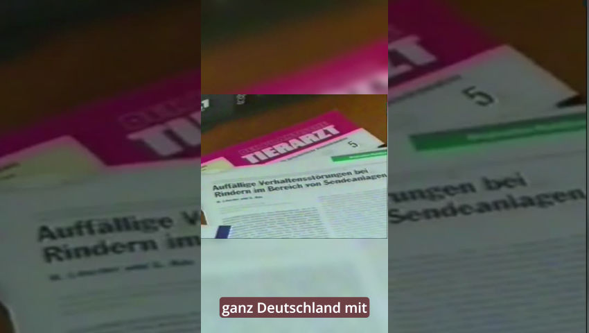 Mittlerweile ist die ganze Siedlung alarmiert. Keiner will den Telefonmast. „Ich habe also sehr starke Schlafstörungen – teilweise. Ich werde nachts wach. Bin hellwach, kann nicht mehr weiterschlafen.“ „Außerdem seit der Turm steht, haben wir vermehrt Kopfschmerzen, können schlecht schlafen. Wir machen uns natürlich auch sehr viele Gedanken wegen dem Kleinen.“ Die Versteigerung der UMTS-Lizenzen spielte fast 100 Milliarden Mark in die Bundeskasse. Von so etwas kann ein Finanzminister nur träumen. Was aber ist die Kehrseite der Medaille. Damit UMTS in Deutschland richtig funktioniert, muss das Mobilfunknetz viel enger geknüpft werden als heute. Experten rechnen mit 60.000 neuen Sendemasten, viele davon in Wohngebieten. Champagner auf ein Milliardengeschäft! Ende vergangener Woche in Mainz. Fast drei Wochen steigerten die Mobilfunkanbieter um die wertvollen UMTS-Lizenzen. Am Ende – Gesamtgebot für die Frequenzen: 98,8 Milliarden Mark. „Nach den ganzen Informationen, die wir jetzt in dieser kurzen Zeit zusammengetragen haben, kann ich einfach nicht anders denken, als dass es gefährlich ist. Es ist gefährlich. Ich habe ein kleines Kind von fünf Jahren. Ich möchte mein Kind nicht diesen Strahlen aussetzen.“ Direkt neben seinem Hof ein Sendemast. Anfang der 90er Jahre wurde dieser mit Mobilfunk bestückt. Dazu kam ein weiterer Mobilfunkmast. Seitdem klagen Bauer Altenweger und die Nachbarn über Kopfschmerzen und Schlafstörungen. „Ungefähr 1993 habe ich das erste Mal im Stall gemerkt, dass die Tiere sich so nicht mehr normal verhalten wie früher. Dann habe ich gesagt, da muss irgendwas los sein. Weil, die Milchleistung ist gefallen und die Kalbungen waren nicht mehr normal. Es waren Fehlgeburten, dabei viele Missbildungen.“ Der amtliche Tierarzt untersucht Stall, Tiere und Futter. Er findet nichts, was die Fehlgeburten, Missbildungen und Verhaltensstörungen erklären könnte. Er vermutet einen Zusammenhang mit der Mobilfunkstrahlung. Der Amtstierarzt macht Videoaufnahmen von den Verhaltensstörungen. Professor Wolfgang Löscher von der Tierärztlichen Hochschule in Hannover analysiert und veröffentlicht die Auffälligkeiten von Schnaitsee. Daraufhin melden sich Landwirte aus ganz Deutschland mit ähnlichen Fällen. „So, dass sich eigentlich diese ersten Beobachtungen bestätigten, durch Beobachtungen in anderen Betrieben. Und auch hier fiel wieder der zeitliche Zusammenhang zwischen dem Errichten von Mobilfunksendern und dem erstmaligen Auftreten dieser Störungen – in ansonsten gesunden Betrieben – auf.“ Die Grenzwerte, an denen sich das Bundesamt orientiert, taugen nichts. Das sagen immer mehr Fachleute, wie auch Messtechnikexperte Professor Günter Käs. „Unsere gegenwärtigen Grenzwerte sind deswegen völlig unzureichend, weil sie sich nur an Wärmewirkungen orientieren. Das heißt, es wird versucht, eine Überhitzung des Gewebes zu vermeiden. Alle anderen biologischen Effekte, die mit Wärmewirkungen nichts zu tun haben und bei sehr, sehr geringeren, viel geringeren Intensitäten stattfinden, werden dabei außer Acht gelassen.“ Bestätigung vor drei Wochen in Salzburg auf einem internationalen Mobilfunkkongress: Über 40 Studien geben Hinweise „Mobilfunkstrahlung kann auch weit unterhalb der bestehenden Grenzwerte wirken. In Versuchen kam es zu Hirnschäden bei Tieren, DNA-, also Erbgutveränderungen in der menschlichen Zelle, Tumorwachstum und Krebs bei Mäusen.“ Eine gerade fertiggestellte Studie birgt Brisantes. Zwei Jahre lang untersuchten Tiermediziner Bauernhöfe in Bayern und Hessen. Höfe mit und ohne Mobilfunkbelastung – mit erschreckendem Ergebnis. Auf den Höfen mit Mobilfunkbelastung: Eindeutig mehr Missbildungen und die Tiere verhalten sich anders. Sie zeigen Störungen im Weide-, Fress- und Liegeverhalten. „Report Mainz“ liegen Teilergebnisse der Studie vor, eingereicht für eine Tiermediziner-Tagung in Freiburg. Das Fazit der Wissenschaftler: Die Ergebnisse weisen auf „Zusammenhänge zwischen Strahlen-Exposition und Verhalten“ hin.