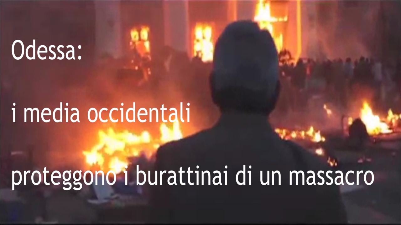 I mass media occidentali si sono aborriti quando la Russia, senza fare morti o feriti, ha riaccolto la penisola ucraina della Crimea, dopo la loro votazione popolare legale. Tutt’al contrario è successo alcuni giorni fa, quando a Odessa, secondo le informazioni ucraine, sono morte 46 persone, mentre delle fonti serie partono da 116 vittime. Nei canali televisivi occidentali si parlava di questo massacro tragico come di una sfortunata e tragica sequenza di presunte coincidenze. I morti sarebbero stati causati da delle collisioni spontanee tra separatisti pro Russia e hooligan pronti alla violenza. Nonostante numerose prove di video ed immagini credibili apparse in internet, i mass media affermano tutt’ora, che non sia chiaro chi è responsabile per il tragico incendio della casa sindacale, che ha causato dozzine di morti tra i manifestanti filorussi. Con ciò si proteggono gli autori di quest’atrocità storica verso i civili e si impediscono le richieste per un chiarimento indipendente del caso. Siccome i media tacciono, vi portiamo una composizione di immagini testimoniali che dimostrano che nel massacro di Odessa si tratta per 1° d’una strage orchestrata accuratamente, 2° eseguita dai terroristi del Maidan sostenuti dall’ovest. Quindi, non un casuale tumulto escalato tra hooligan e separatisti. Mentre a Kiev stavano arrivando con il treno migliaia di hooligan pronti alla violenza, causando un corteo di devastazione dopo la partita di calcio, nel retroscena erano in corso i precipitosi preparativi per strumentalizzare questo corteo di hooligan e indirizzarlo in direzione della casa sindacale, ove in seguito avrebbe dovuto innescare l’incendio. Ricordiamo che già da settimane i manifestanti pro Russia si erano accampati pacificamente in un attendamento davanti alla casa sindacale di Odessa, richiedendo l’autonomia dal nuovo governo attentatore a Kiev. Quando sono venuti a conoscenza della sfilata dei terroristi del Maidan e degli hooligan pronti alla violenza, hanno provato a mettersi al sicuro nella casa sindacale, il che in seguito gli è diventato fatale. Ora in ordine cronologico: Qua vedete alcuni combattenti militanti del Maidan, prima dei terribili eccessi e come si arrangiano con la polizia locale. E proprio da parte all’agente, un membro del violento gruppo estremista del 14° centurione, che aveva già promosso la rivolta del Maidan con azioni terroristiche. Il tipo col berretto e l’auricolare sembra di essere uno dei coordinatori. Viene direttamente da una base di polizia e impartisce ordini: “Raggruppatevi! Ora sei tu il conduttore principale!” Contemporaneamente vediamo qua un sobillatore travestito da civile. Tra poco inizierà a far giurare i combattenti del Maidan per la vicina battaglia. In seguito si mischiano tra gli hooligan e li spingono in direzione della casa sindacale. “Sì uccidere, porca puttana, devono essere uccisi. Se non lo uccidiamo, porca puttana, allora domani avremo qua un altro Donezk.” Qua, proprio prima dell’orribile massacro un altro caporione militante che coordina in presenza della polizia la prossima azione. Ecco la prova della relazione col governo dell’attentato ucraino: qua un paio di settimane prima Andriy Parubiy, il capo ucraino del comitato di sicurezza e difesa nazionale, presenta i nuovi giubbotti antiproiettili. In seguito sparerà ai civili indifesi che provano a salvarsi dalle fiamme. Torniamo ancora una volta agli eventi precedenti il dramma. Una testimone oculare racconta: “Un gruppo molto grande doveva venire in quel giorno, per radere al suolo tutto qua. Di ciò siamo stati informati. Però pensavamo che se qua sulla piazza vi fossero persone normali, nonne, nonni, donne anziane, come me, allora non ci avrebbero fatto nulla. Però questo era un errore, la folla aizzata ha attaccato l’attendamento e l’ha incendiato. Anche una passante con 2 bambini voleva mettersi al sicuro ed è stata arsa. “Chi poteva era venuto sulla piazza. C’era un concerto... e io stessa ho visto passare una donna con 2 figli, uno di loro aveva forse 10-12 anni e l’altro era ancora più piccolo... poi si sono fermati. Anche questa donna è entrata nella casa sindacale coi suoi bimbi, volevano mettersi in salvo... tutte e tre sono arsi... era solo venuta per passeggiare. Dei combattenti violenti del Maidan e, secondo un’informazione del deputato Wadim Sawenko, tra loro anche dei combattenti vestiti in civile del battaglione speciale “Schtorm” e “Dnepr-1”, hanno invaso la casa dall’ingresso posteriore e hanno iniziato la caccia ai civili indifesi all’interno dell’edificio. “Ragazzi, per favore, non lo fate!” Contemporaneamente gli hooligan aizzati hanno iniziato a bersagliare l’edificio con delle bombe molotov, incendiandolo. Nel frattempo all’interno dell’edificio sono state eseguite delle esecuzioni terribili. “Qua tutti correvano in giro e qualcuno ha gridato: “I 2 piani più bassi sono già stati occupati da radicali e stanno ammazzando i nostri attivisti.” Quest’uomo è stato miratamente ucciso a colpi d’arma da fuoco, si vede la sua faccia coperta di sangue e il lago di sangue da parte. Questo attivista filorusso dovrebbe esser arso con gli occhiali in testa? Non cadono via se si prova a salvarsi dalle fiamme? Tra l’altro solo la testa è carbonizzata e i suoi vestiti sono ancora intatti, questo indica che è prima stato ucciso e poi è stata versata della benzina sulla testa per darle fuoco. Anche questa cosiddetta vittima dell’incendio ha lasciato un lago di sangue e ha la testa carbonizzata, ma il resto del corpo è illeso. È questo l’aspetto di una vittima di un casuale incendio da hooligan? Ecco diverse vittime con la testa carbonizzata e corpo intatto. In questo spezzone si vedono chiaramente le fiamme di un piccolo focolare dietro a finestre intatte, non rotte da bottiglie molotov lanciate dagli hooligan. Qui è stato acceso un cadavere? L’immagine di un cadave